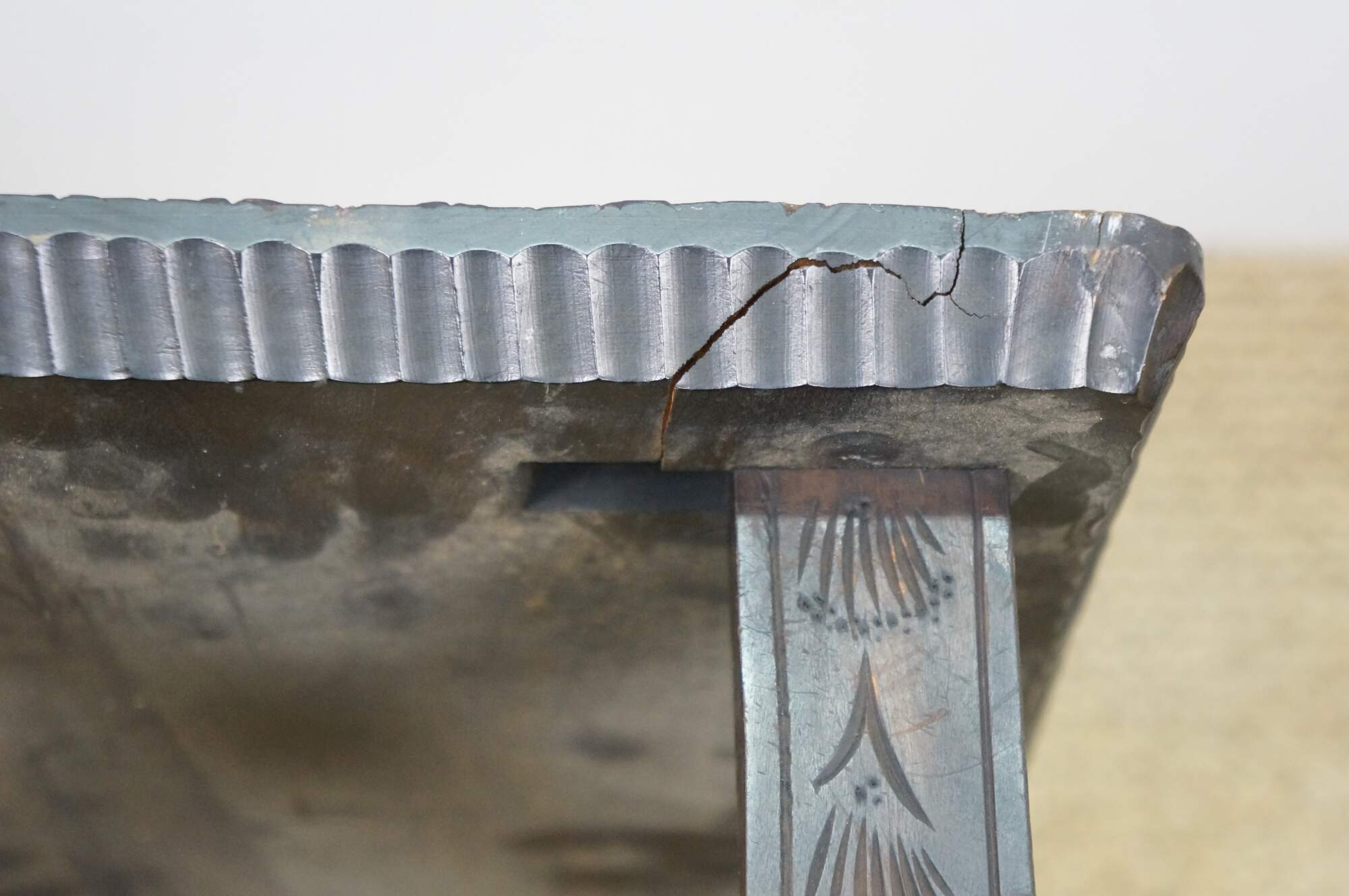Heavy wear and distressing, wobbles, crack in corner, edge wear, finish loss scuffing, may have originally been part of a nesting set.