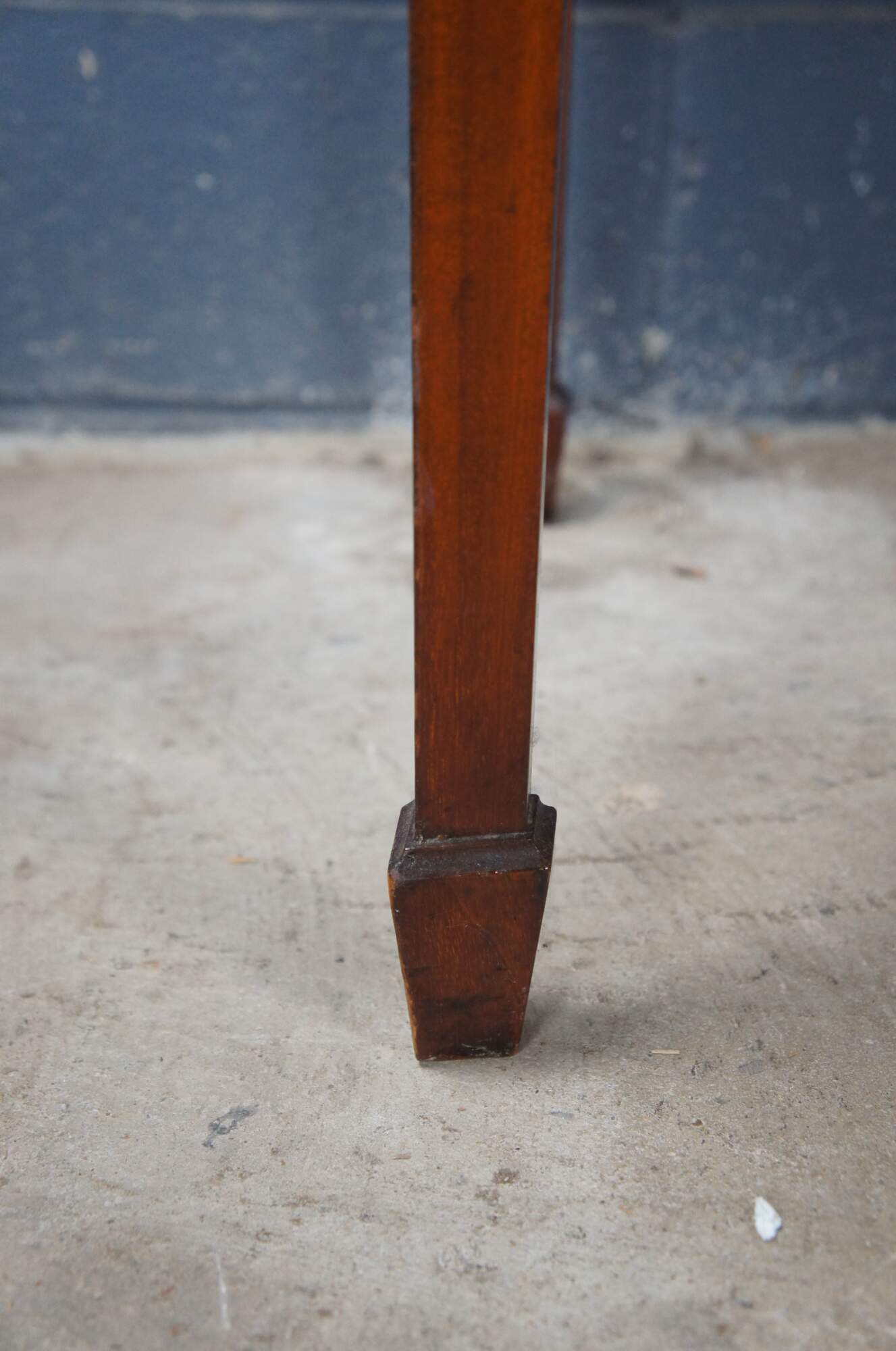 A beautiful antique George III sideboard. Features a mahogany frame with serpentine front over three flame mahogany drawers and square tapered legs leading to spade feet. Due to its versatile size, this piece would also work as a writing desk.