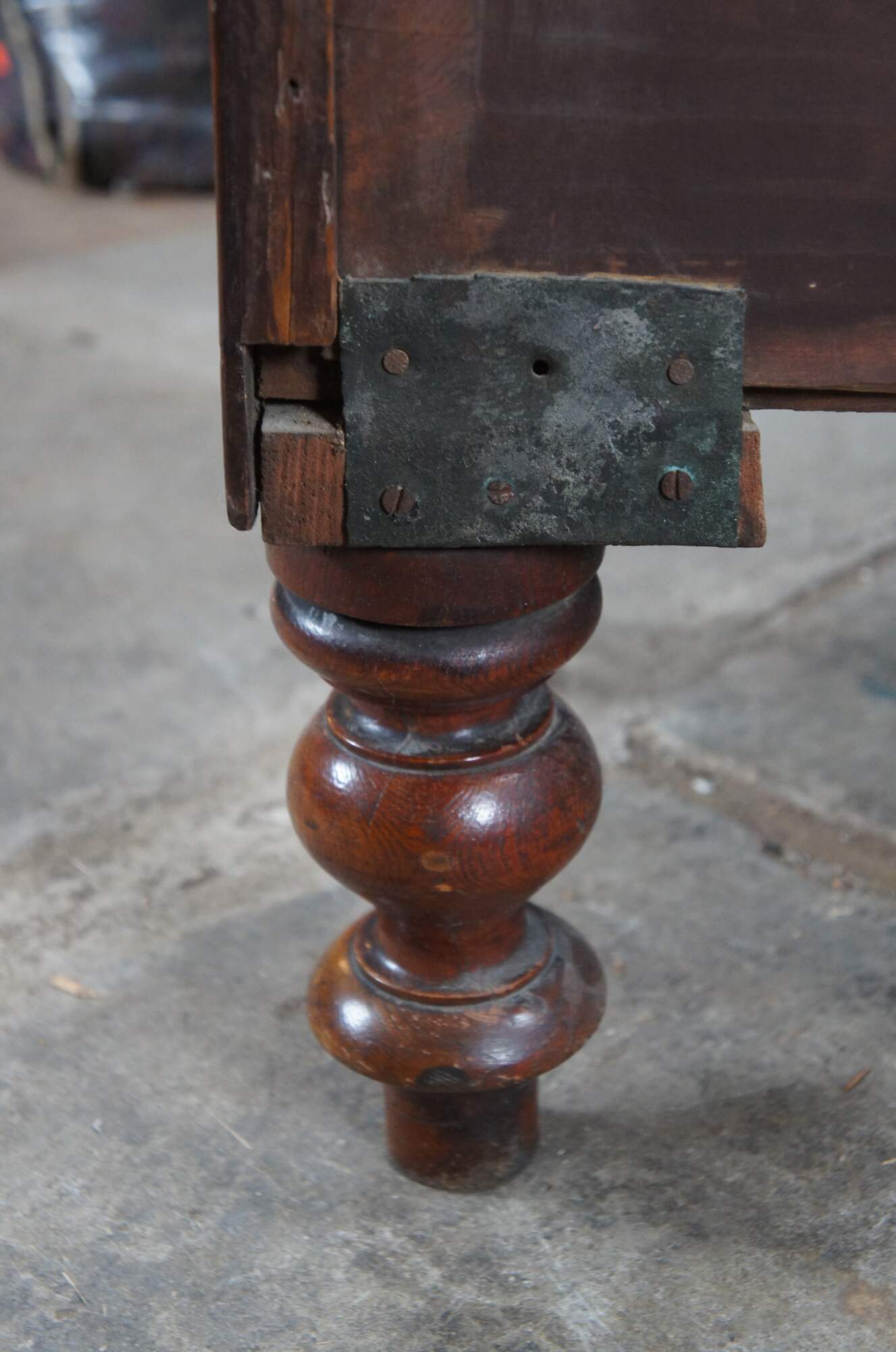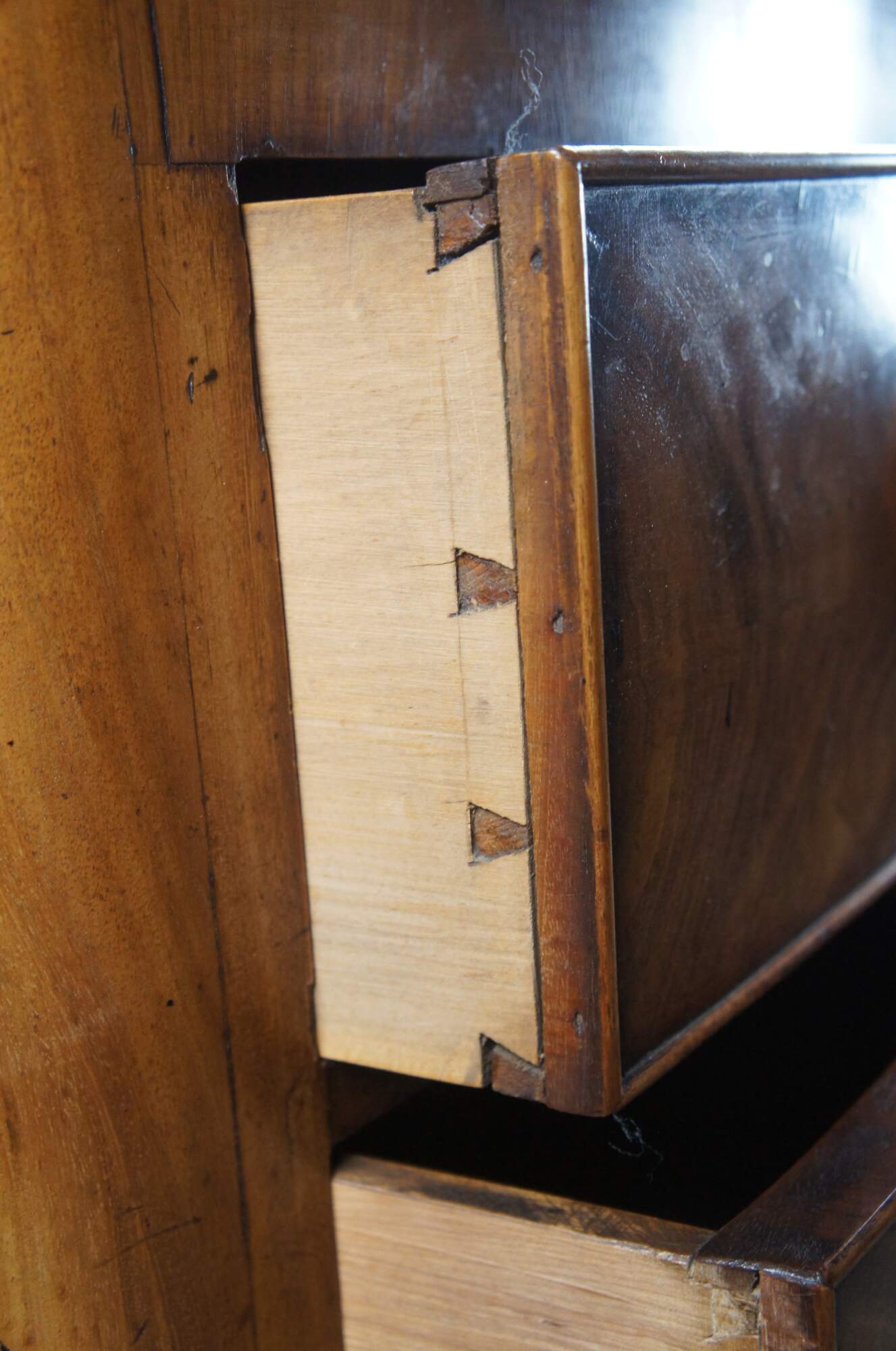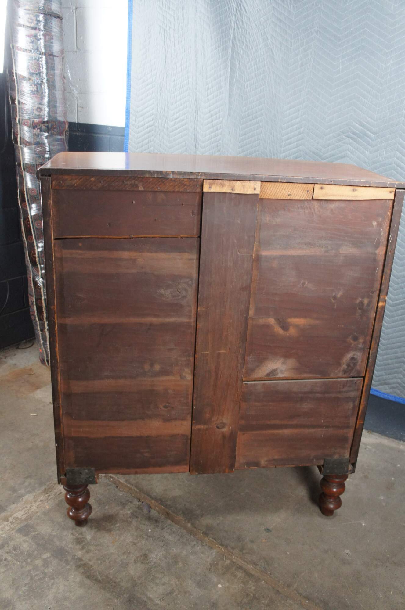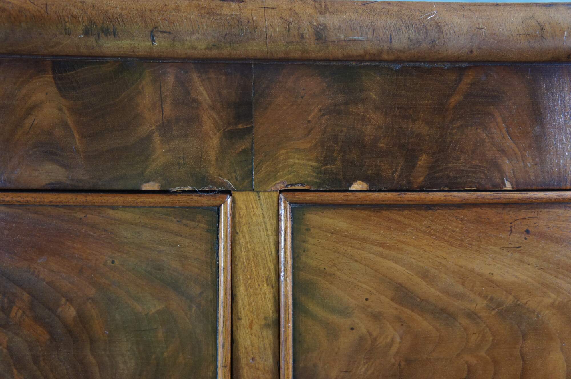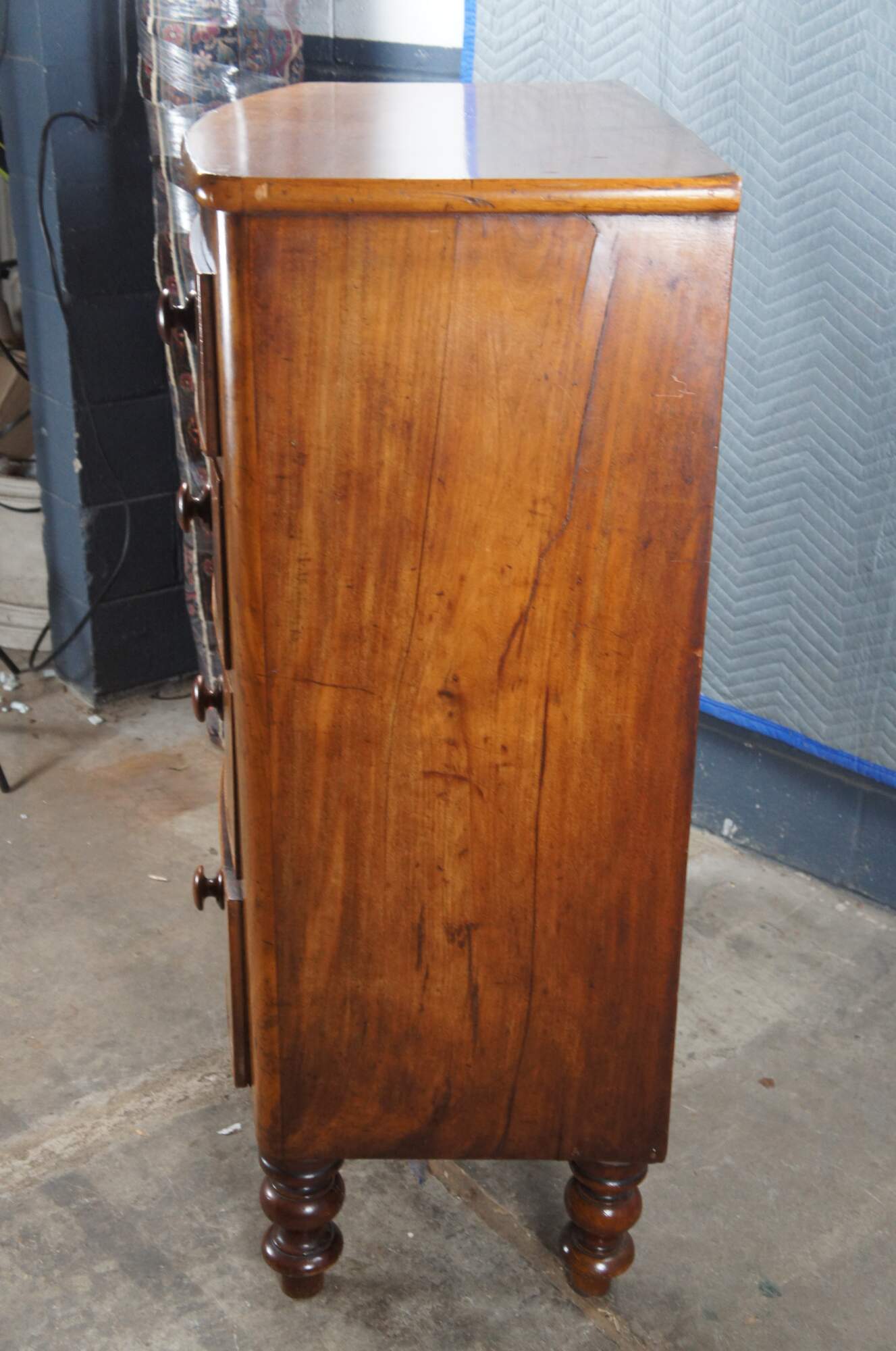 An exceptional antique 19th Century Victorian Tallbot Dresser. Features a mahogany frame with bowfront and two over three drawer configuration. The beautiful drawers showcase flame mahogany veneer and robust turned pulls. Each drawer is hand dovetailed. The case is supported by turned legs.