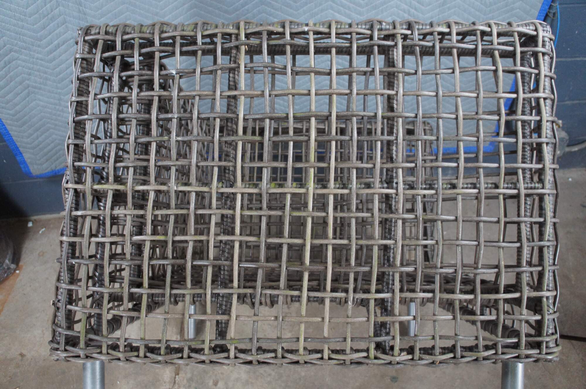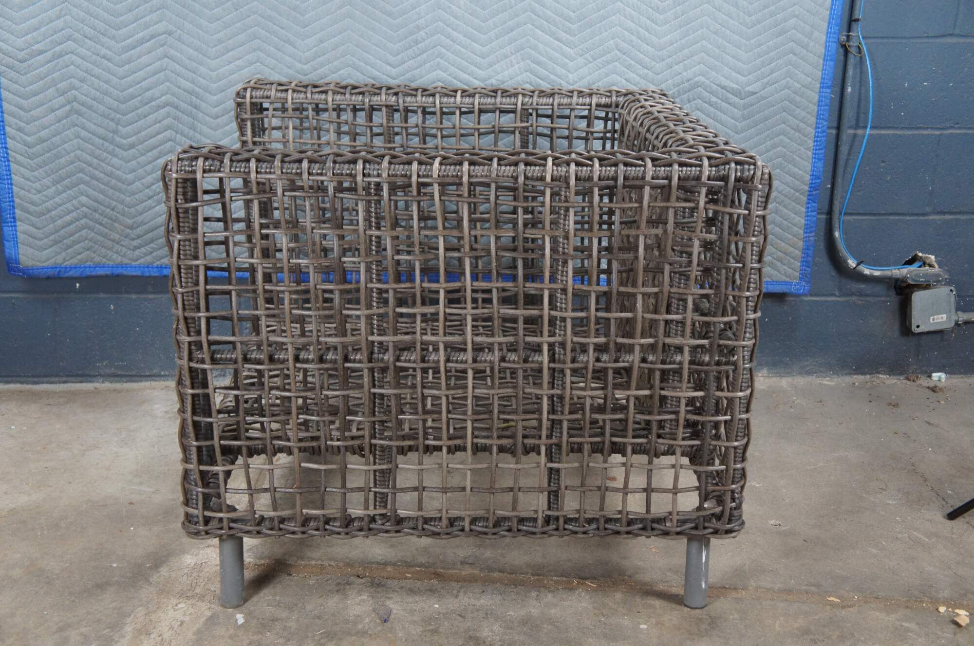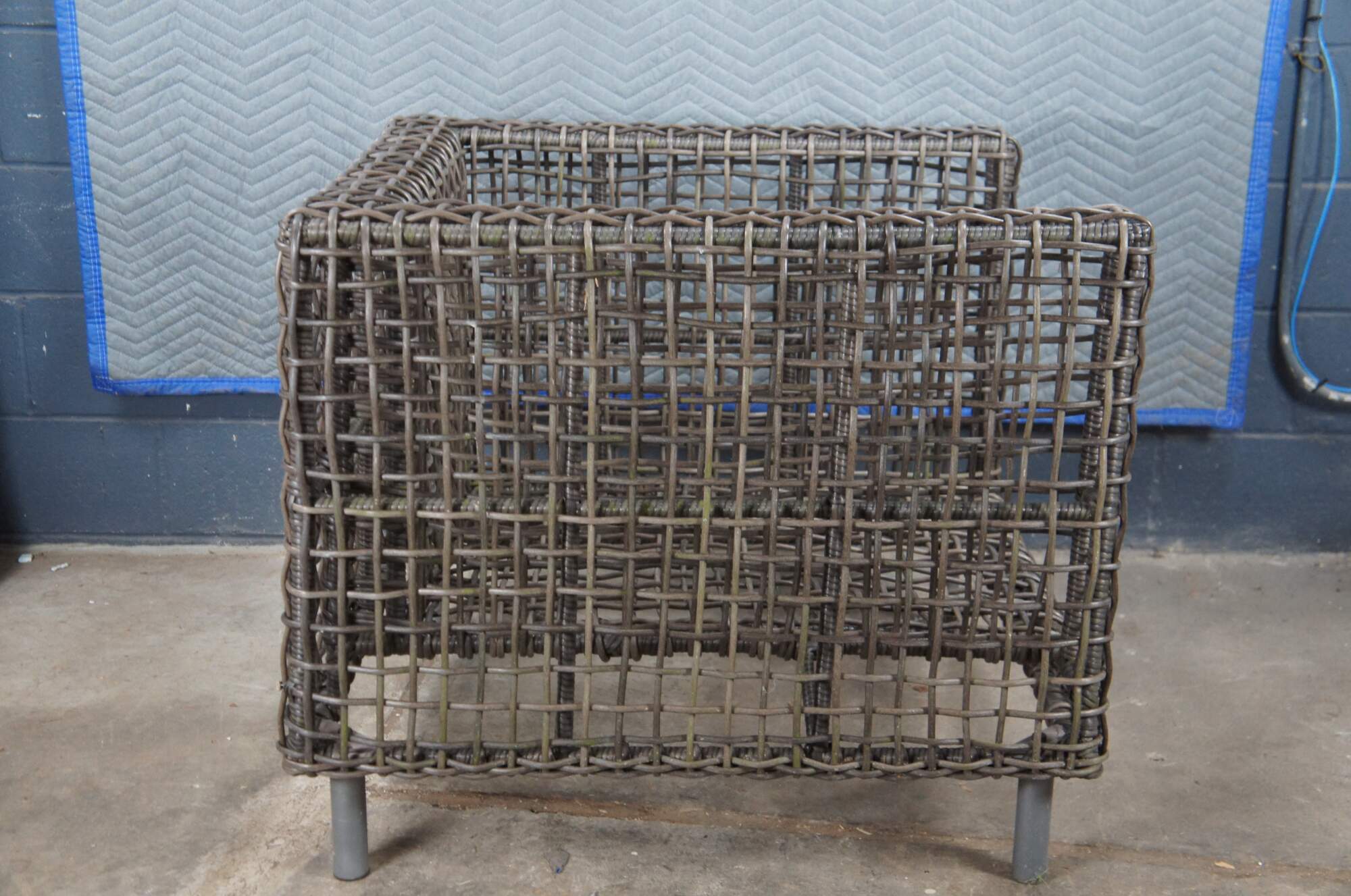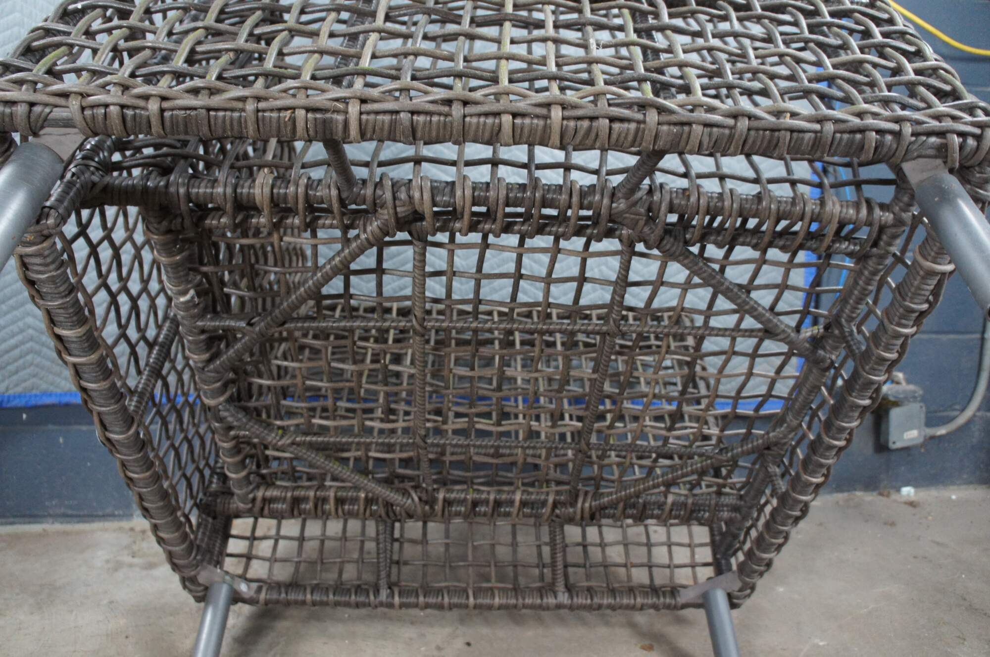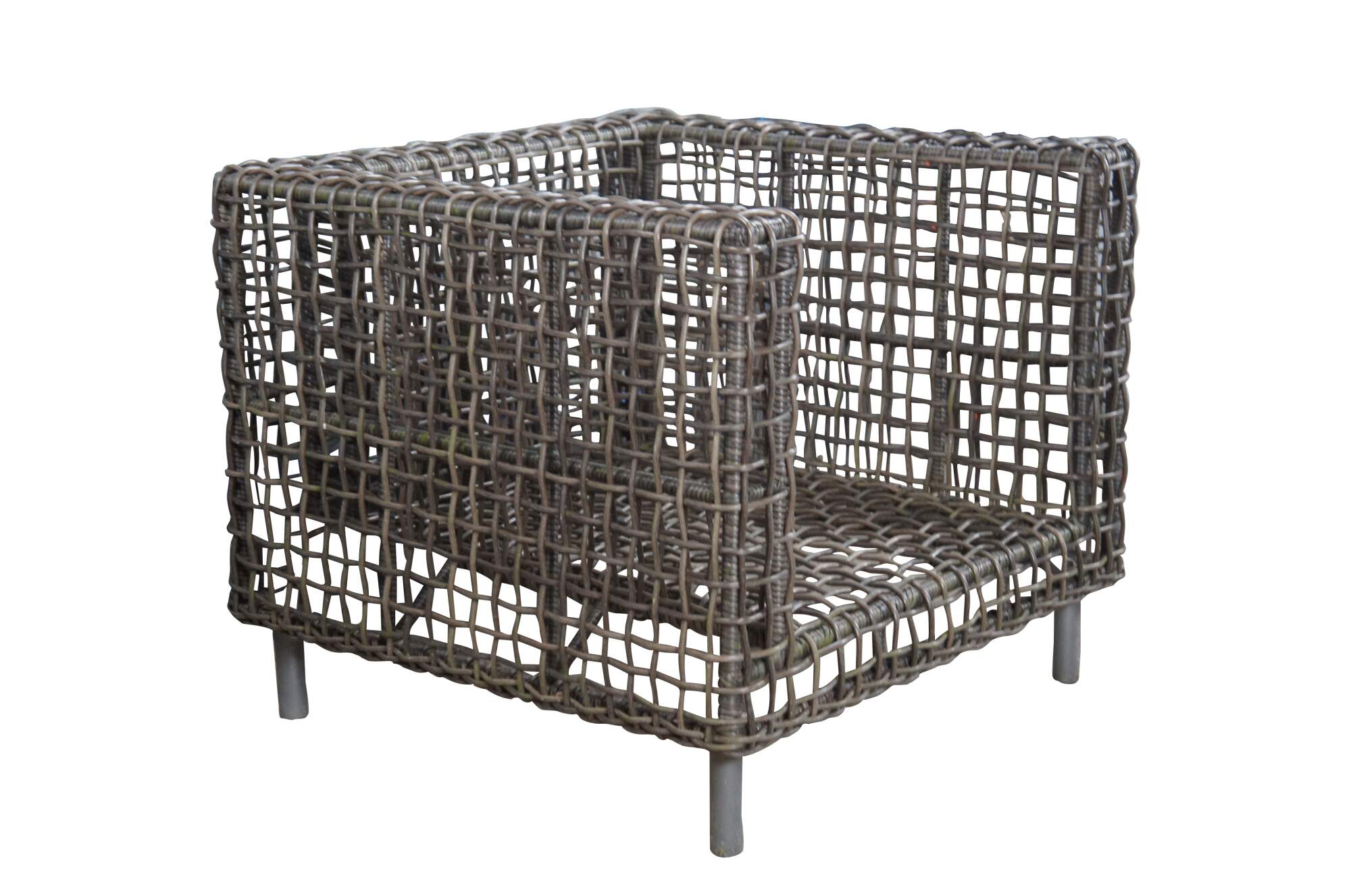 Woven wicker all weather outdoor patio chair by Arhaus.