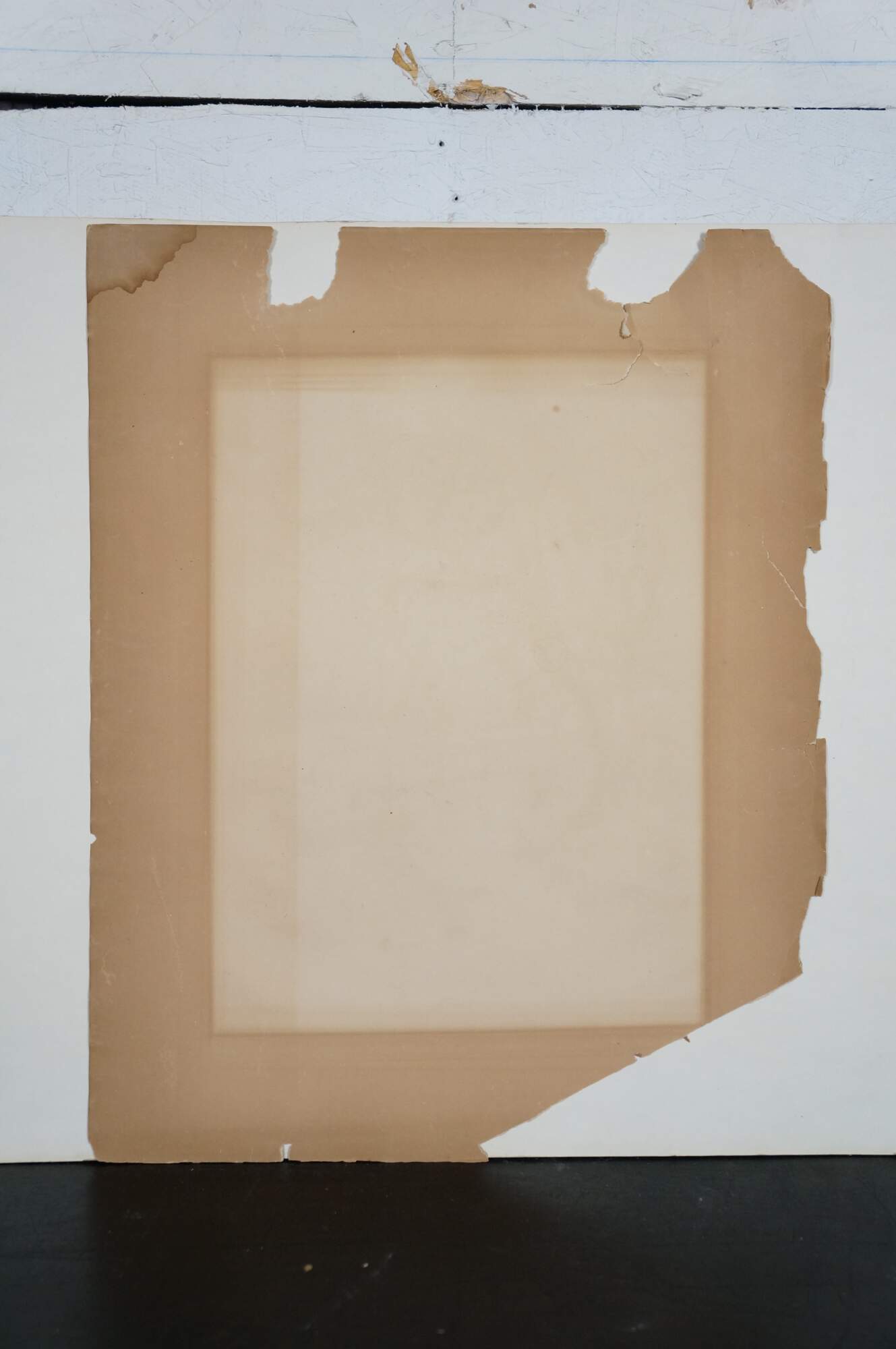 Wear and distressing, heavy discoloration / foxing; some spots/stains; tears arounds edges