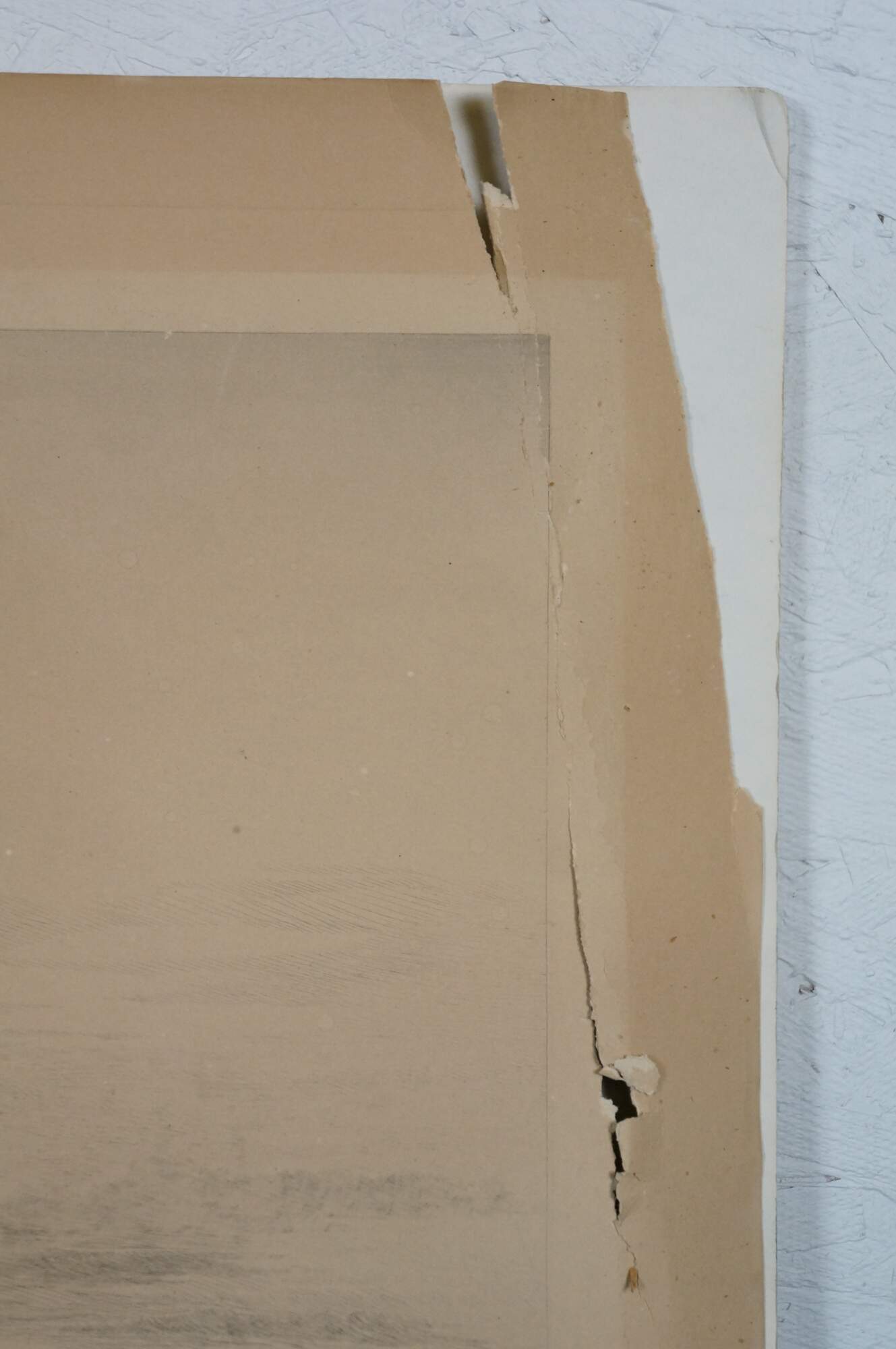 Wear and distressing from age; tears/damage around edges, foxing, discoloration.