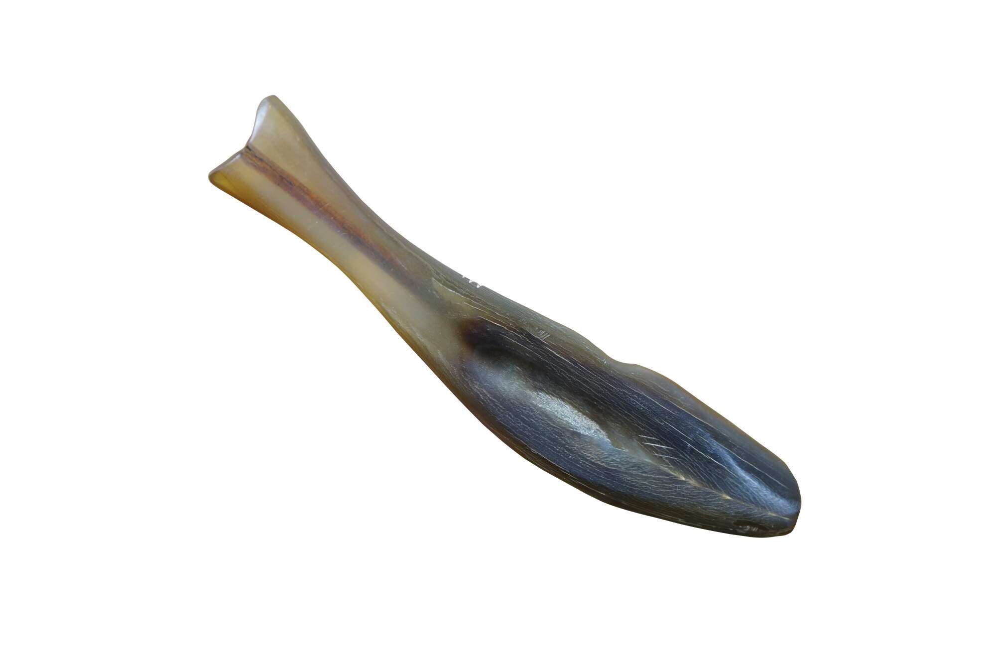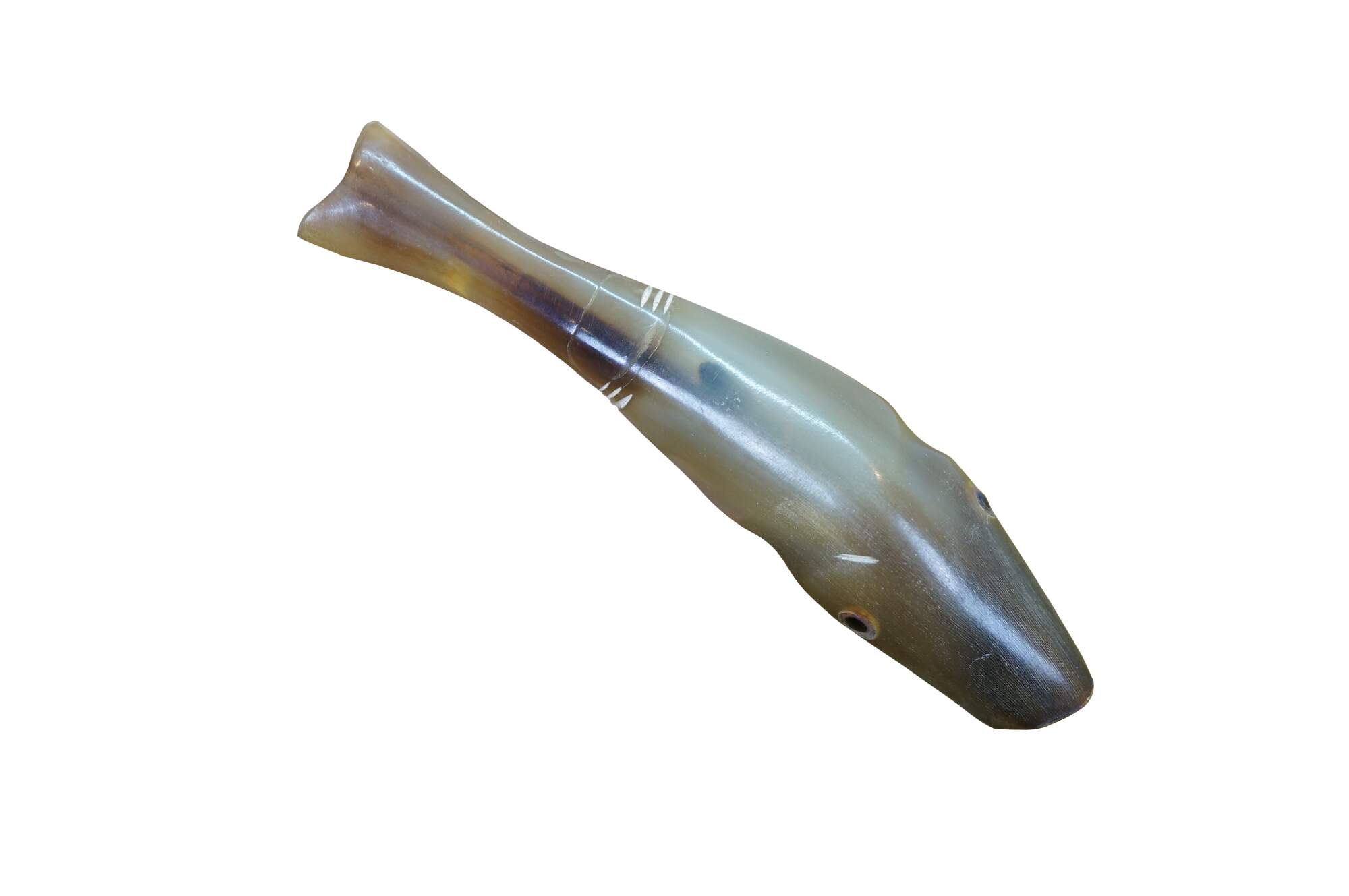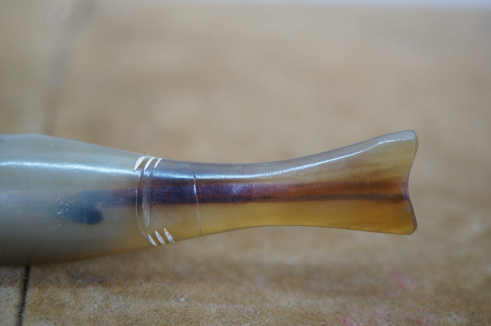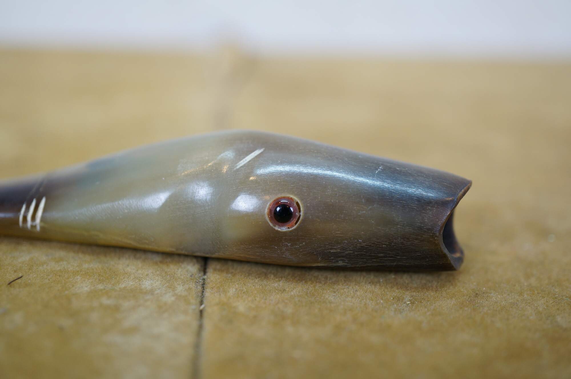 Vintage Korean carved cow horn fish shaped cigarette holder.