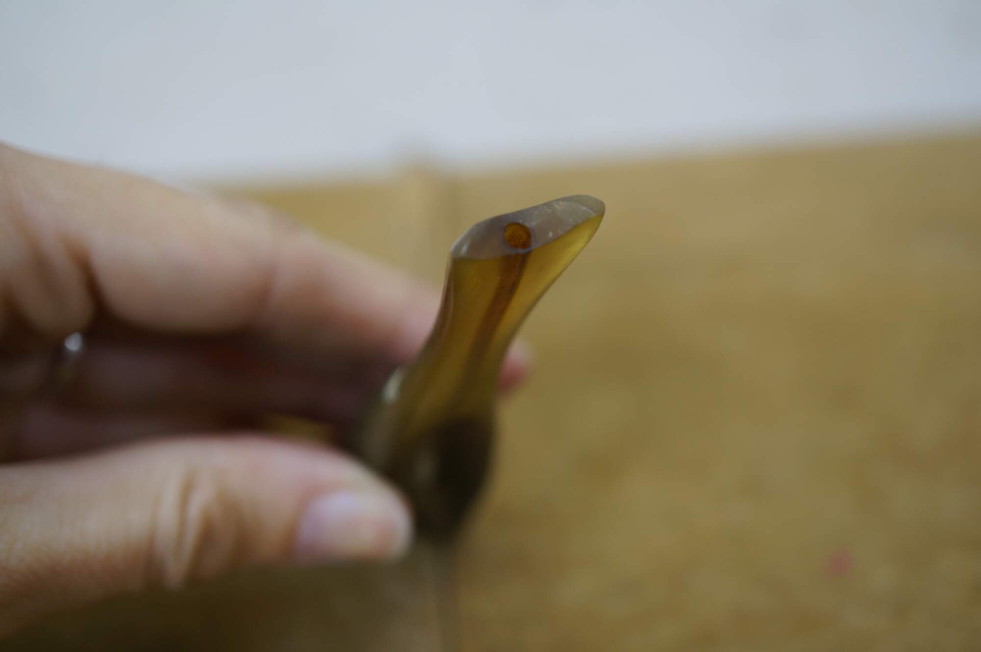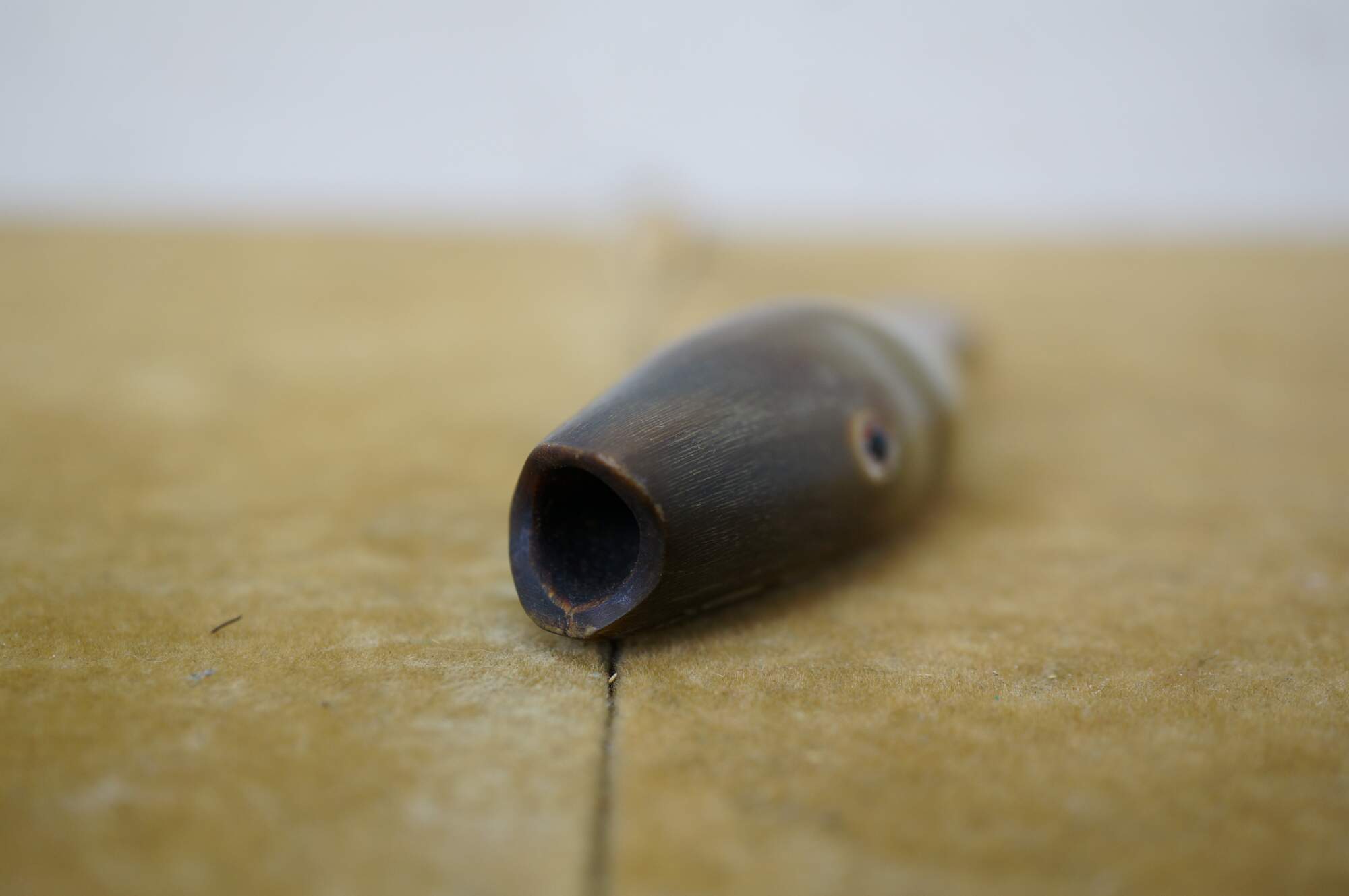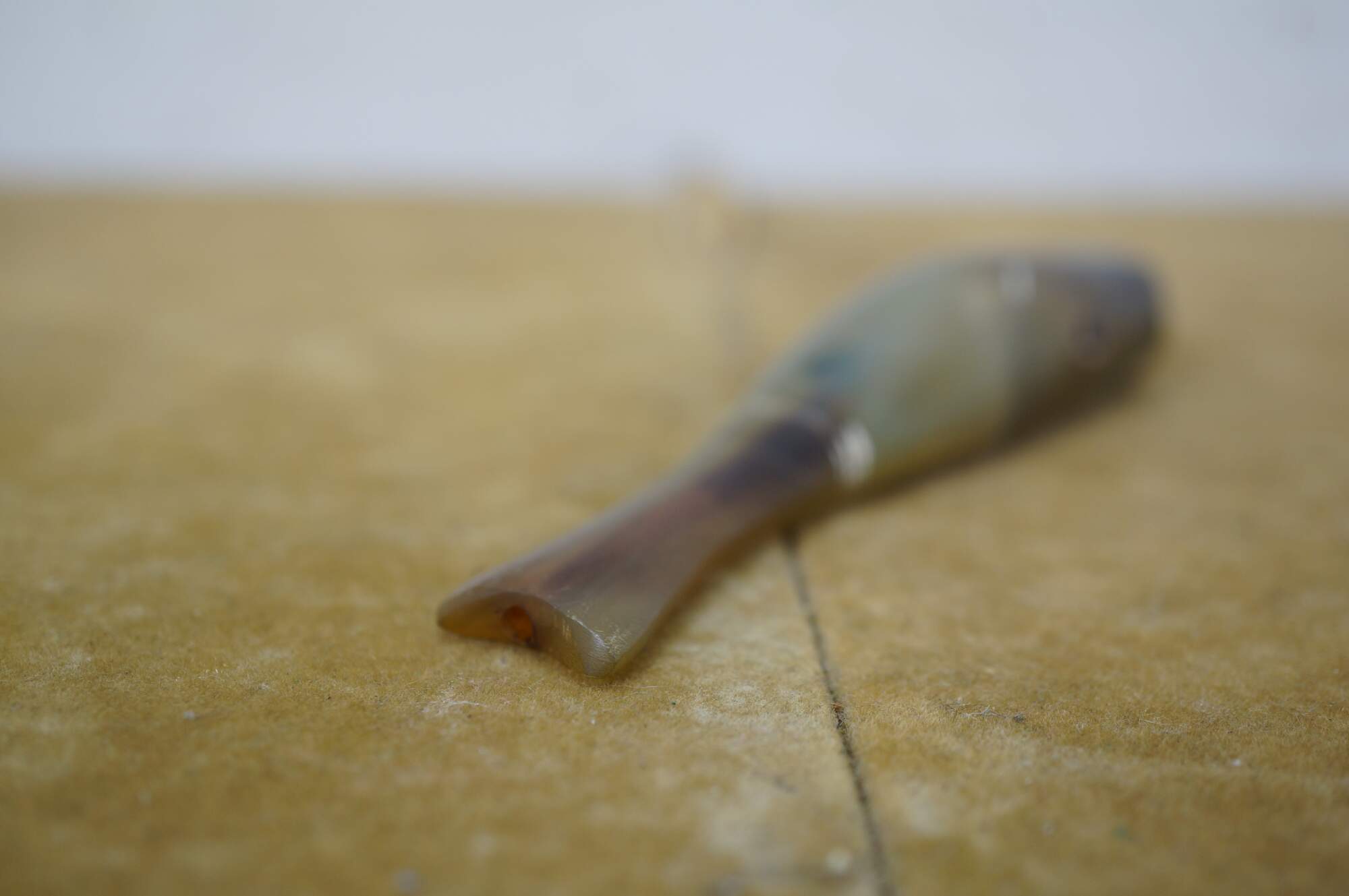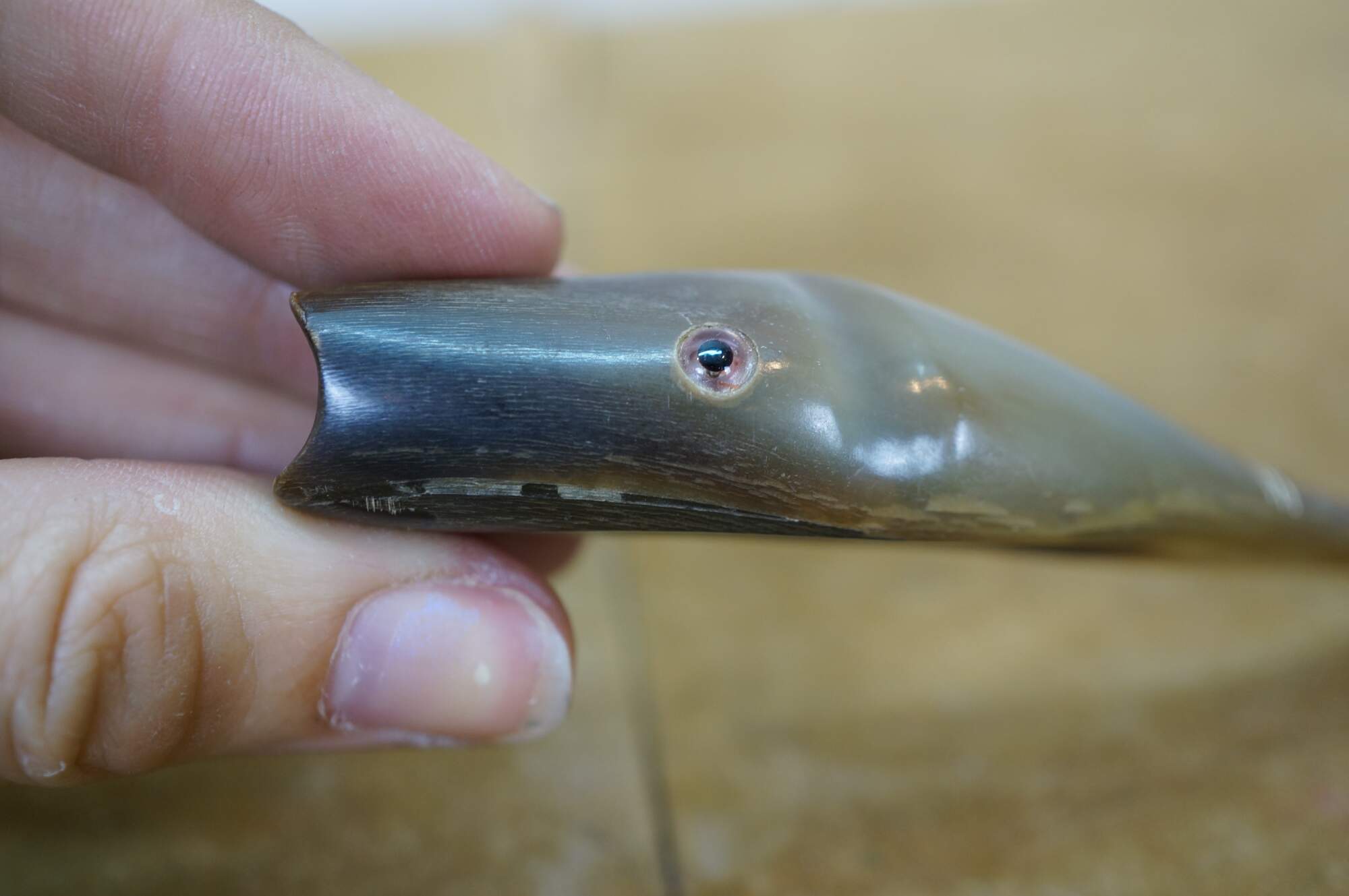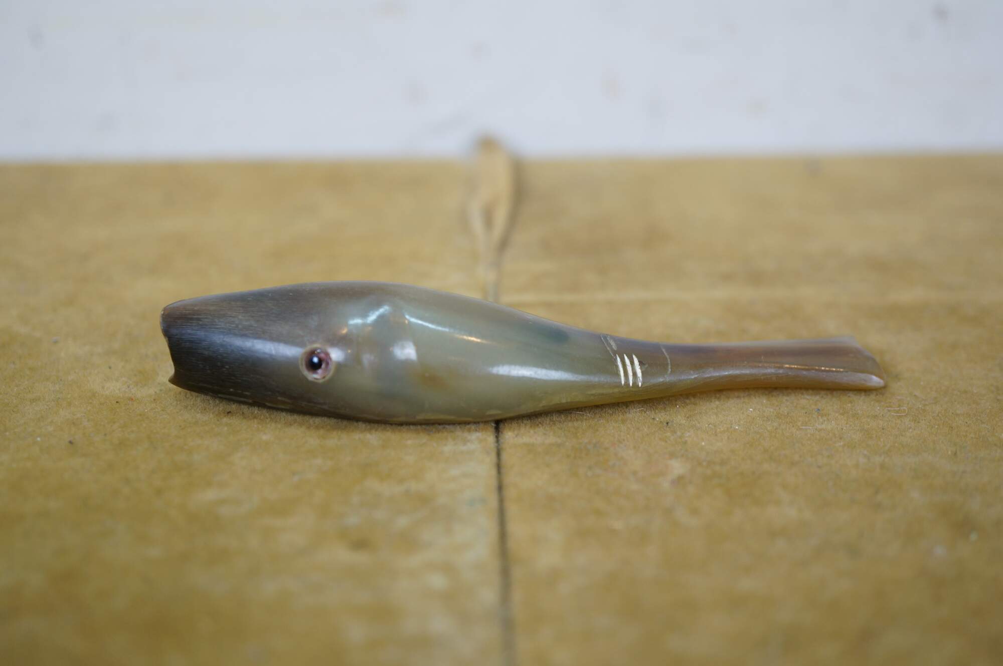 Vintage Korean carved cow horn fish shaped cigarette holder.
