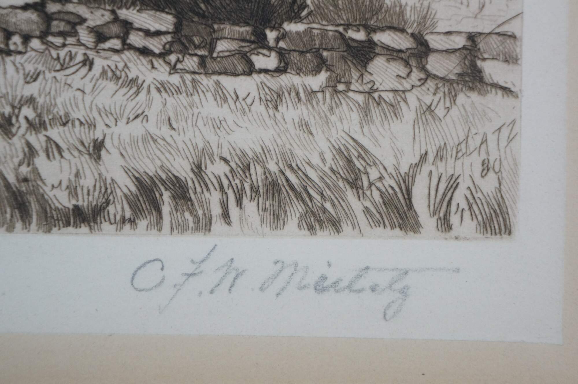 "Charles Frederick William Mielatz (né Karl Friedrich Wilhelm Mielatz; May 24, 1864 – July 2, 1919) was a Prussian-born American etcher, graphic artist, painter, lithographer, and educator. He is considered a prominent etcher of architectural subjects in the United States of America. Mielatz was born on May 24, 1864 in Breddin, Kingdom of Prussia (now Germany). His parents were Wilhelmina (née Wolff) and Carl Mielatz. At the age of 6, he moved with his family to the United States. He studied at Chicago School of Design and Painting, under painter Frederick Rondel. In the early 1880s, Mielatz moved to New York City, where he created his first etching in 1883. On February 25, 1903, Mielatz married Mary Stuart McKinney. In 1904, he became one of the first etching teachers at the National Academy of Design in New York City. Among his students were Anne Goldthwaite and Elizabeth Colborne. Mielatz was a member of the New York Etching Club and the Brooklyn Society of Etchers. He was an associate member of the National Academy of Design from 1906. He died on July 2, 1919 in New York City. Mielatz's work can be found in museum collections including the Metropolitan Museum of Art, Smithsonian American Art Museum,[8] Parrish Art Museum, Pennsylvania Academy of the Fine Arts, Fine Arts Museums of San Francisco, and the National Gallery of Art." (Source: Wikipedia)