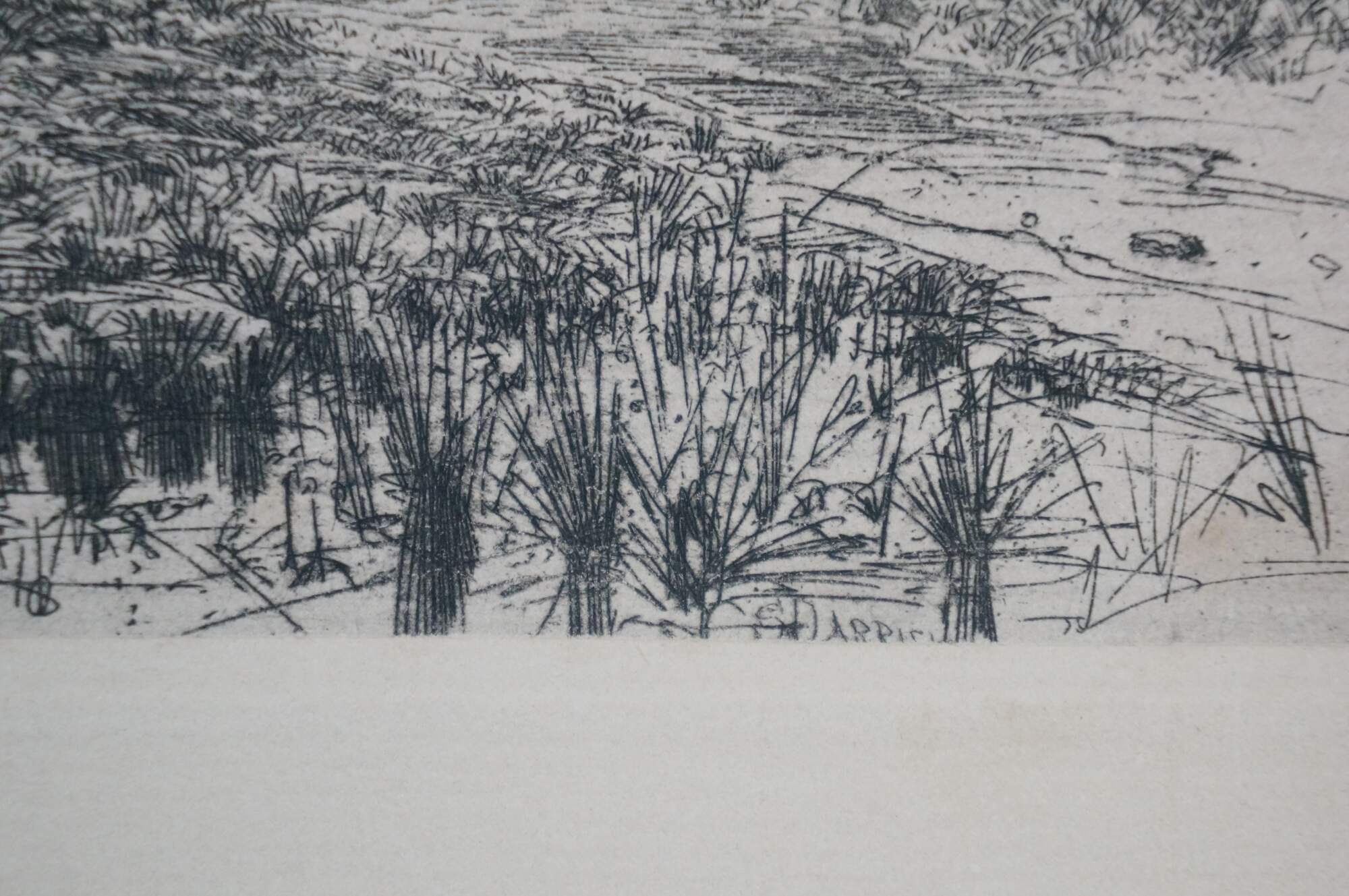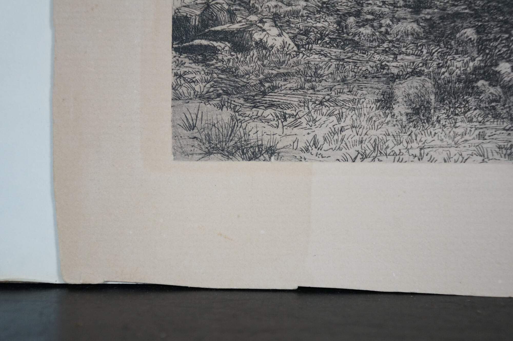 "Stephen Parrish (1846 – 1938) was an American painter and etcher who became one of the 19th century's most celebrated printmakers during the "American Etching Revival."[1][2] Privately trained by painter and animal etcher Peter Moran, Parrish was best known for his landscape etching of "Eastern North America, particularly the harbors and villages of New England and Canada," and as the father of painter and illustrator Maxfield Parrish. Parrish was engaged in mercantile pursuits until he was 30, when he applied himself to art, studying for a year with a local teacher. In 1878, he attended the Pennsylvania Academy in Philadelphia, and in 1879 at the National Academy in New York City. He soon turned his attention also to etching, and in December 1879, produced his first plate. After that he applied himself to both branches of art, exhibiting in New York City, Boston, Philadelphia, London, Liverpool, Paris, Munich, Dresden, and Vienna. Born to a Philadelphia Quaker family, Parrish married in 1869, and his only child, artist Frederick Maxfield Parrish was born in 1870." (Wikipedia)