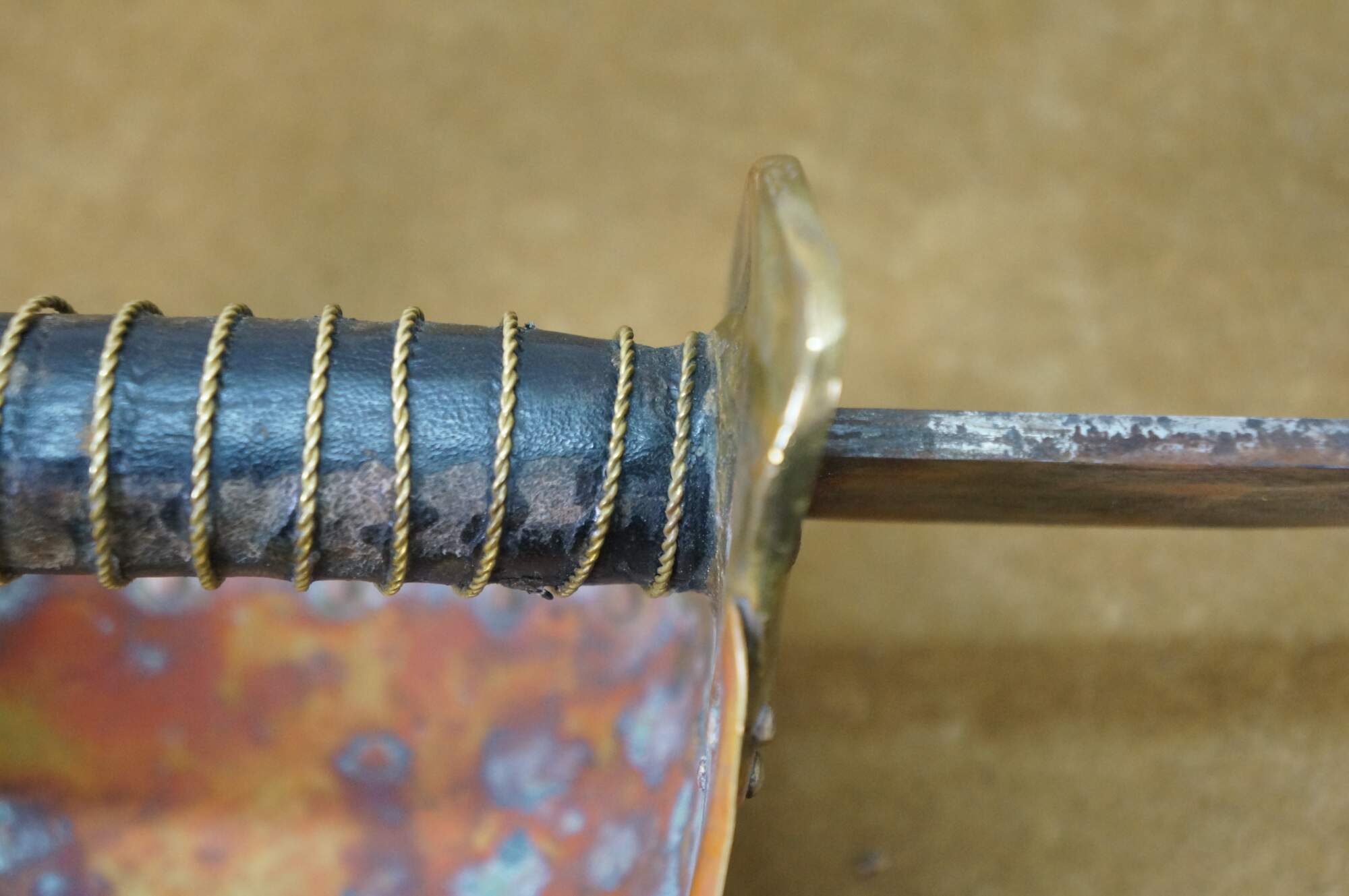 Good Overall - Gentle wear; stains to leather; spots/tarnish/rusting to metal
