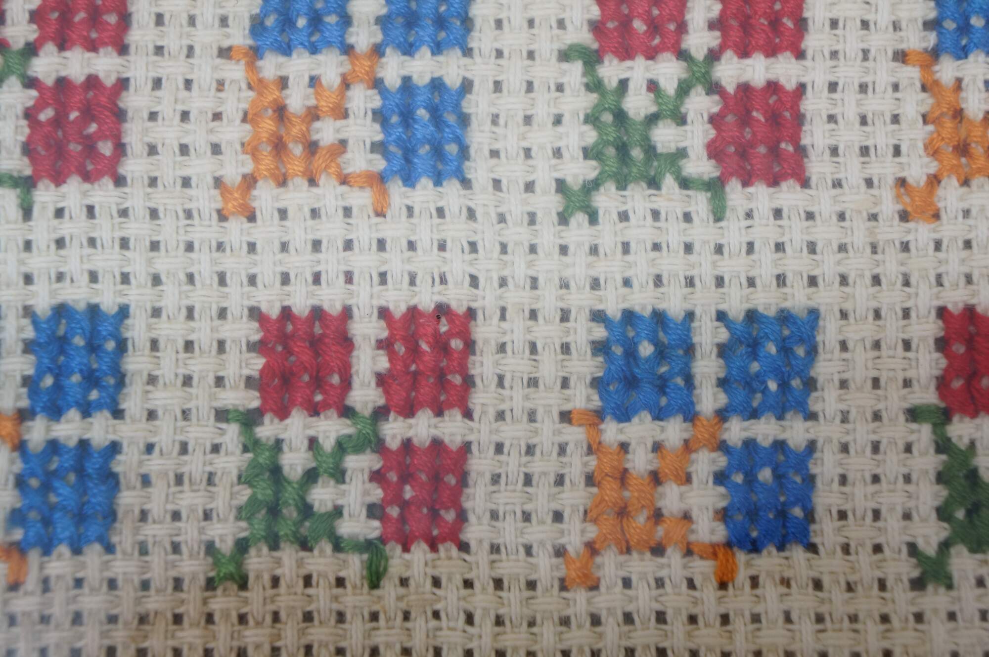 Good Overall - Gentle wear, aging / fading / staining to cross stitch.