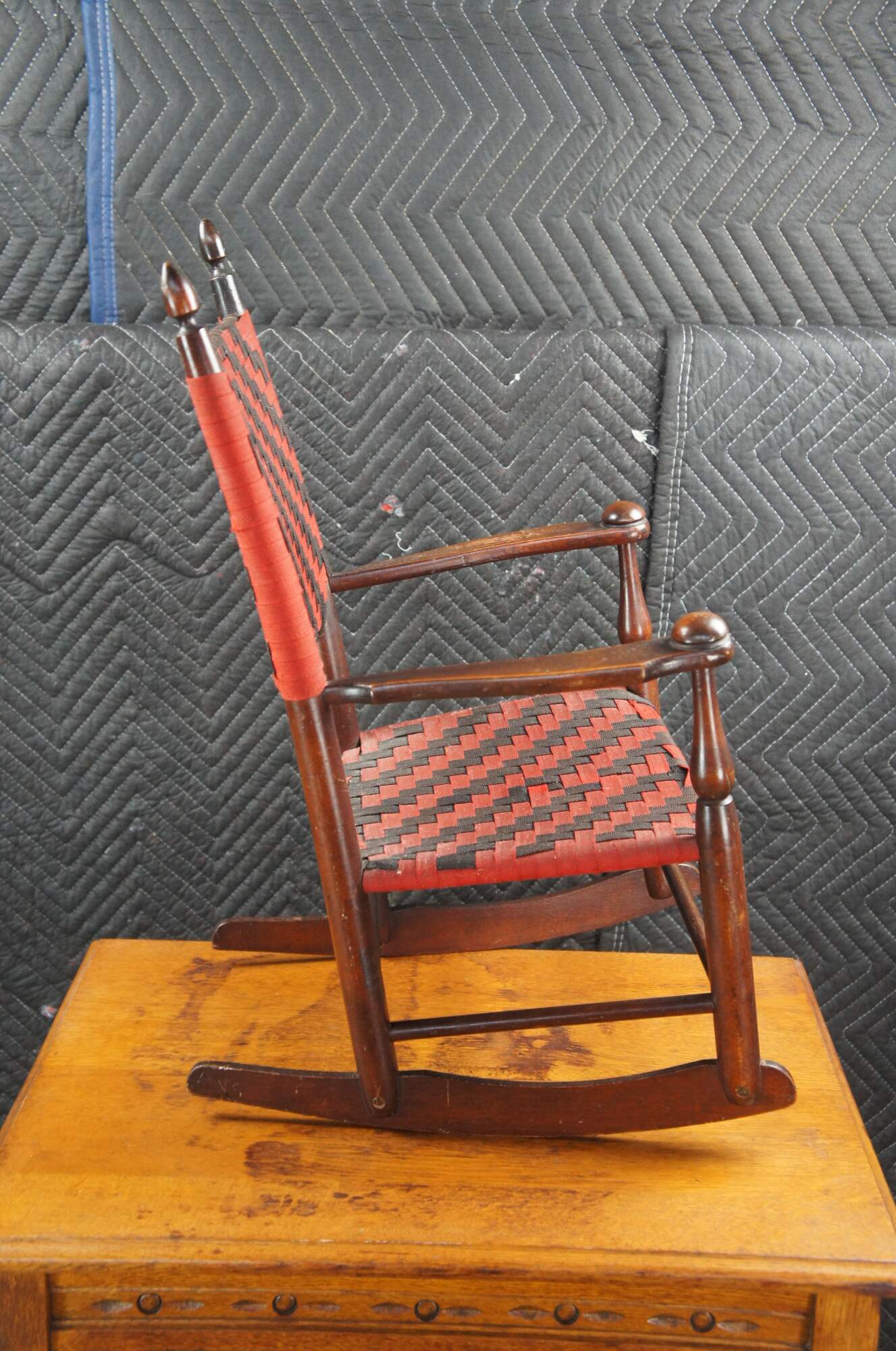 A rare and impressive American Shaker Child's Rocking Chair, circa last quarter 19th Century. This beautiful example comes from Shakers in Mt. Lebanon New York. The Mount Lebanon Shaker Society was the most important Shaker site in America. Their first meeting house opened in 1785.