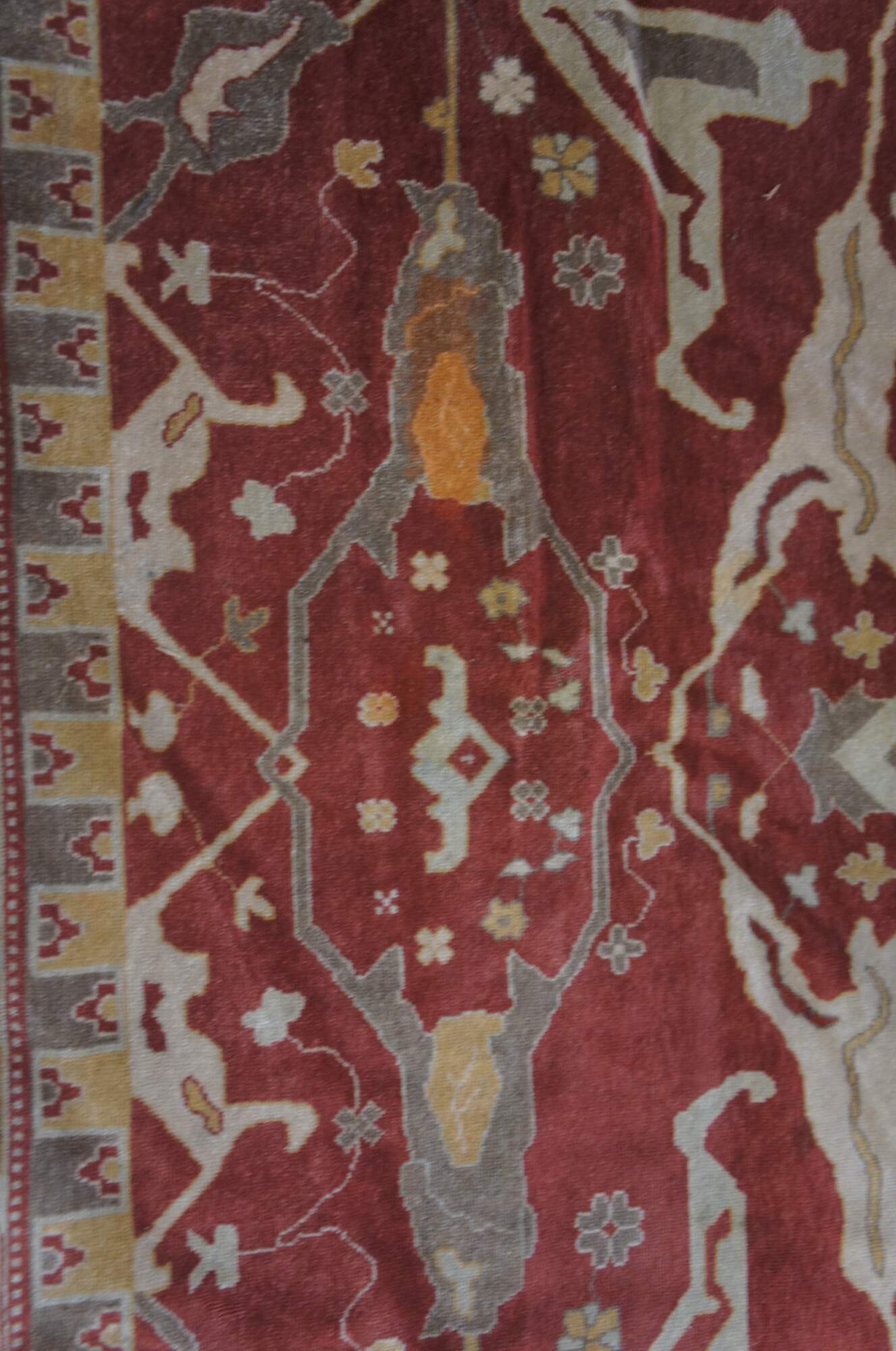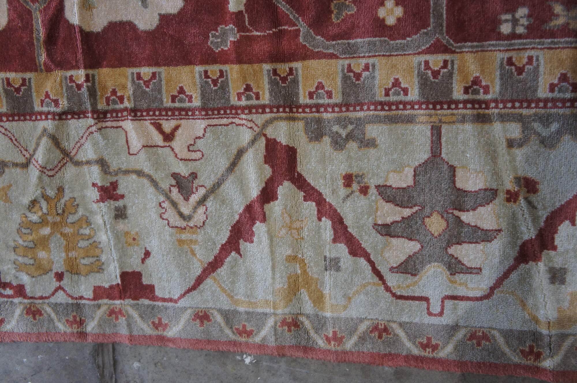 Gentle wear from use and age. A few blemishes / stains to pile