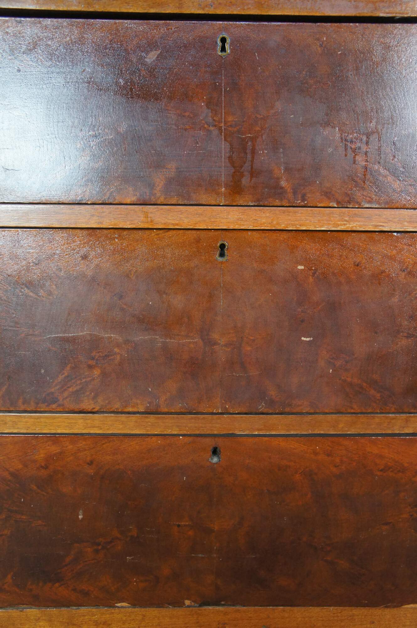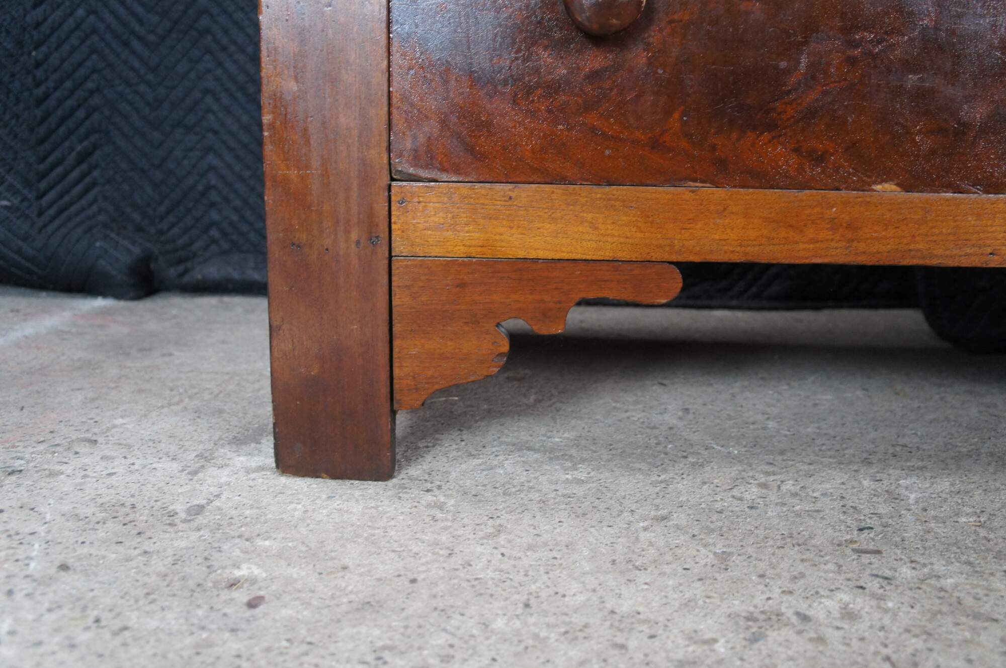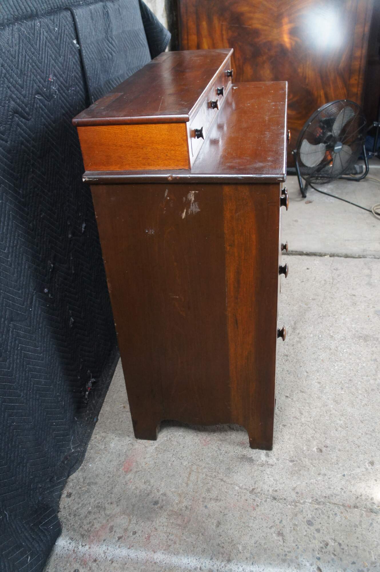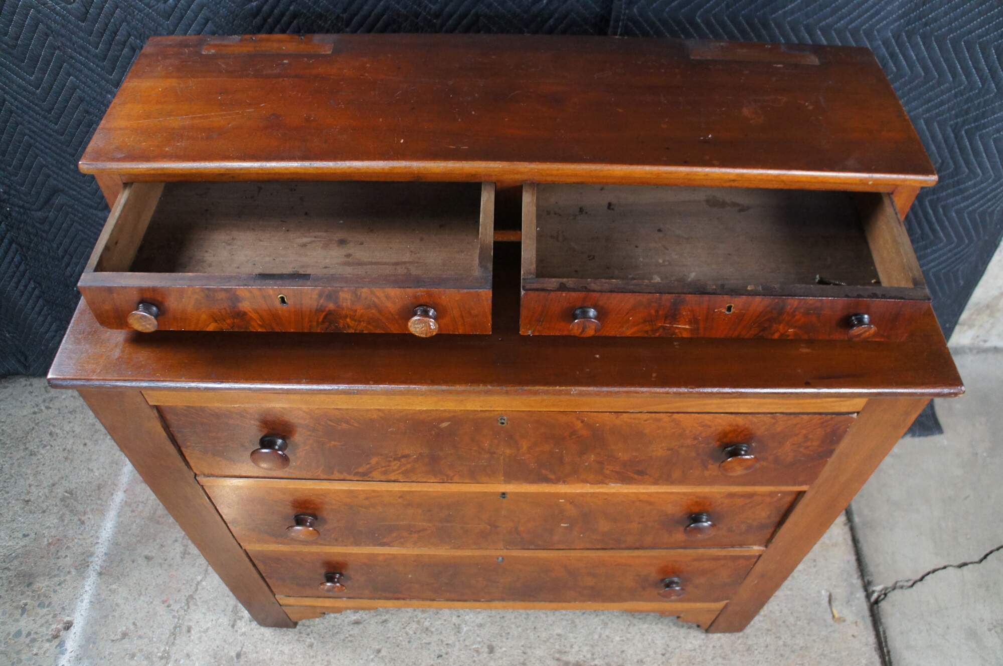Antique Victorian Era Stepback Dresser & Mirror, c. 1870s. Made from walnut with crotch walnut veneered drawer fronts. Features a wishbone swivel mirror over two gloveboxes and a case with three hand dovetailed drawers.