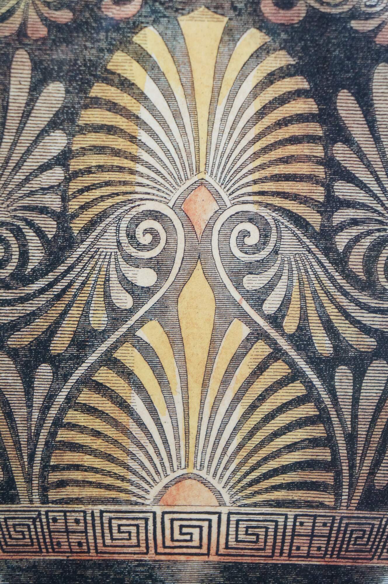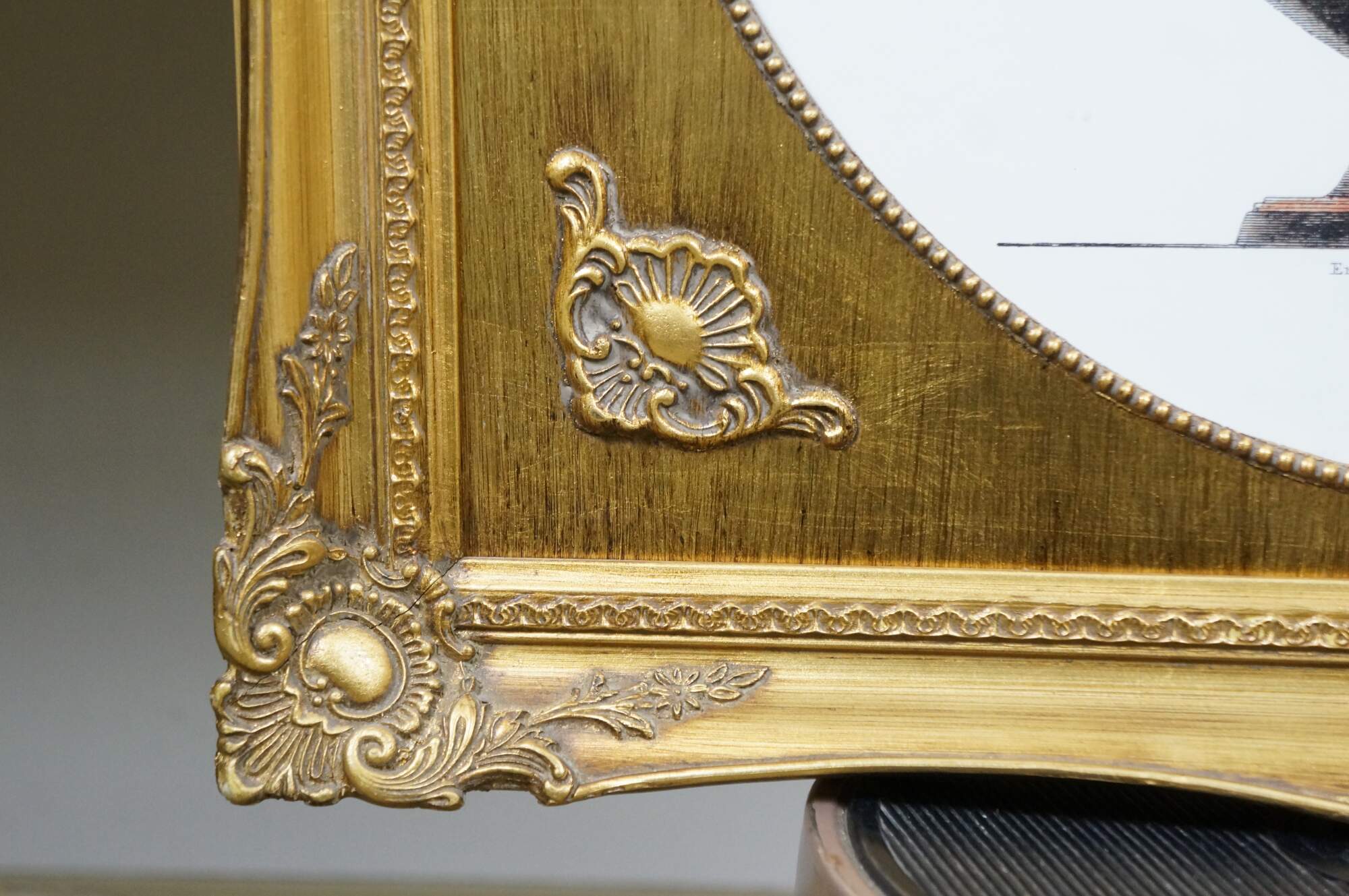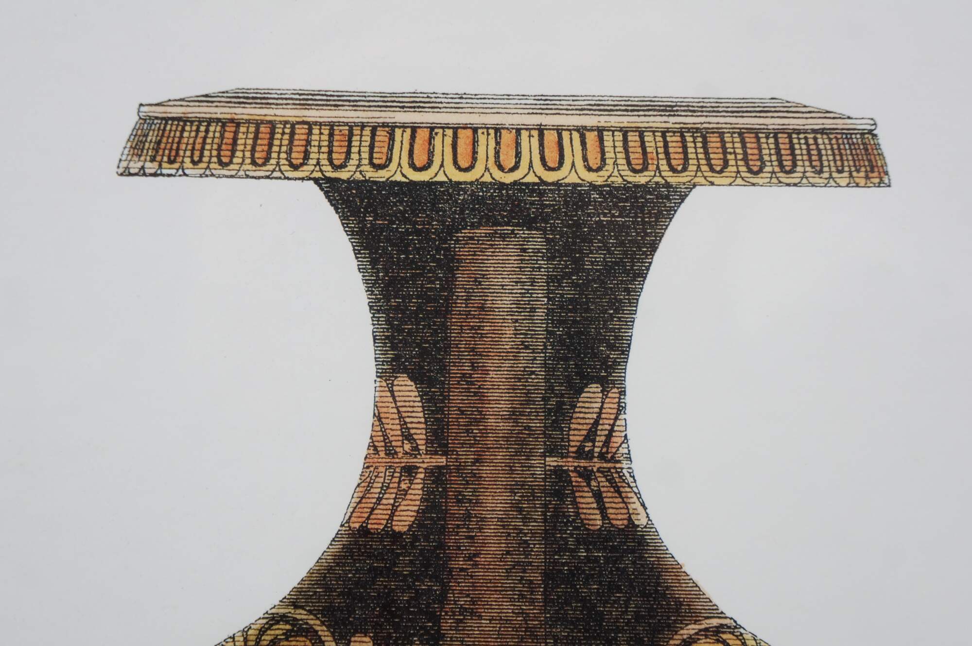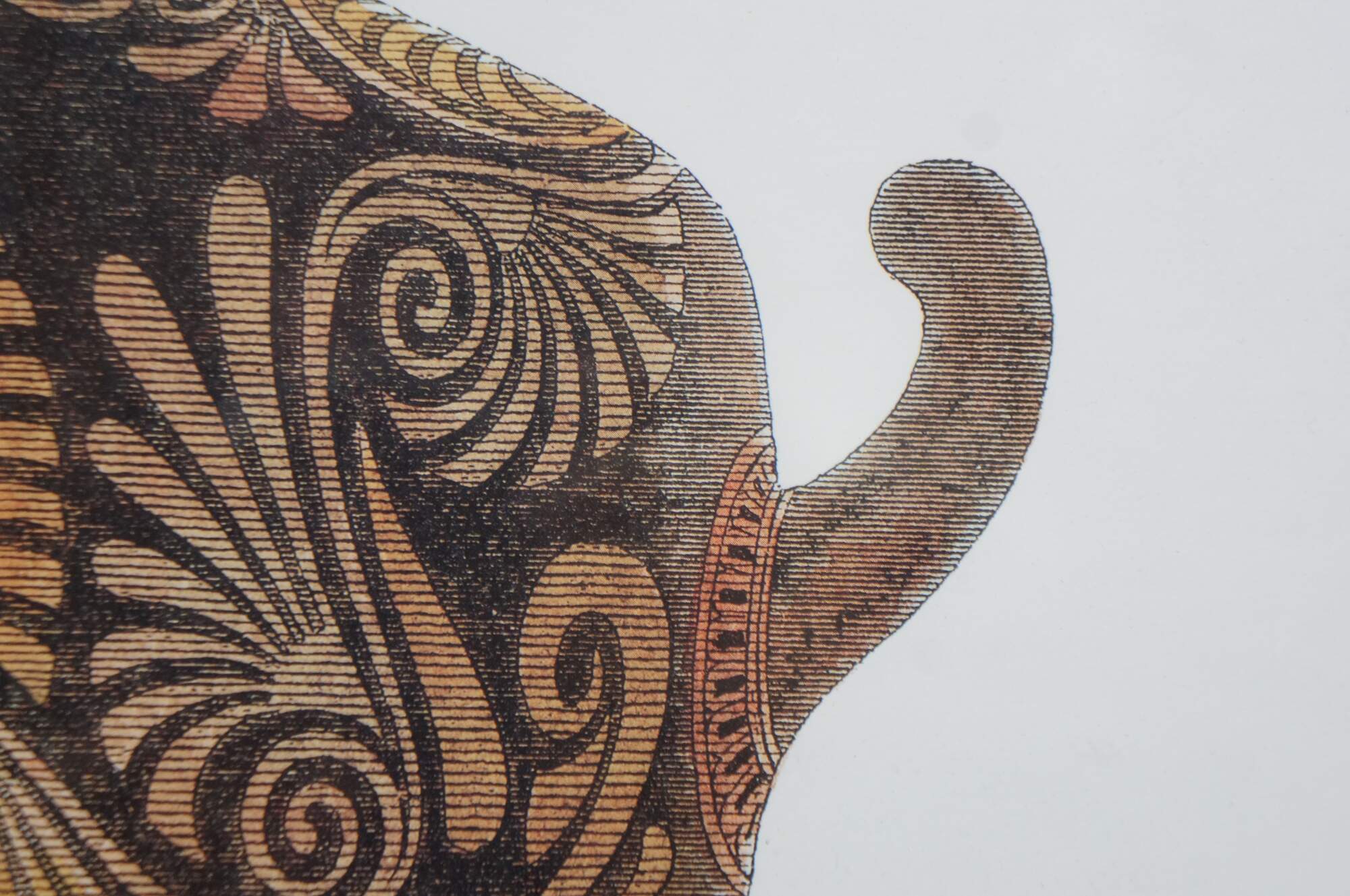 Late 20th century print after an engraving by Henry Moses, depicting a black and gold ancient Etruscan vase / urn. Broad gilt frame with scallop and foliate corners / accents.
