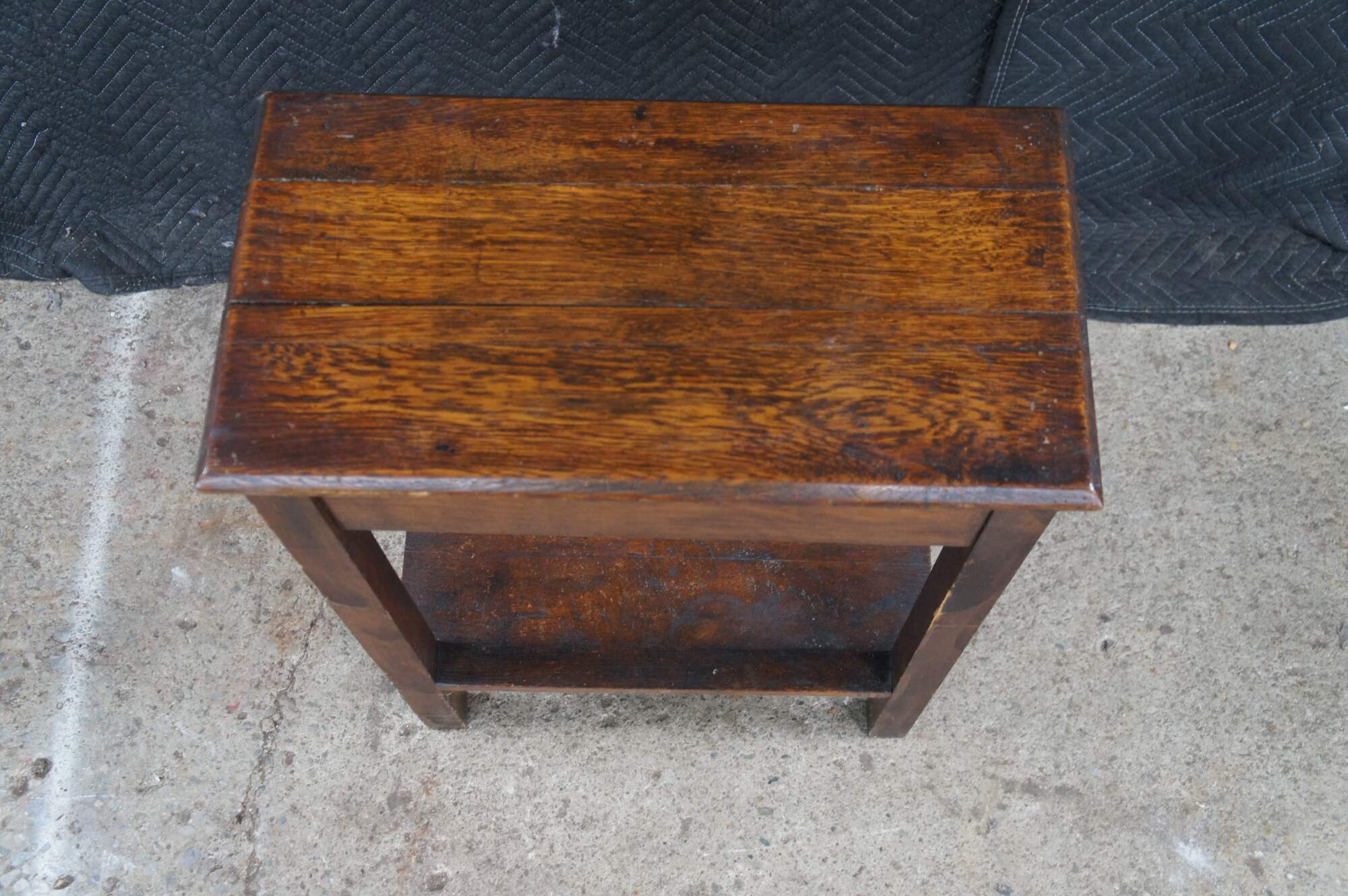 Antique quartersawn oak table or stand featuring a rectangular form with two tiers.