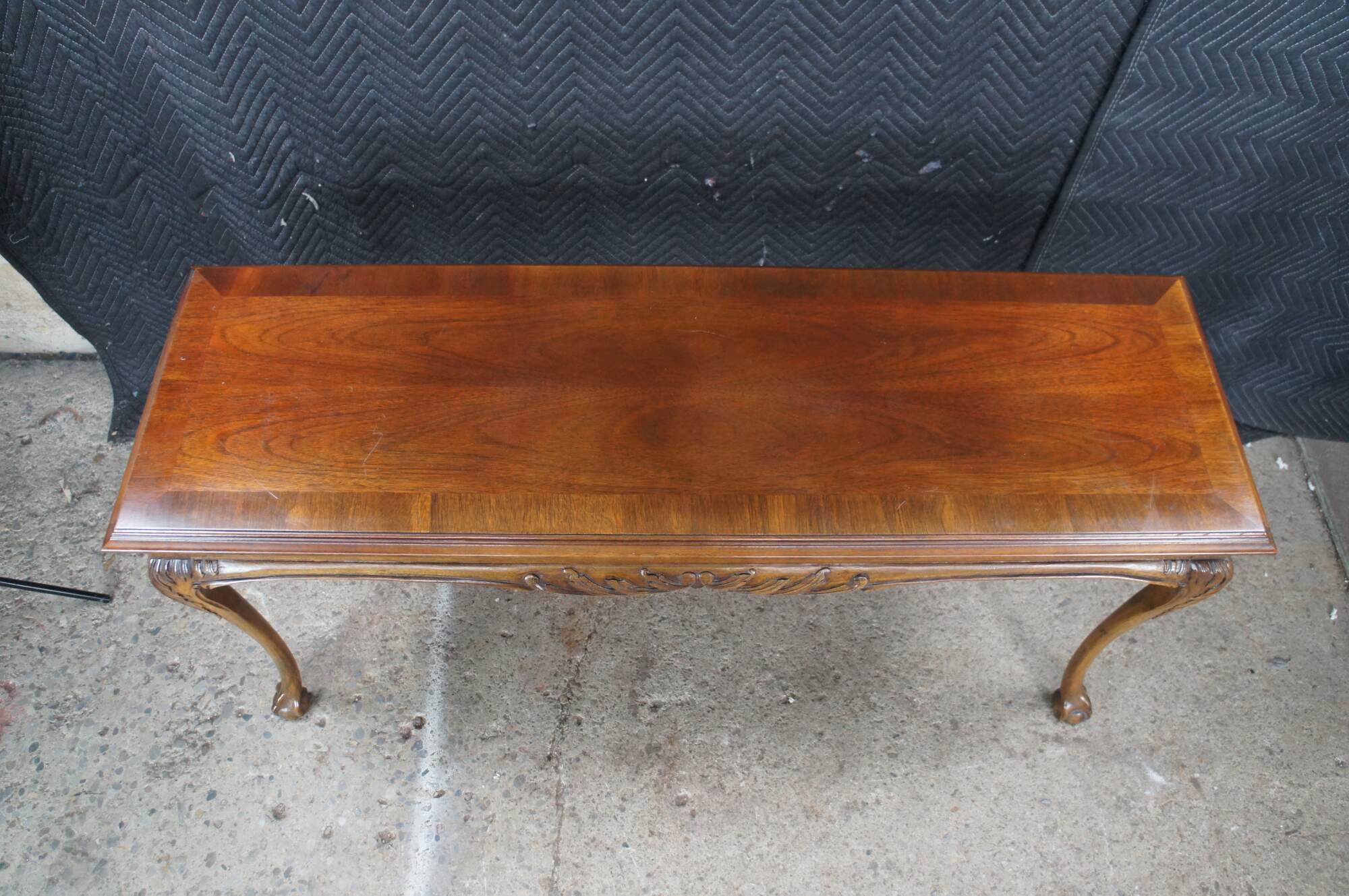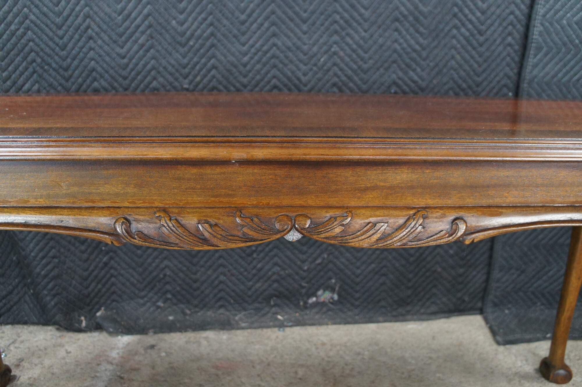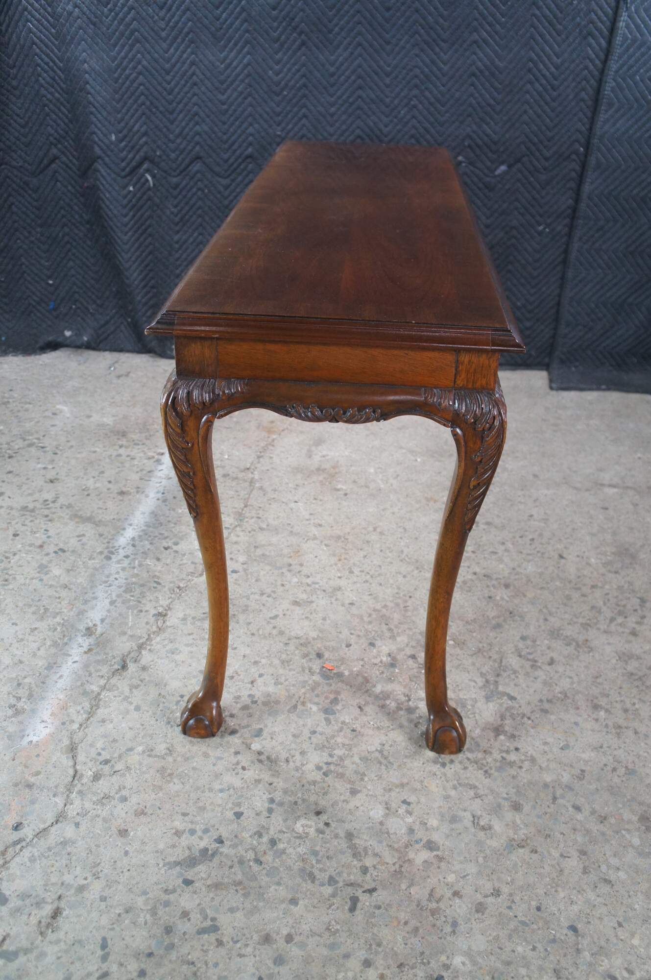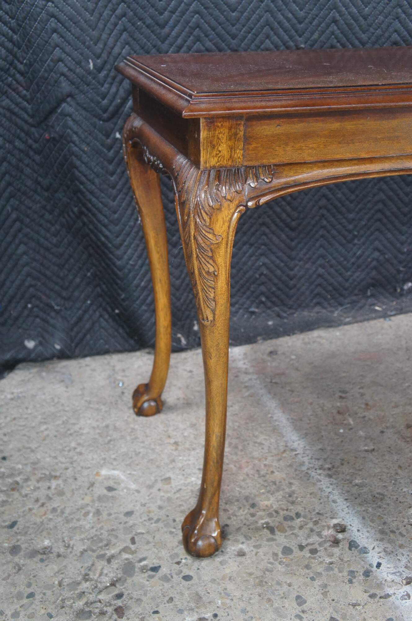 Vintage Lane sofa table / hall table / console / sideboard. Made of mahogany featuring Chippendale styling with banded top, acanthus accents, and ball and claw feet.