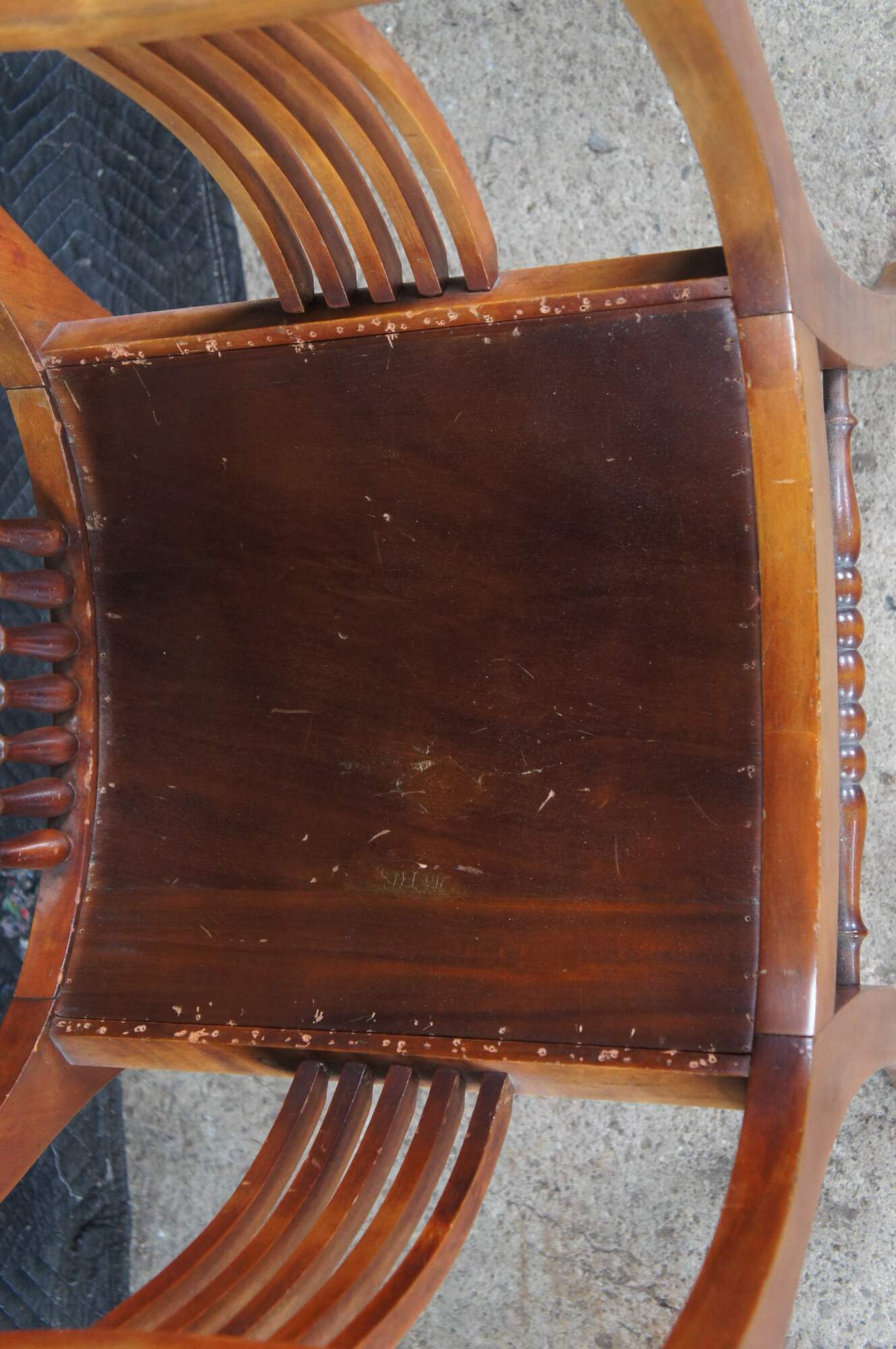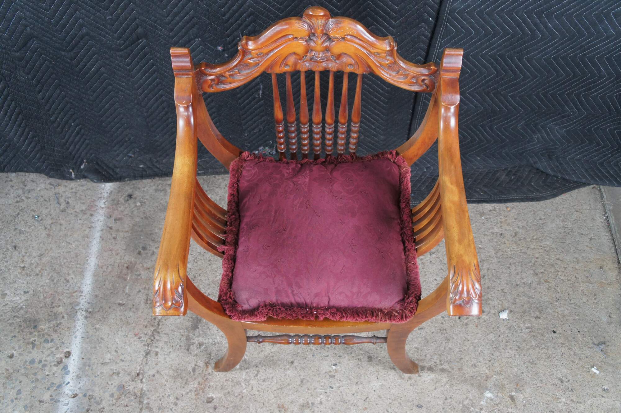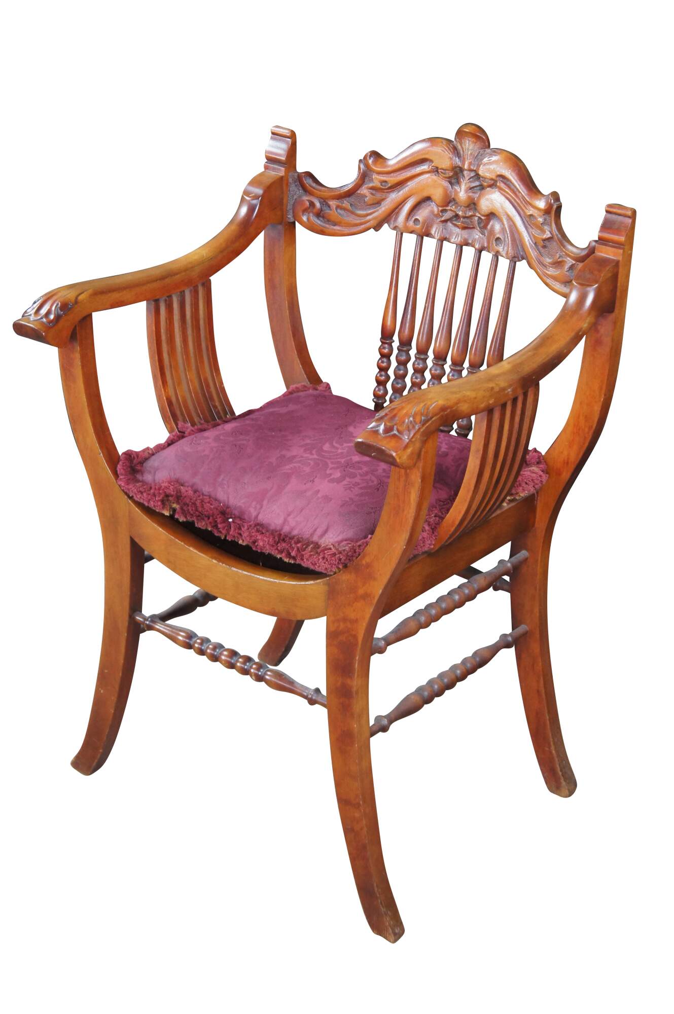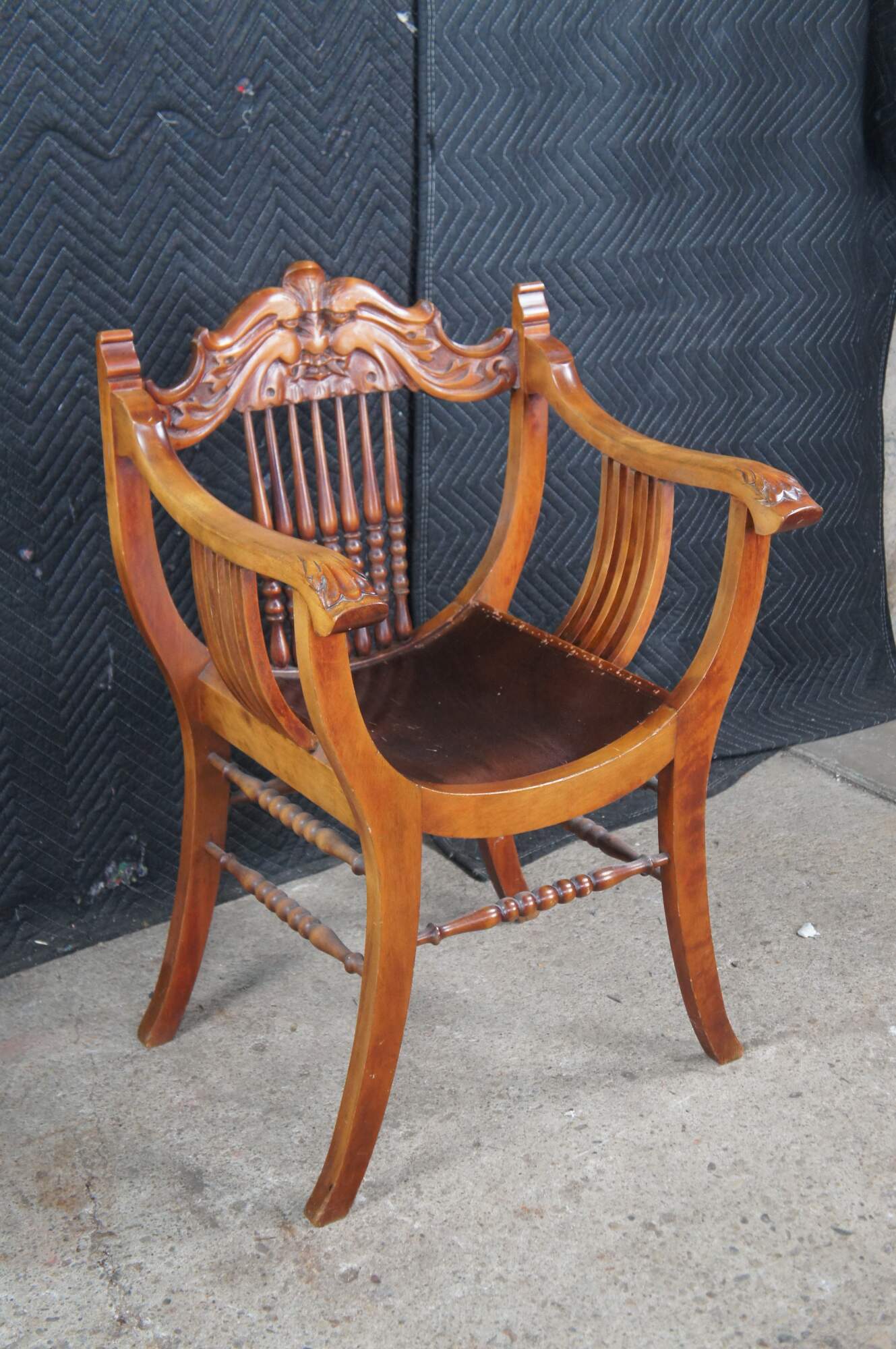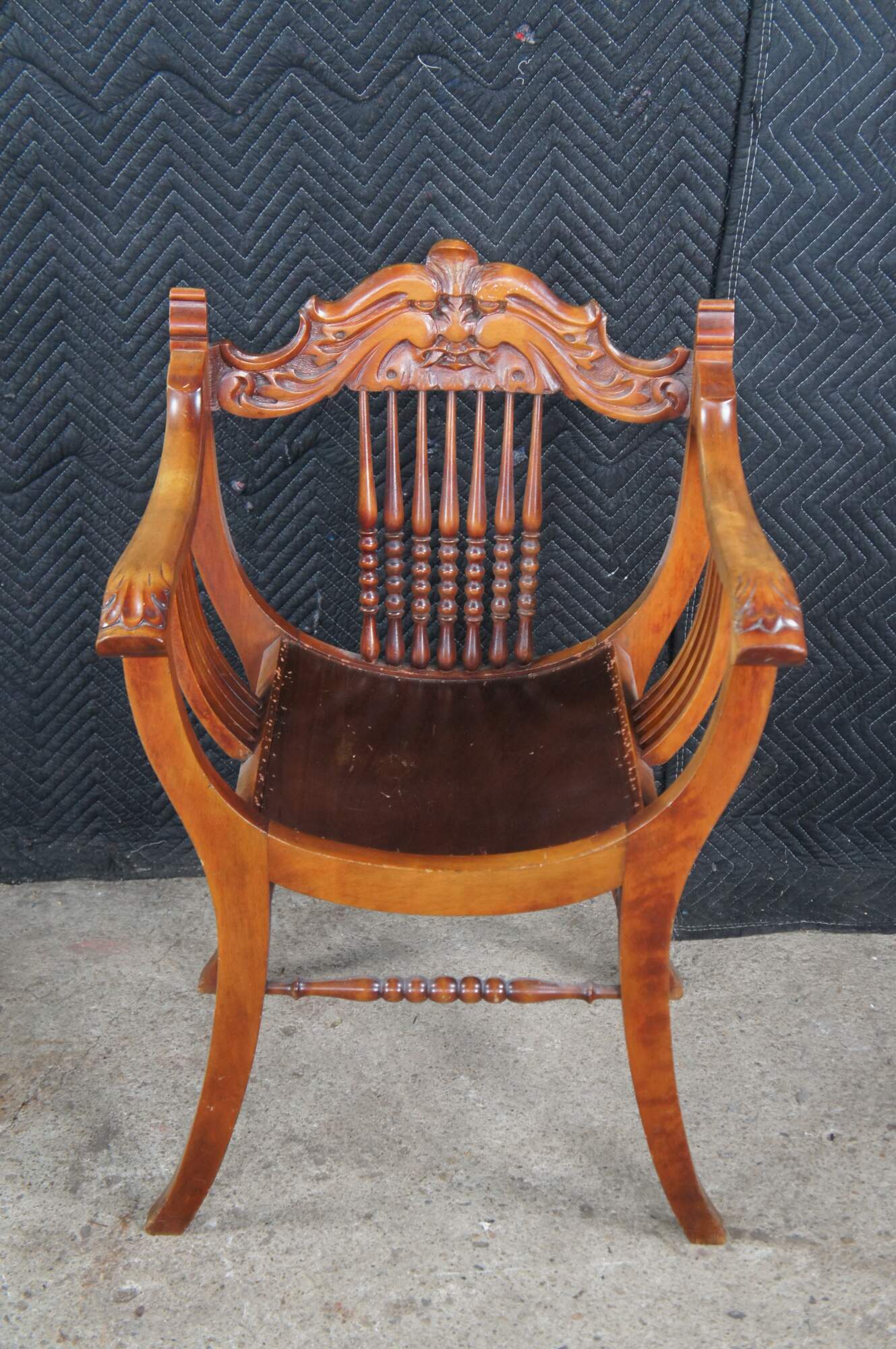 Antique Victorian Grotesque / Northwind arm chair by Michigan Chair Company circa 1905. Made of mahogny featuring steambent design with curule saddle seat and figural back. The design comes from Ancient Rome and Europe through the early 20th century. Features Gothic, Renaissance, and classical inspiration.