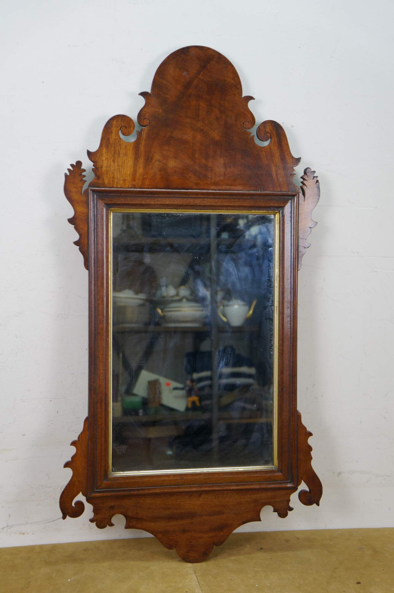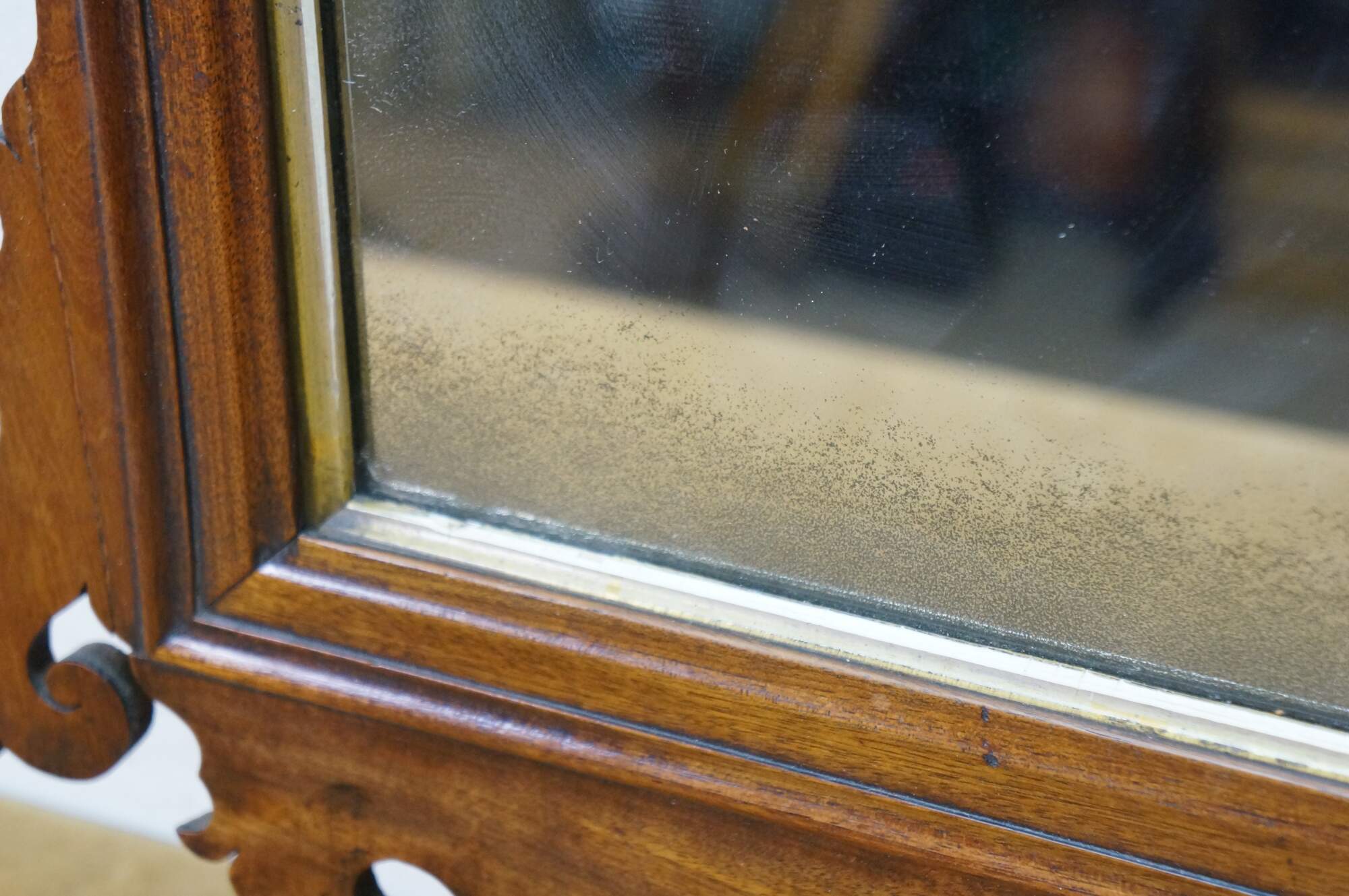 Antique 18th century Chippendale wall mirror attributed to John Elliot & Sons of Philladelphia. It features a beveled frame accented with broad carved fret and a gilt inner edge.