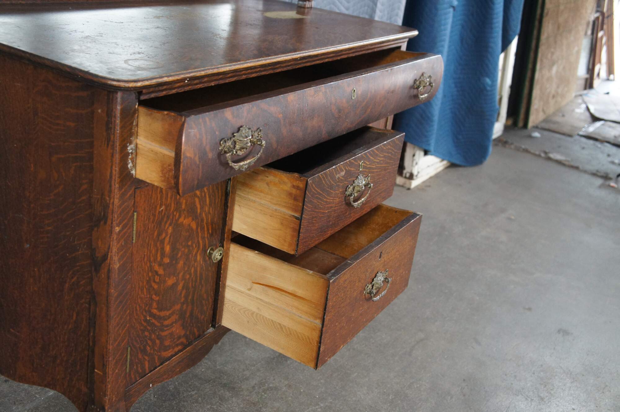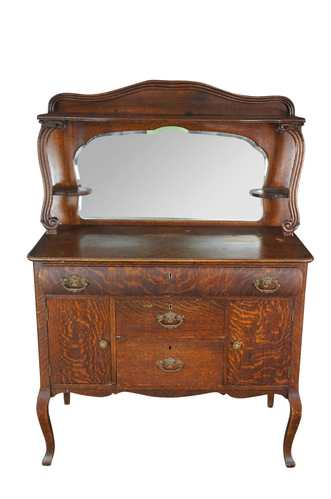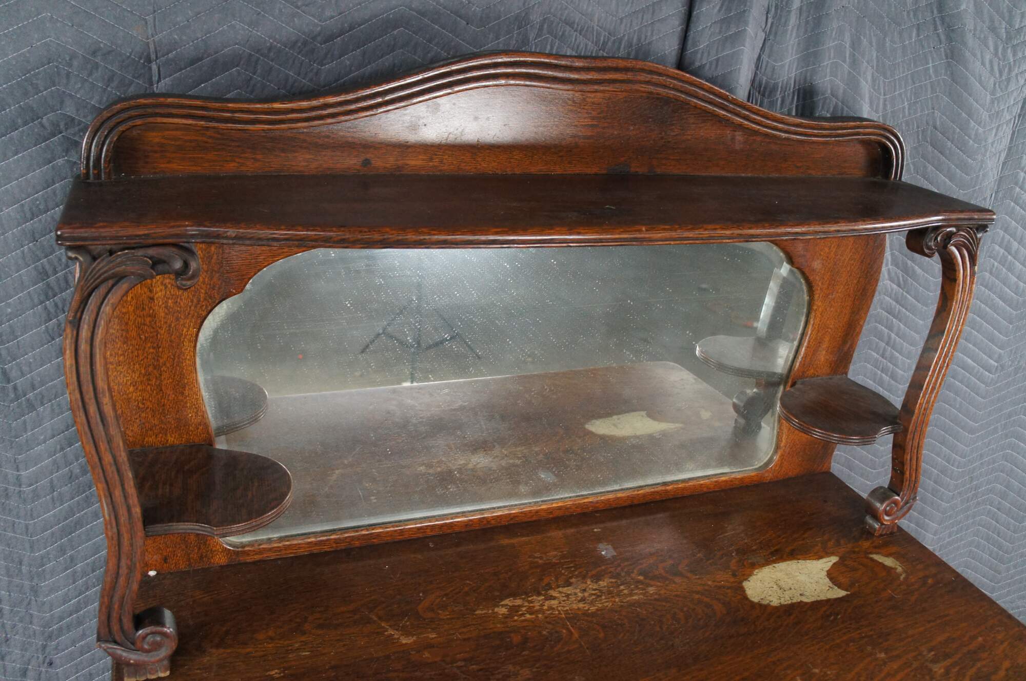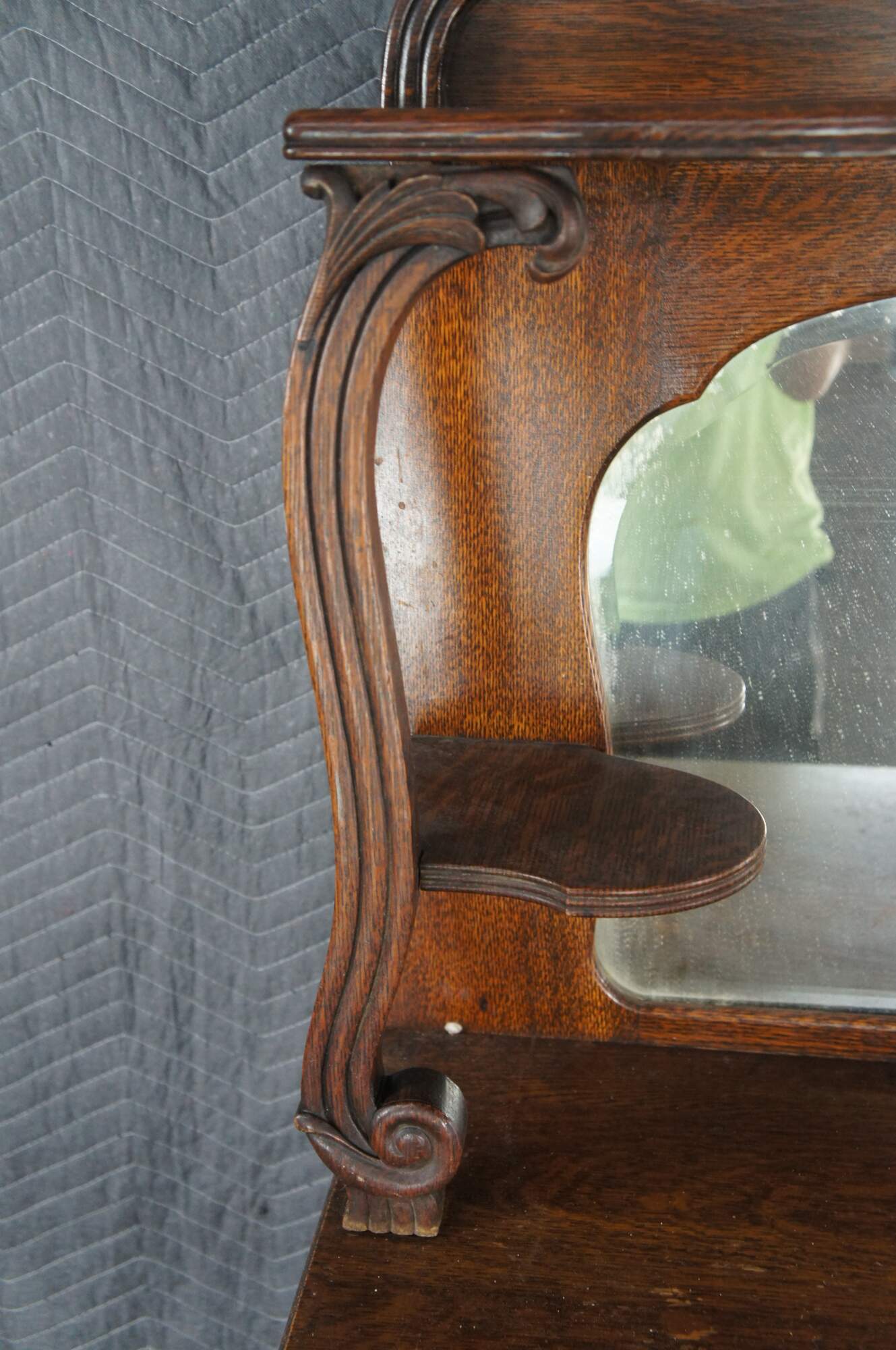 Antique American Victorian Tiger Oak Sideboard Buffet & Hutch Barback Mirror 63"