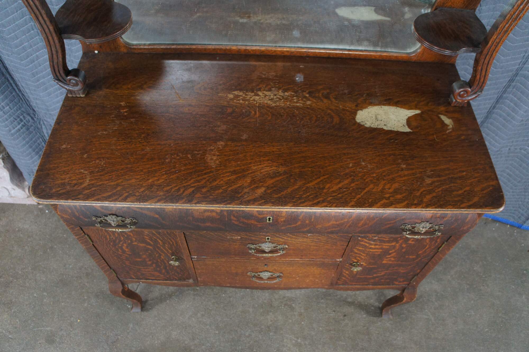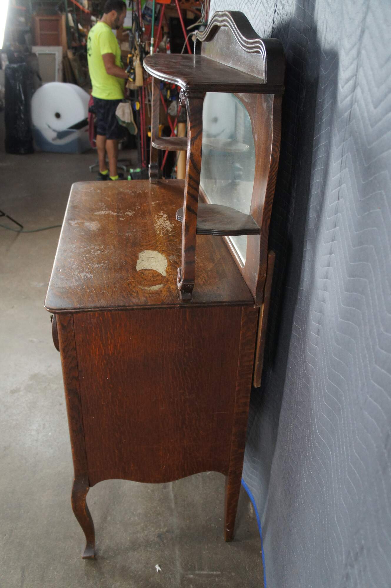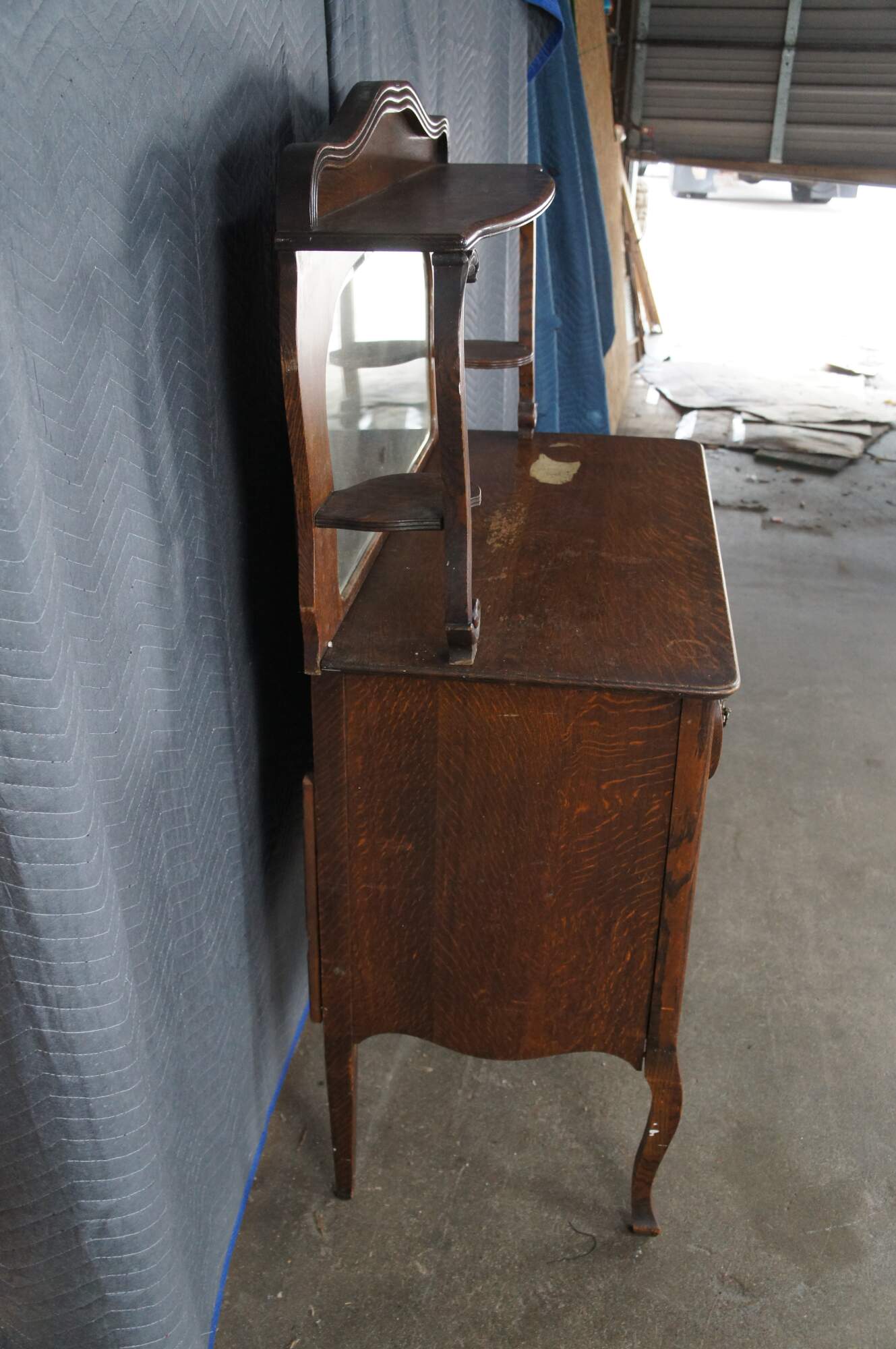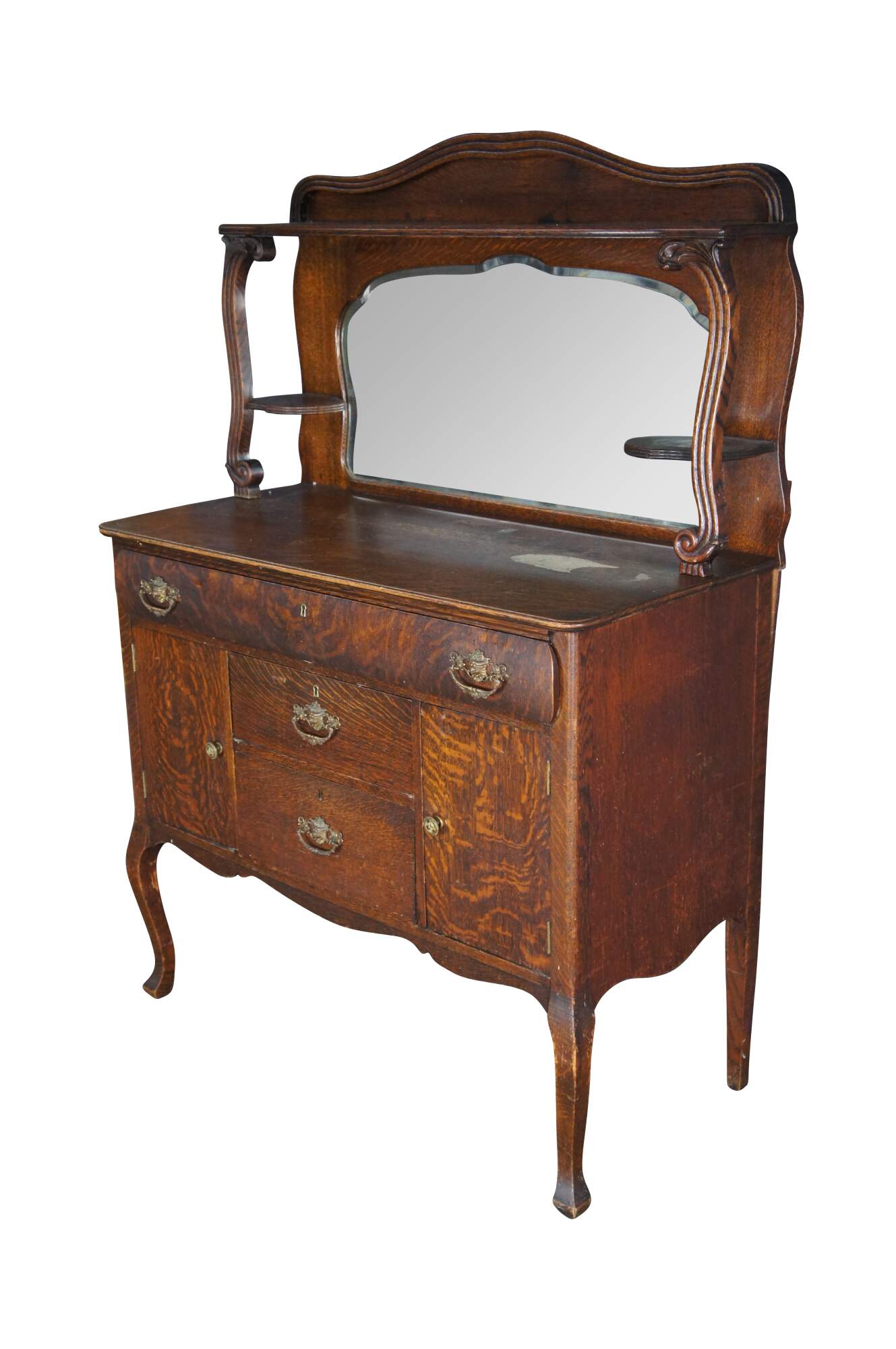 Antique American Victorian Tiger Oak Sideboard Buffet & Hutch Barback Mirror 63"