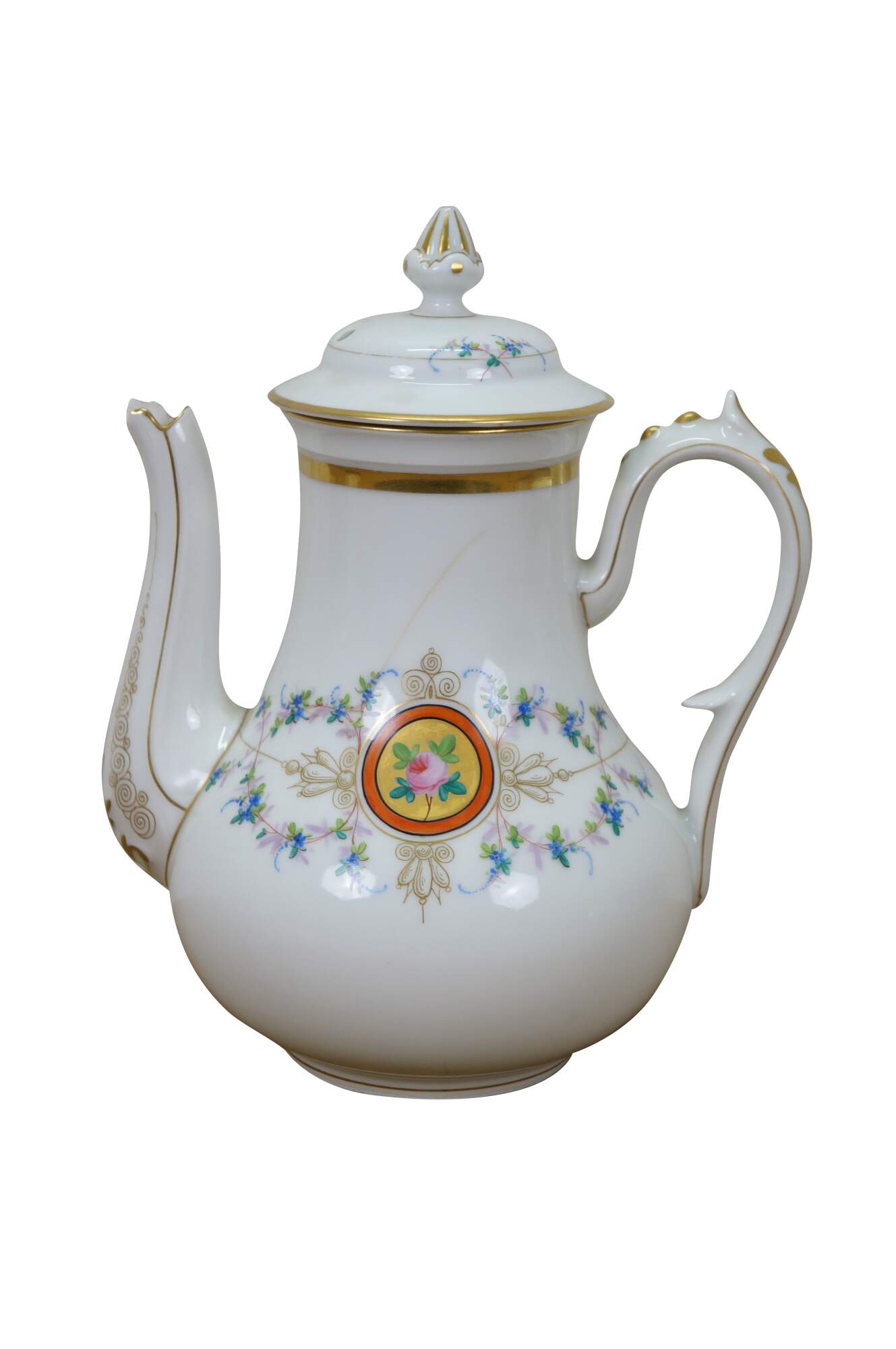 Wear to decoration; some staining; hairline crack/chipped spout on teapot