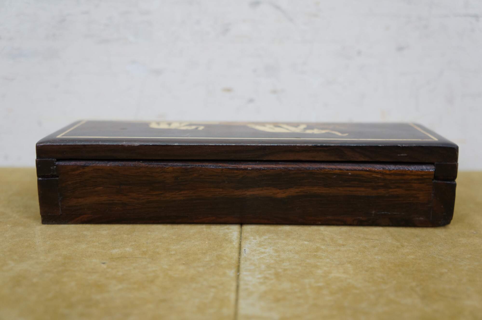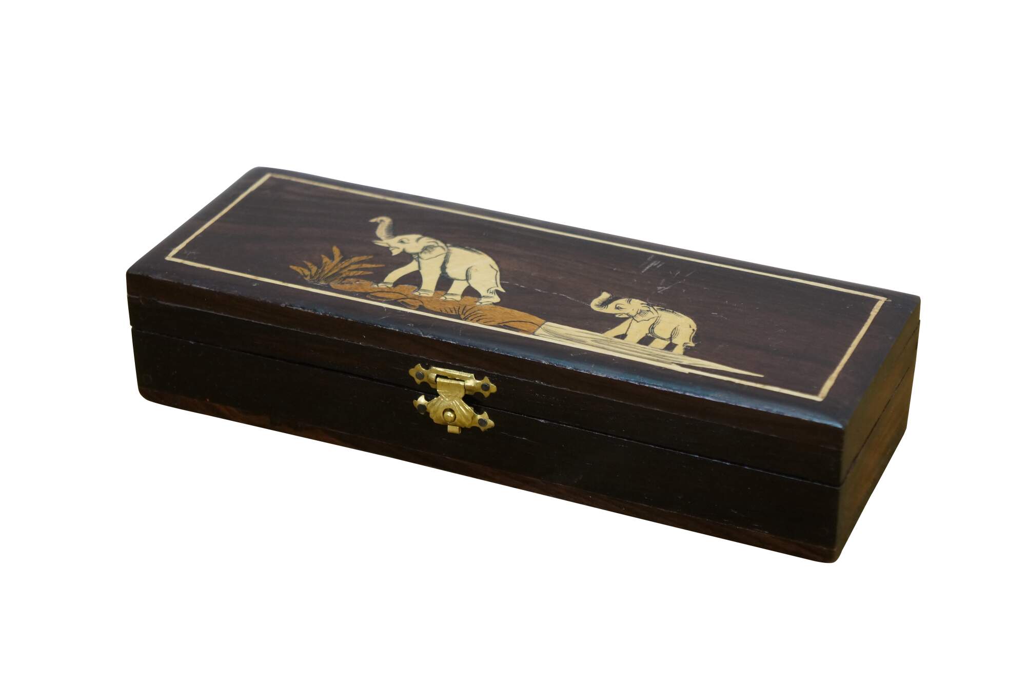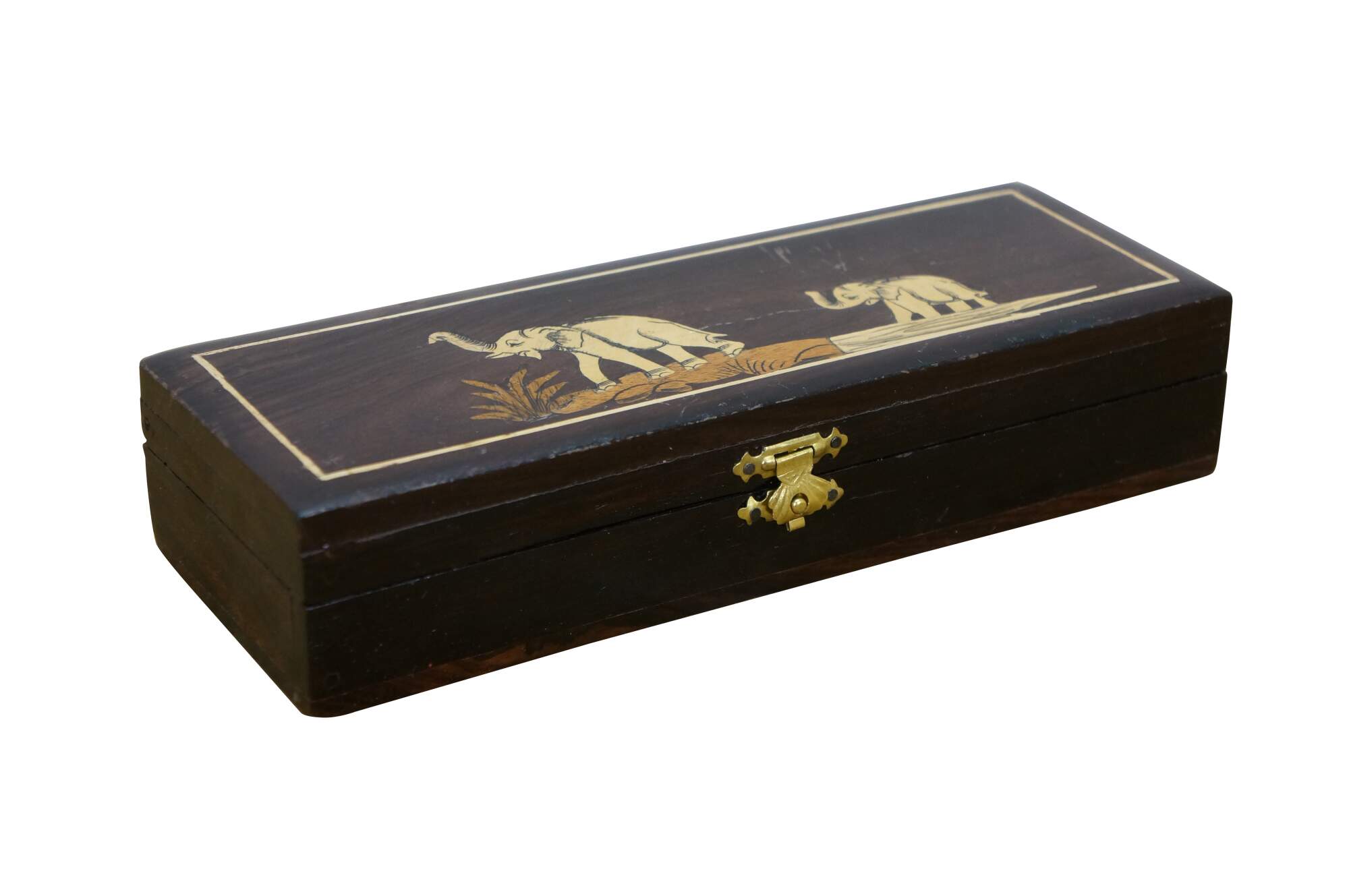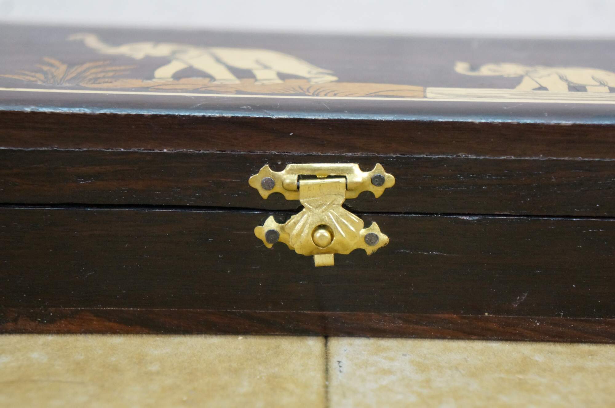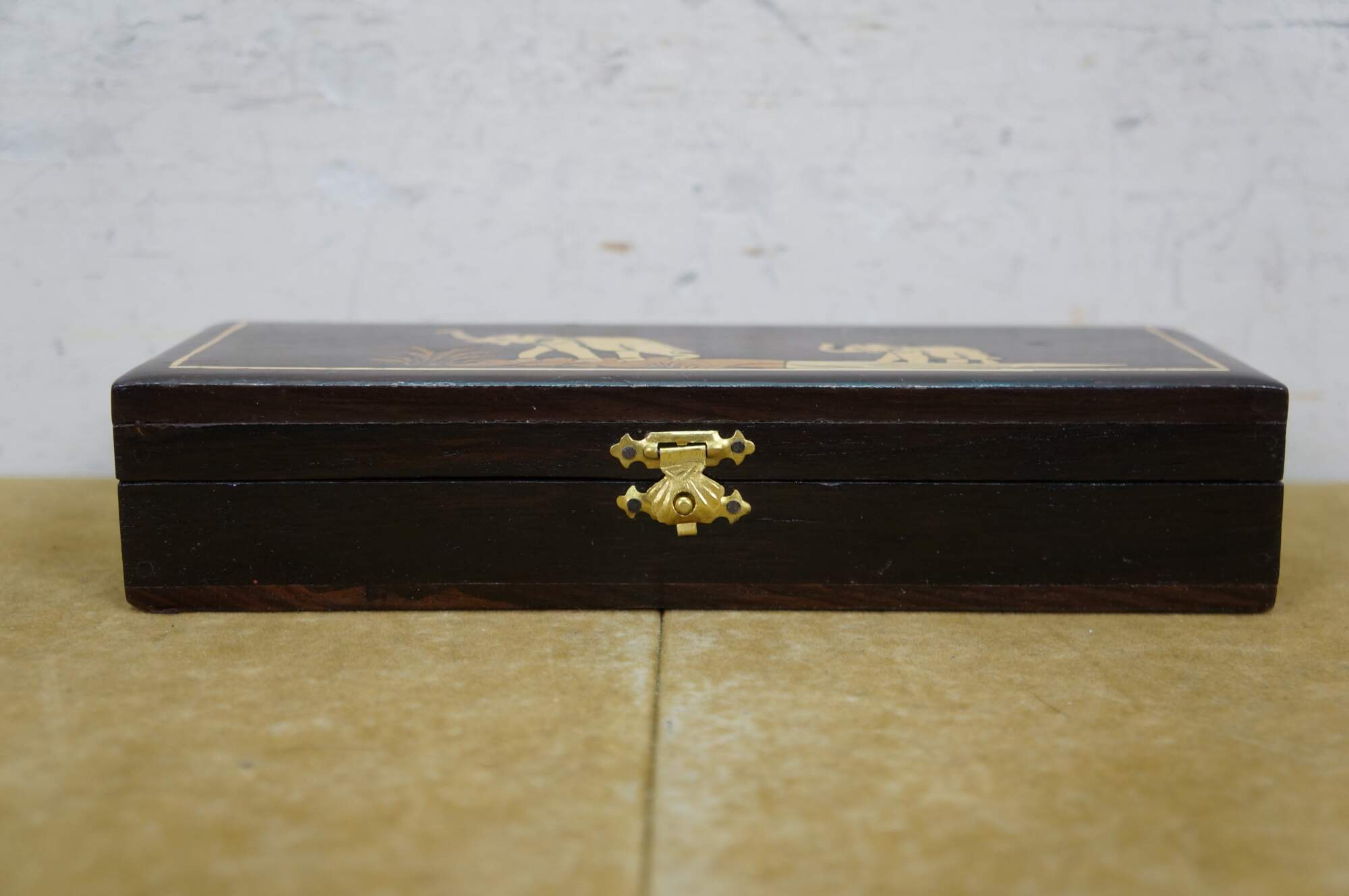 Vintage Rosewood Elephant Inlay Jewelry Trinket Keepsake Storage Box.