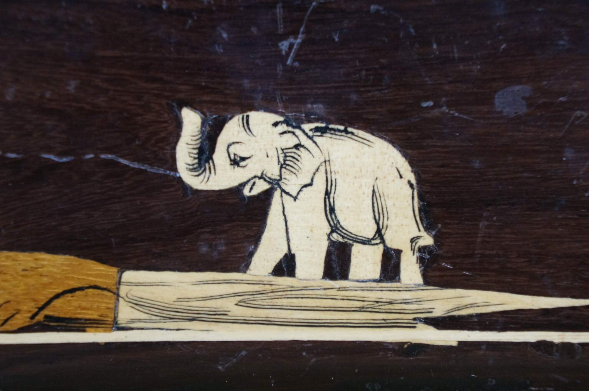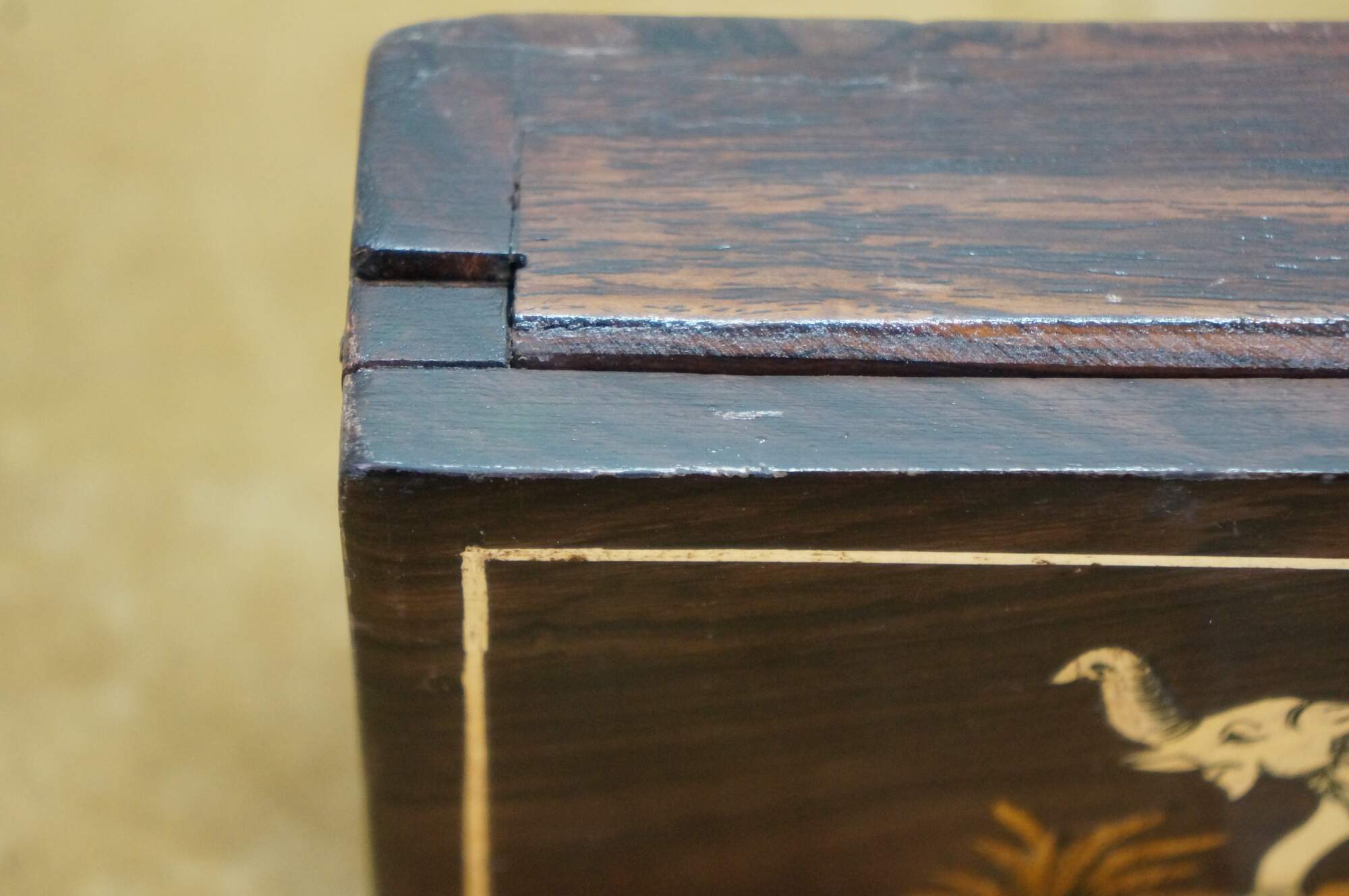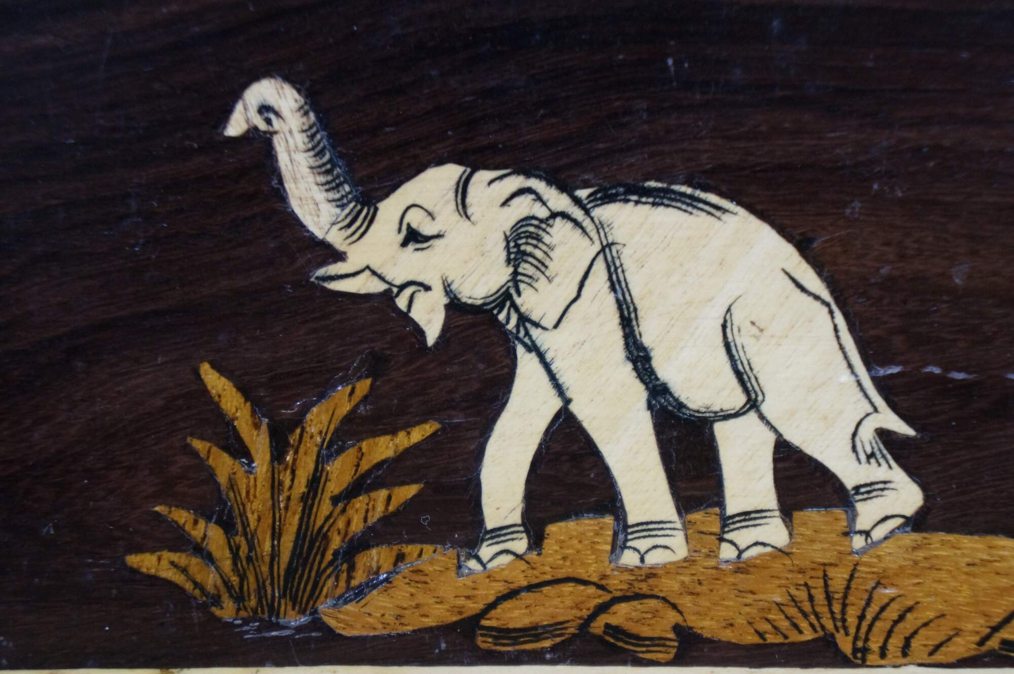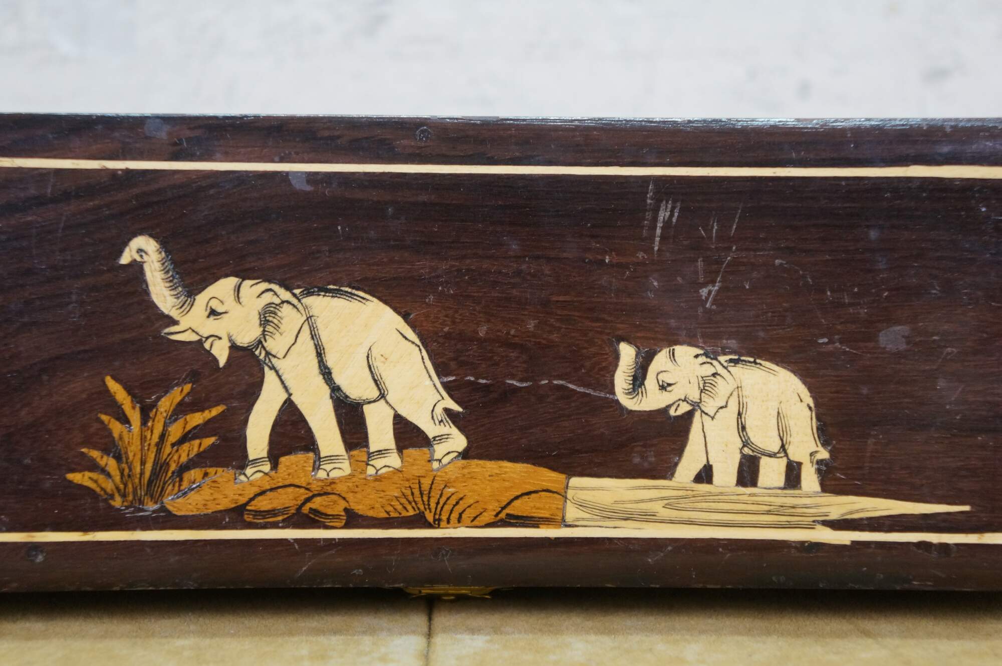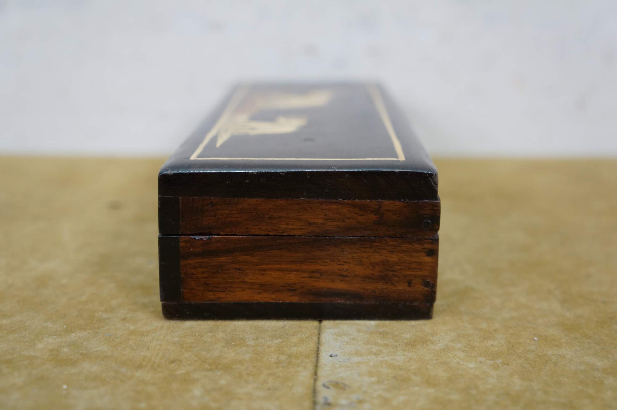 Vintage Rosewood Elephant Inlay Jewelry Trinket Keepsake Storage Box.