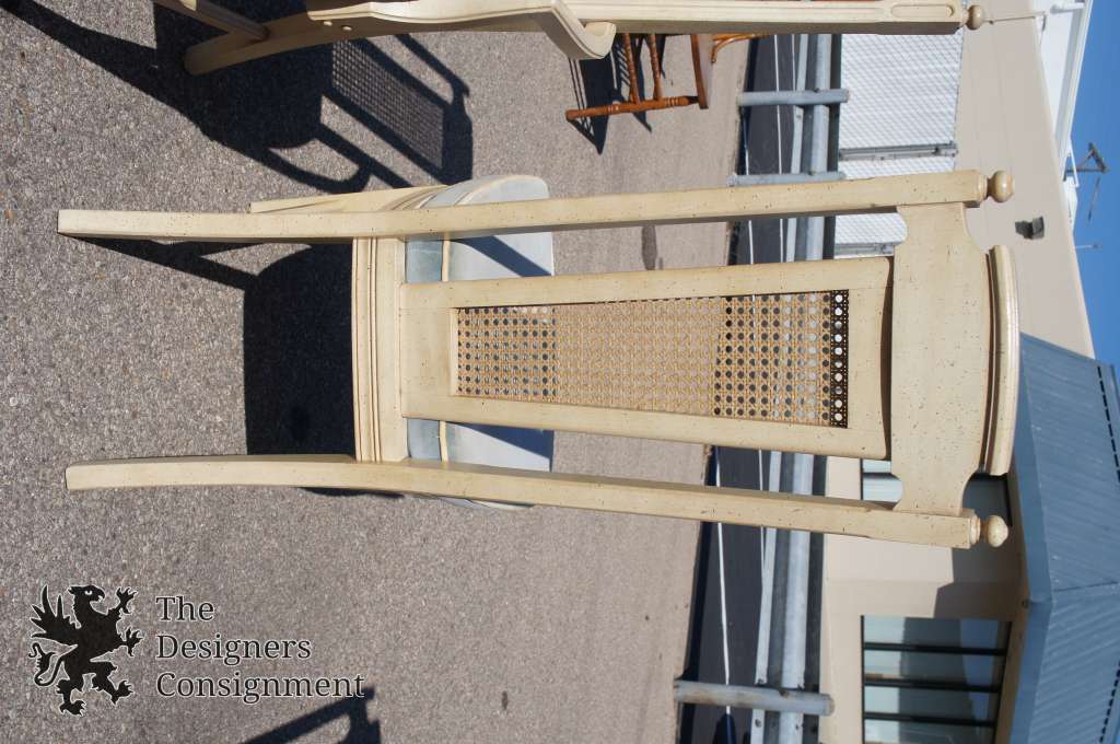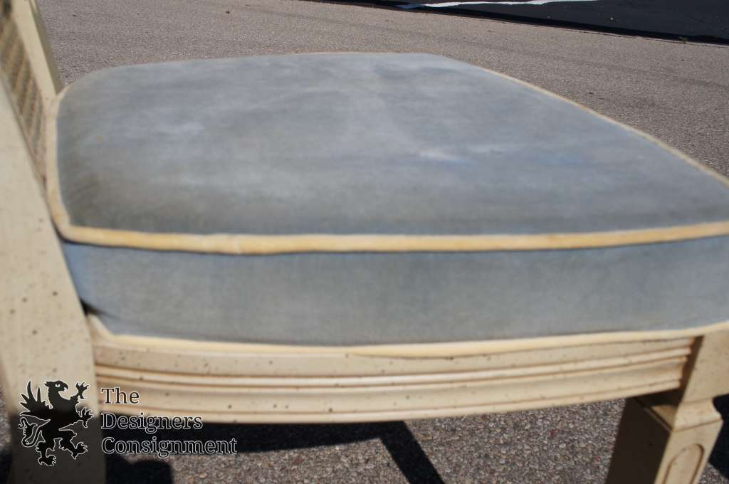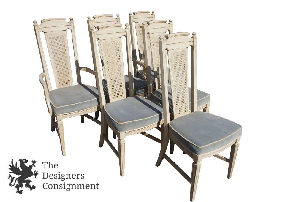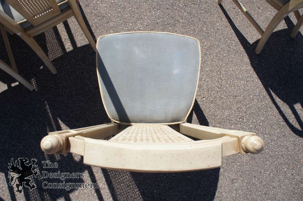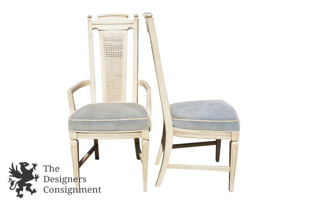 2 Vintage Mid Century Stanley Furniture Cane Back Dining Chairs Upholstered Blue