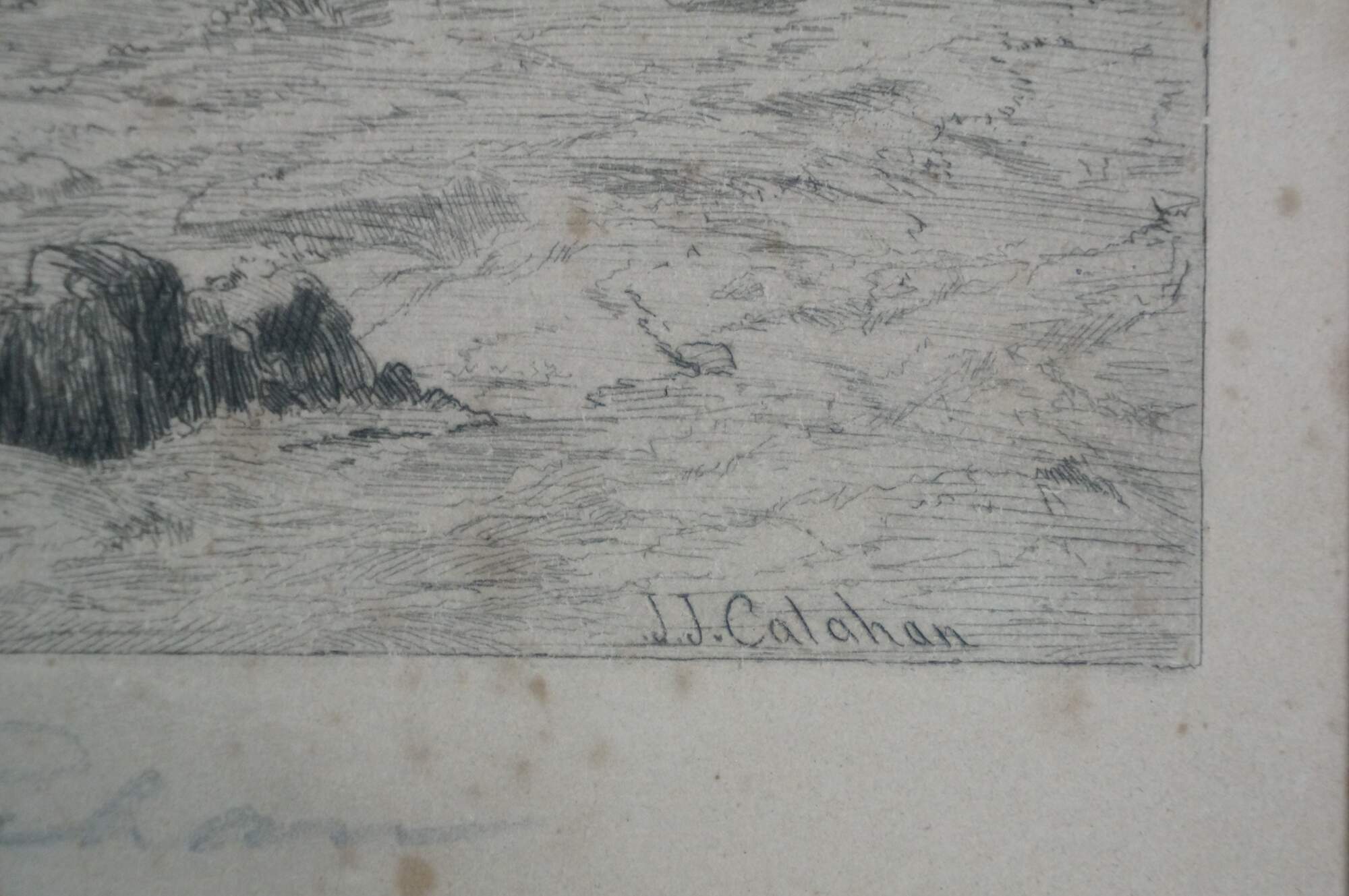 "James J. Calahan - American etcher, 1841–1910 - Calahan produced original etchings of landscape subjects and prints based on famous paintings. Born in Newport, Rhode Island, Calahan exhibited at the New York Etching Club, the Salmagundi Club, and the Boston Art Club in the 1880s and early 1890s. He trained etcher Charles Mielatz." (Delaware Art Museum)