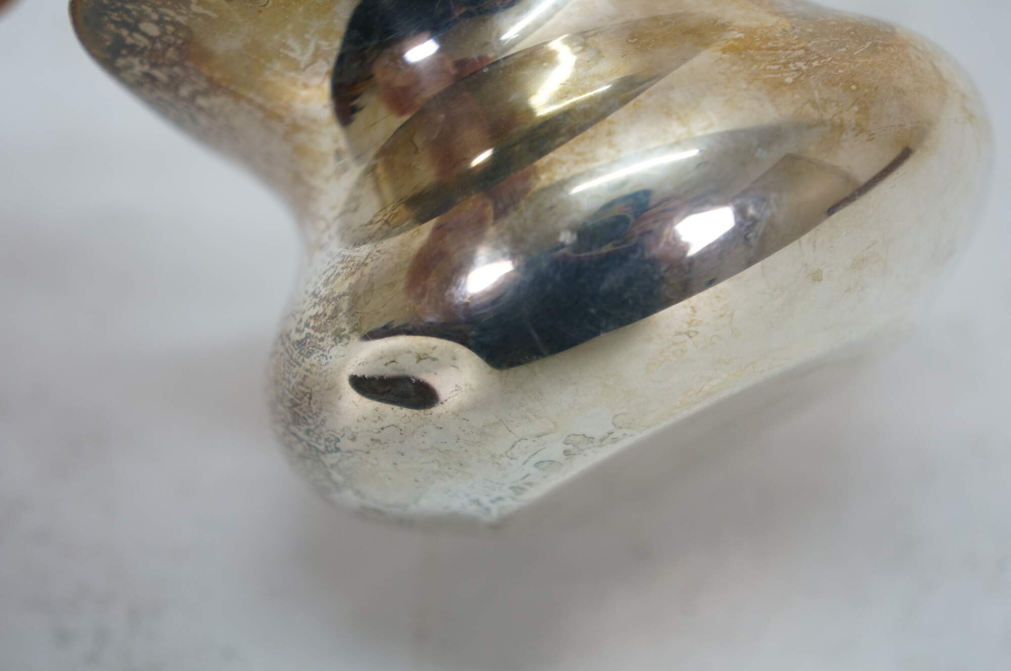 Vintage 20th century Poole sterling silver gravy / sauce boat and underplate. Georgian style with squat round shape and scrolling handle; underplate trimmed with rope twist edge.
