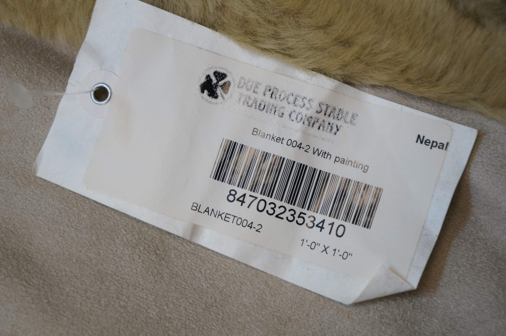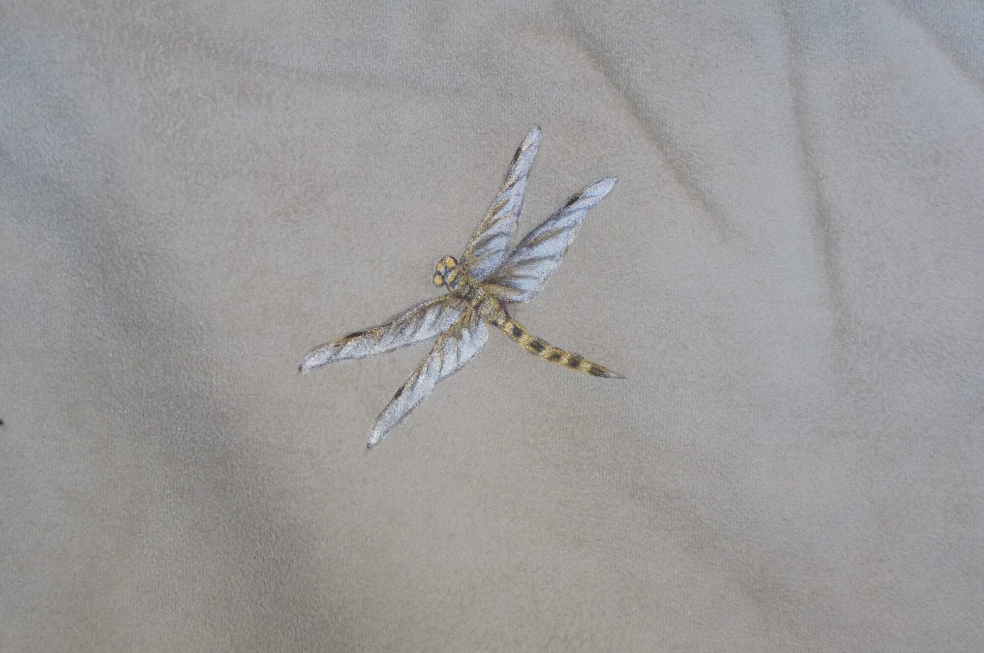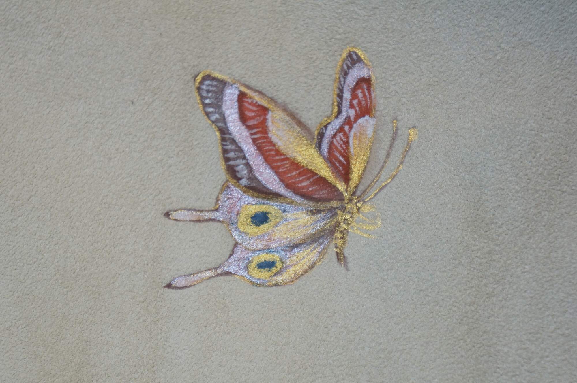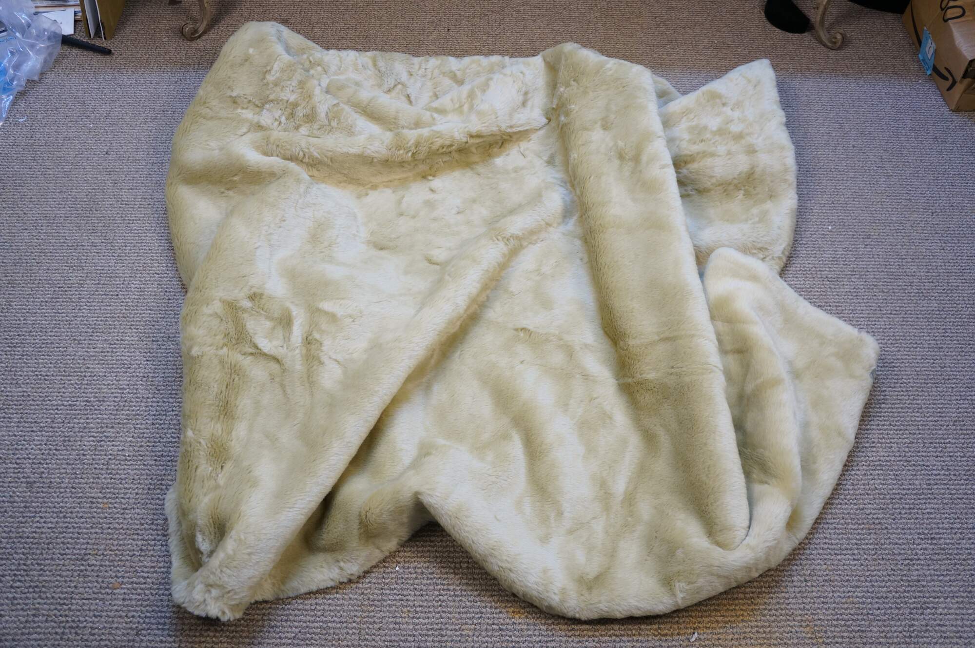6 Available - Luxurious double sided faux fur and suede throw blanket, golden in color, hand painted with sprigs of flowers and butterflies.