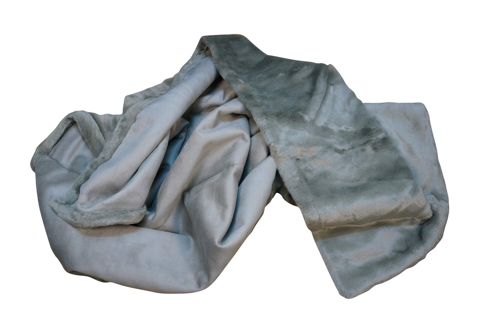 6 Available - Luxurious double sided faux fur and suede throw blanket, gray-green / light sage in color.
