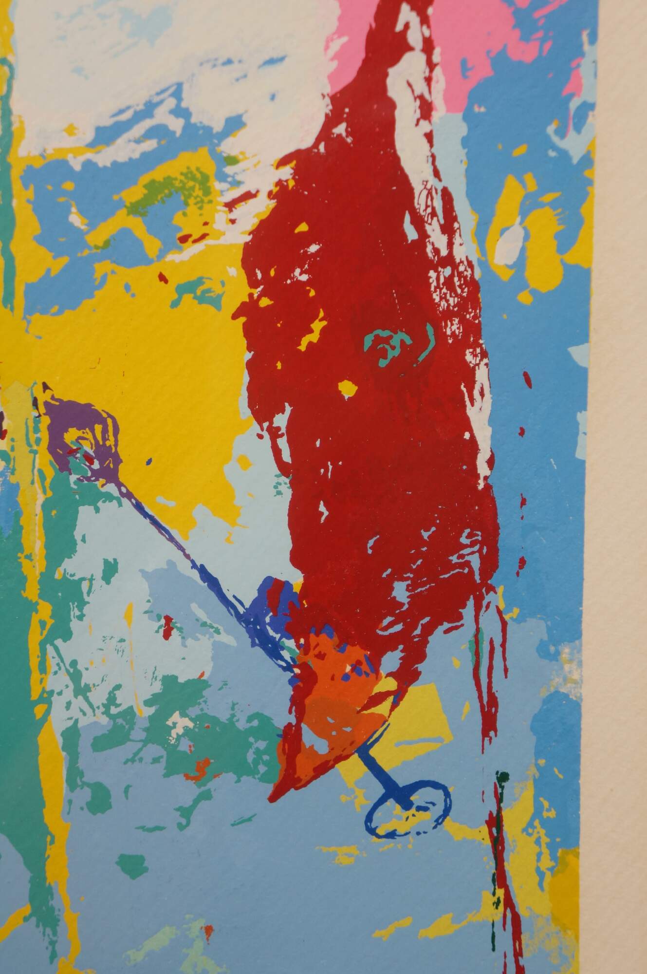 "LeRoy Neiman (1921-2012) was born in St. Paul, Minnesota, and studied at the Art Institute of Chicago, De Paul University, and the University of Illinois. He taught at the Art Institute of Chicago's school for ten years. Neiman moved to New York City in 1963 when he had his first one-man show at the Hammer Gallery. Since then he has continued to portray the people and events of the world he knows best, or which intrigue him most. His best-known works are sports scenes, a reflection, he believes, of the fact that sports are universally a dominant force. He was the official artist for ABC-TV at the Olympic Games in 1972 and 1976, and at the Winter Olympics of 1980. Neiman's work has been exhibited in galleries and museums throughout the world, including the Smithsonian Institution in Washington, D.C., and the Hermitage in Leningrad.