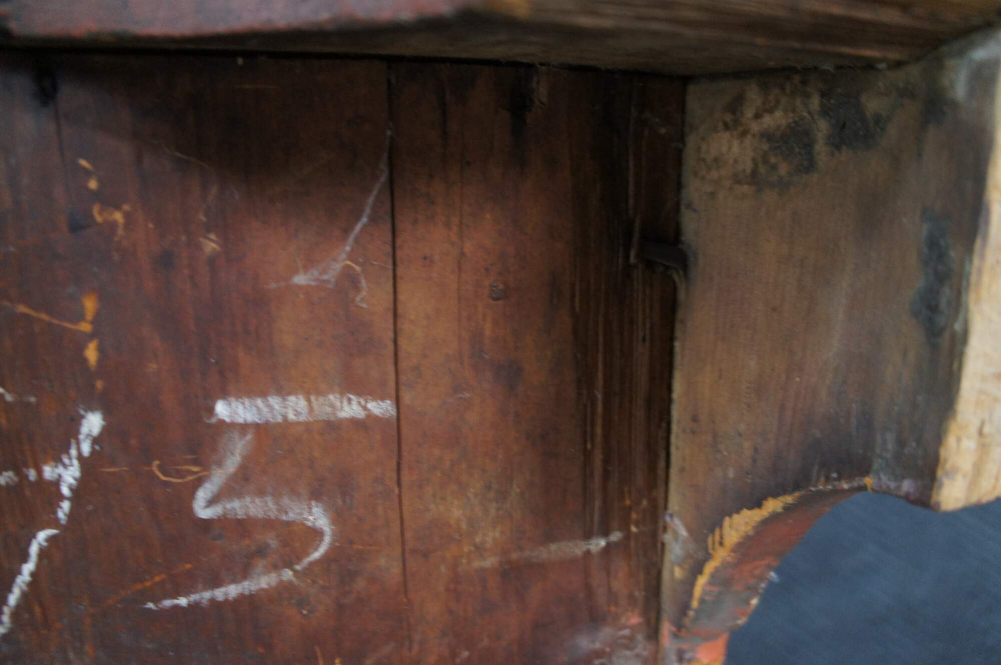 Structurally solid, wear and distressing commensurate with age and use, marking, scuffing, splitting, paint loss, fading, no key, lock not tested.