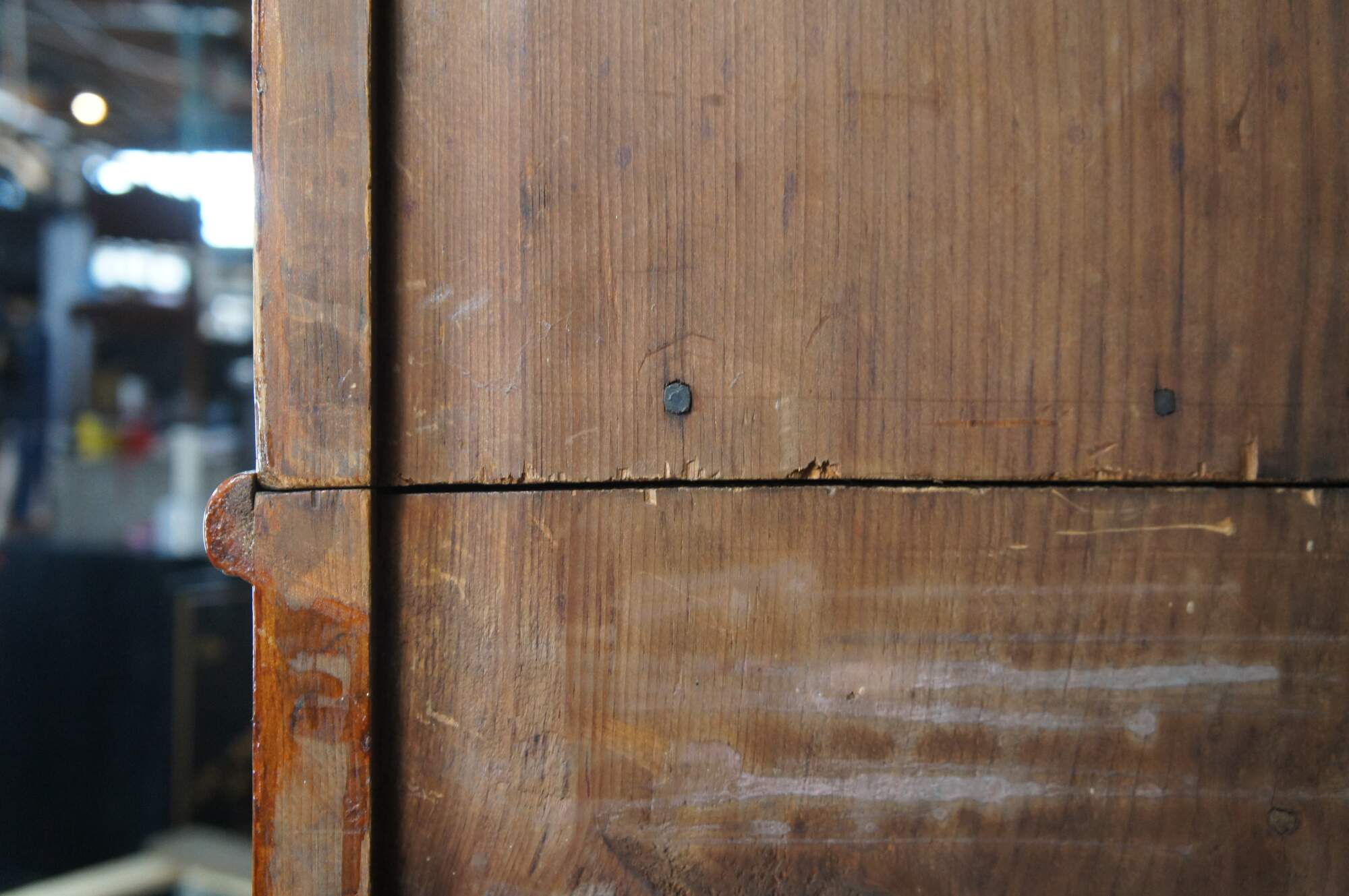 Structurally solid, wear and distressing from age and use, marking, scuffing, paint loss, staining, nails in upper cabinet from previous owners use.