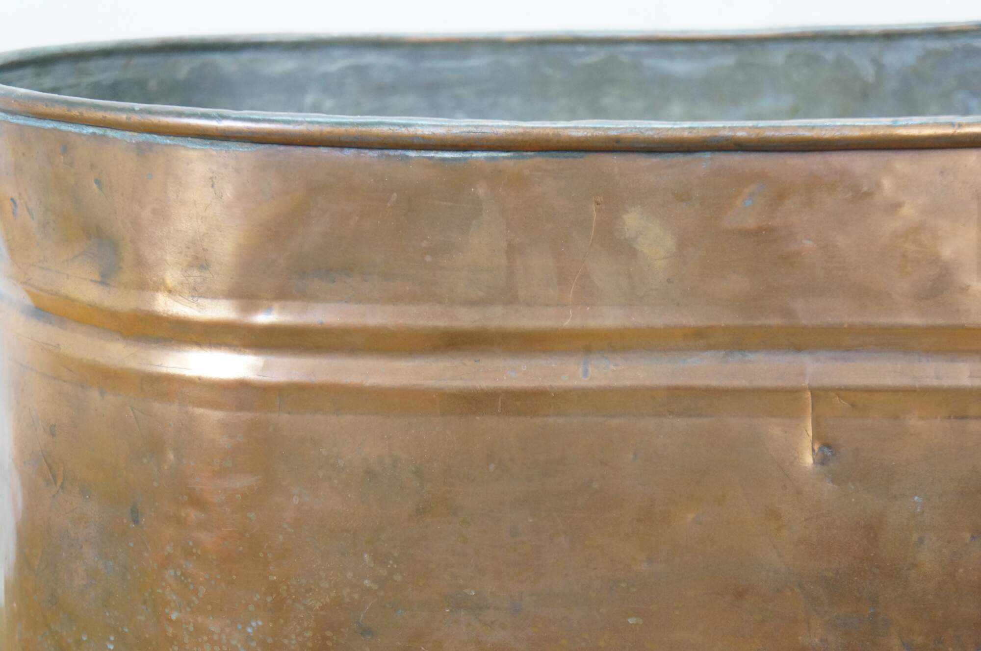 Circa early 20th century oval shaped galvanized copper boiler / wash tub with rotating iron handles.