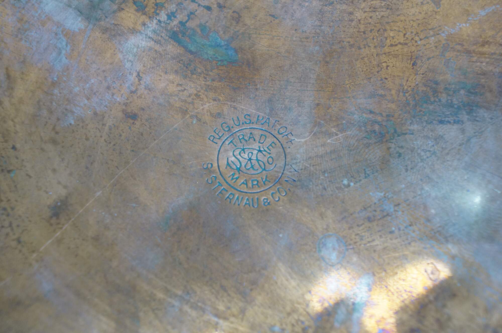 "S. Sternau & Co. of Brooklyn, New York, was a renowned New York-based company founded in 1866 by Samuel Sternau. S. Sternau & Co. was a pioneer in producing high-quality metalware, including chafing dishes, tea sets, and coffee pots. The company's products were highly sought after, and their coffee machines, in particular, were a symbol of luxury and sophistication in households across America. The company discovered what became known as Sterno - a brand of jellied denatured alcohol sold in and meant to be burned directly in its can. Discovered around 1900 as a byproduct of the nitrocellulose manufacturing process, Sterno is made from ethanol denatured by adding methanol, water, and an amphoteric oxide gelling agent, plus, in recent decades, a safety dye that gives it a characteristic pink color. The methanol is added to denature the product, which is intended to make it too toxic for consumption. Designed to be odorless, a 7-ounce (200 g) can will burn for up to two hours. In 1918, it promoted its Sterno Stove as being a perfect gift for a soldier going overseas." (Wikipedia / Asianstar Machining / Period Bath Supply Co)