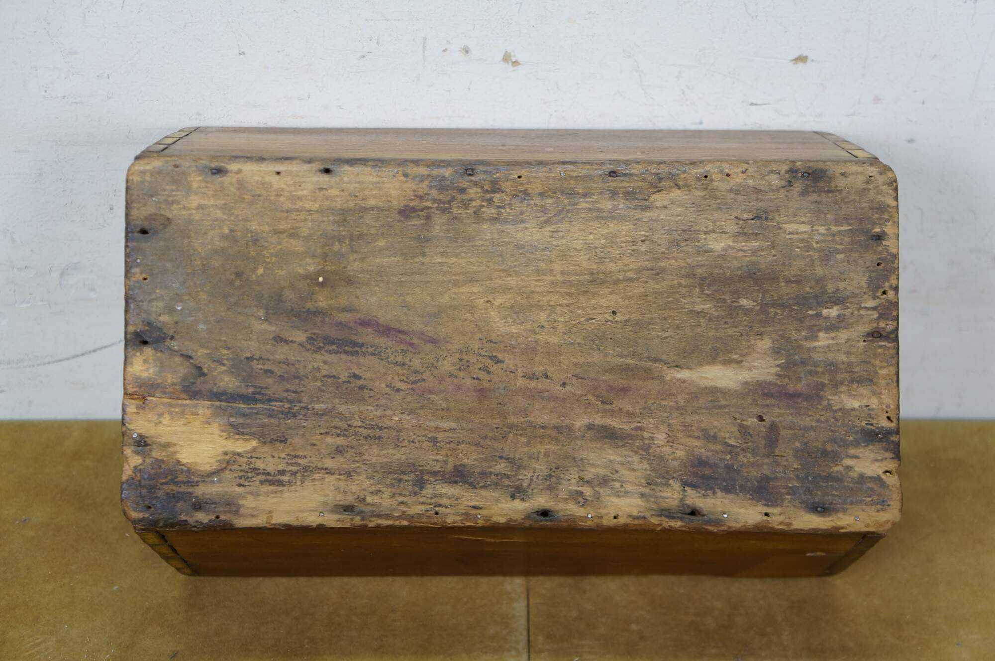 Primitive antique oak divided cutlery / knife tray / box / trug with raised carved center divider and hand cut dovetailed corners.