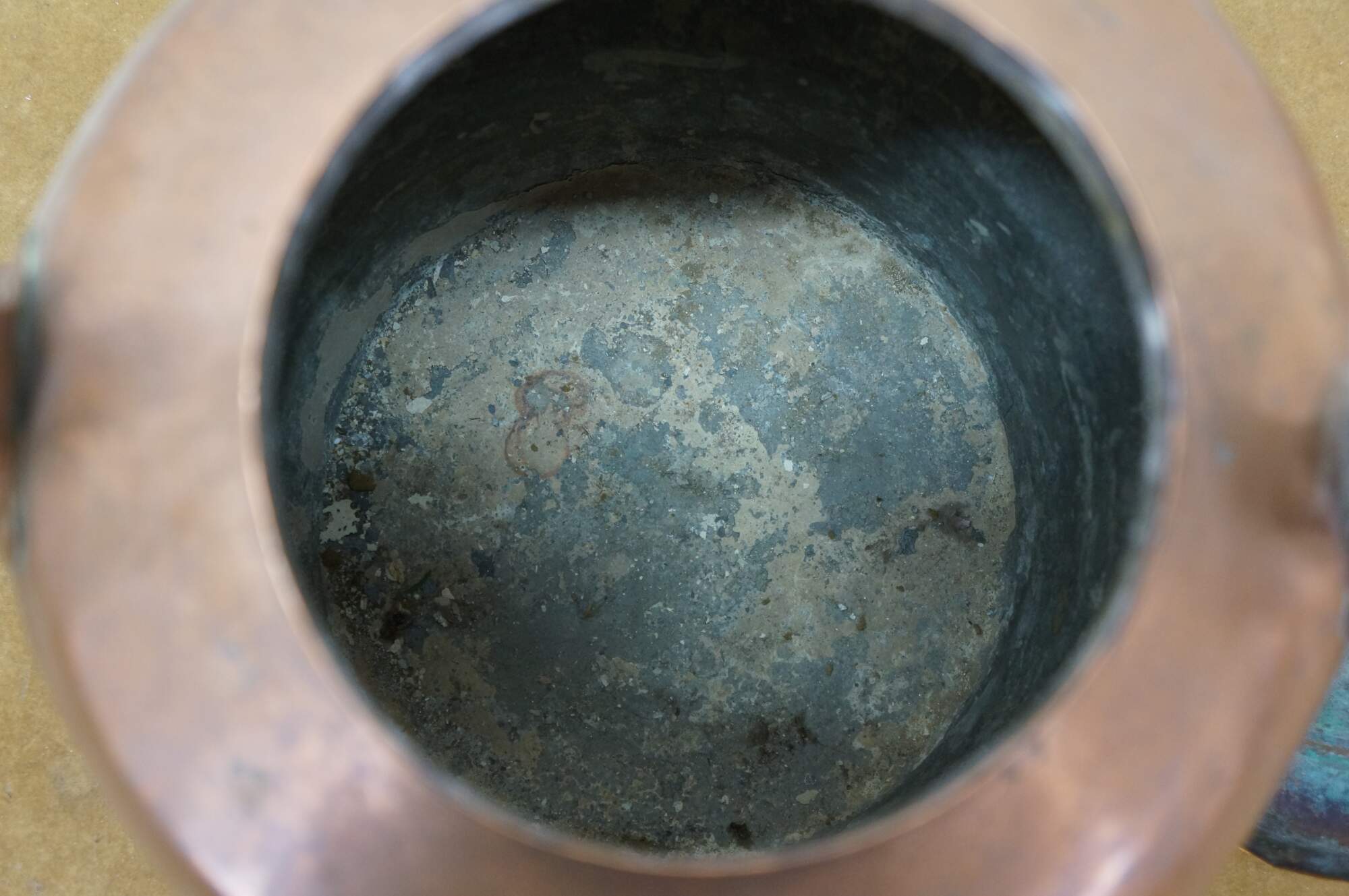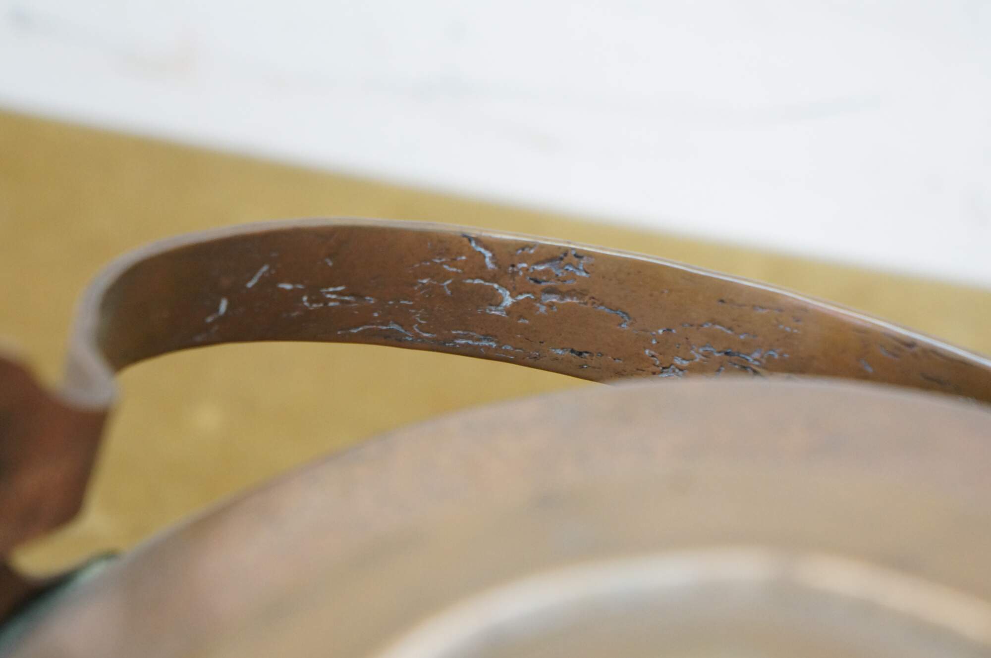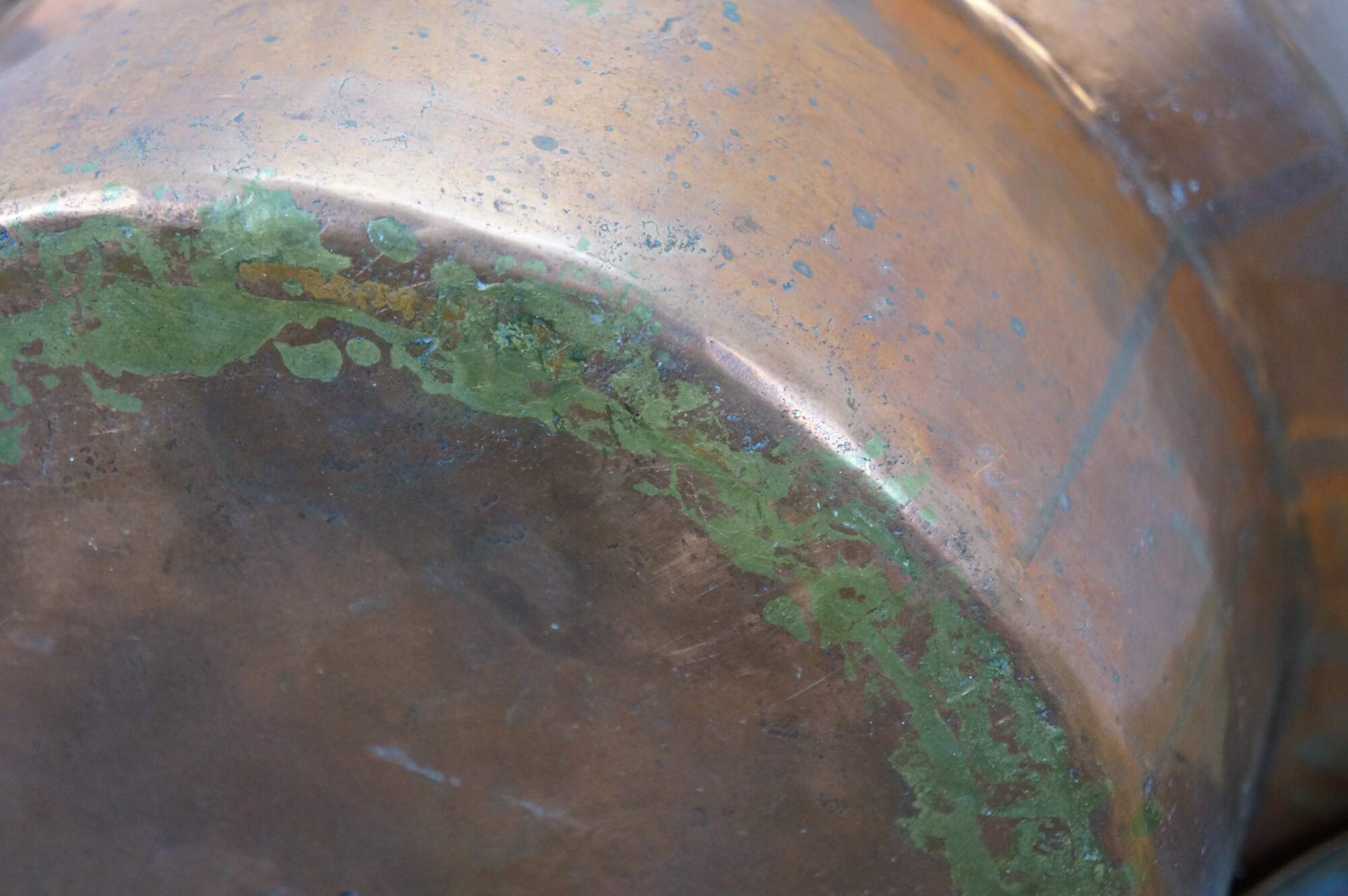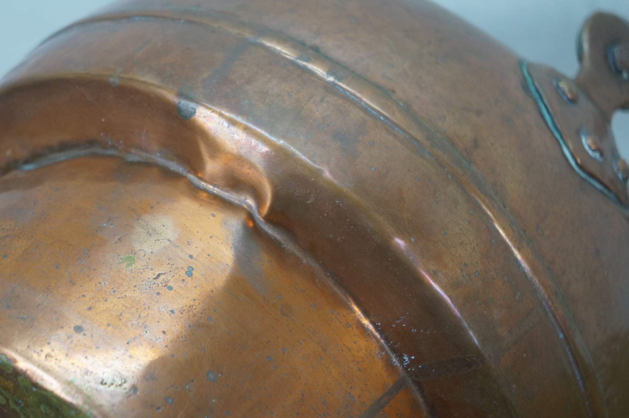 Wear and distressing from age, oxidation, tarnish, dents.