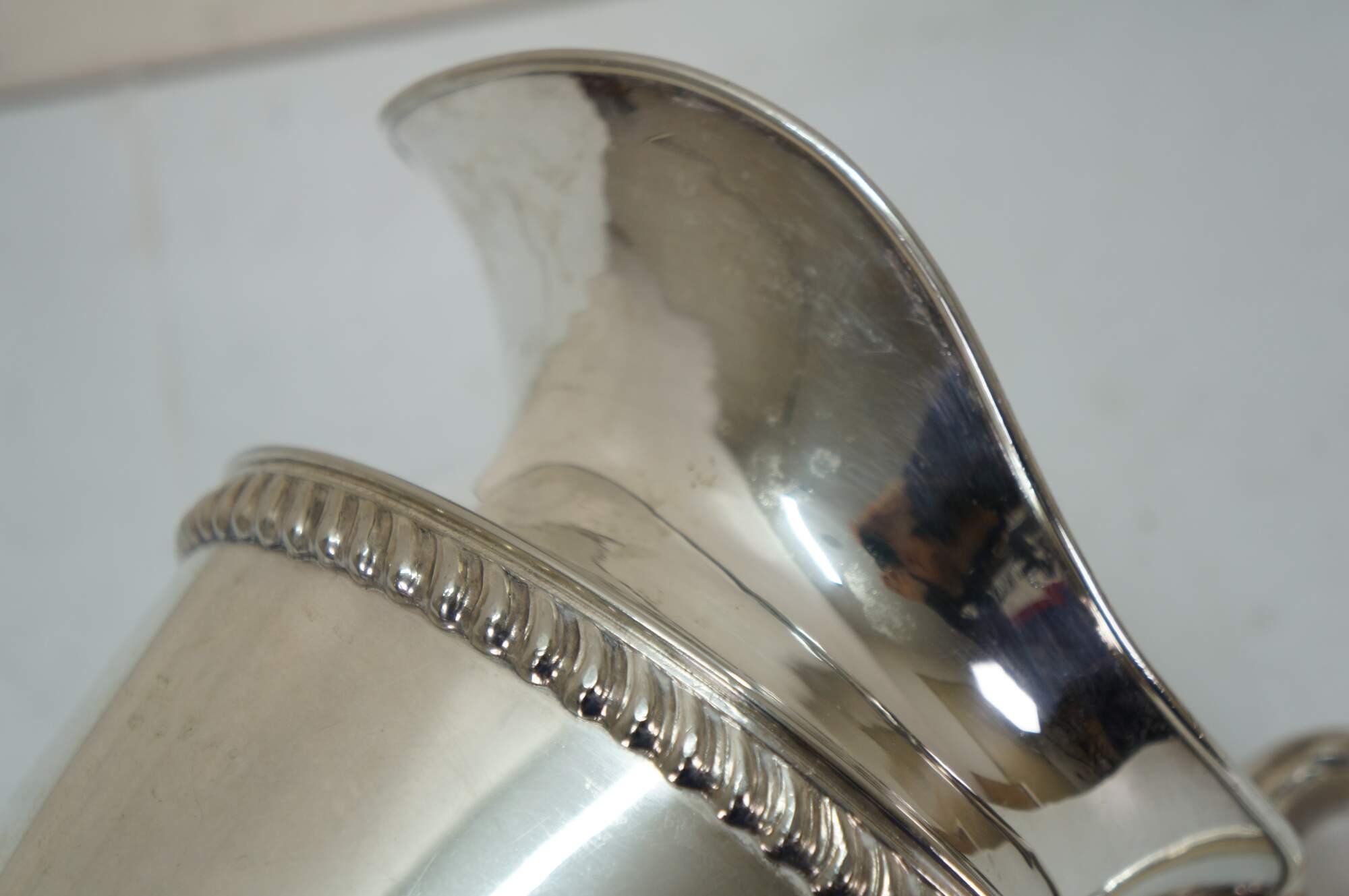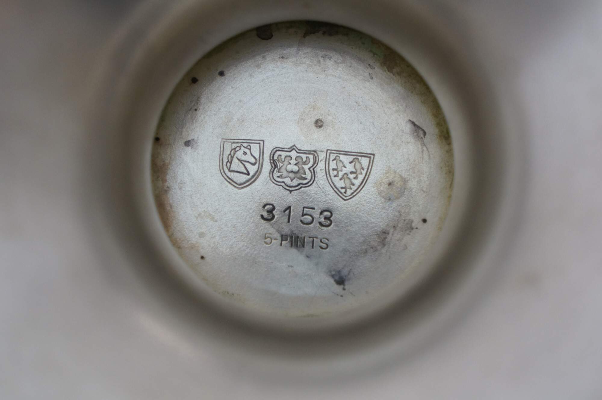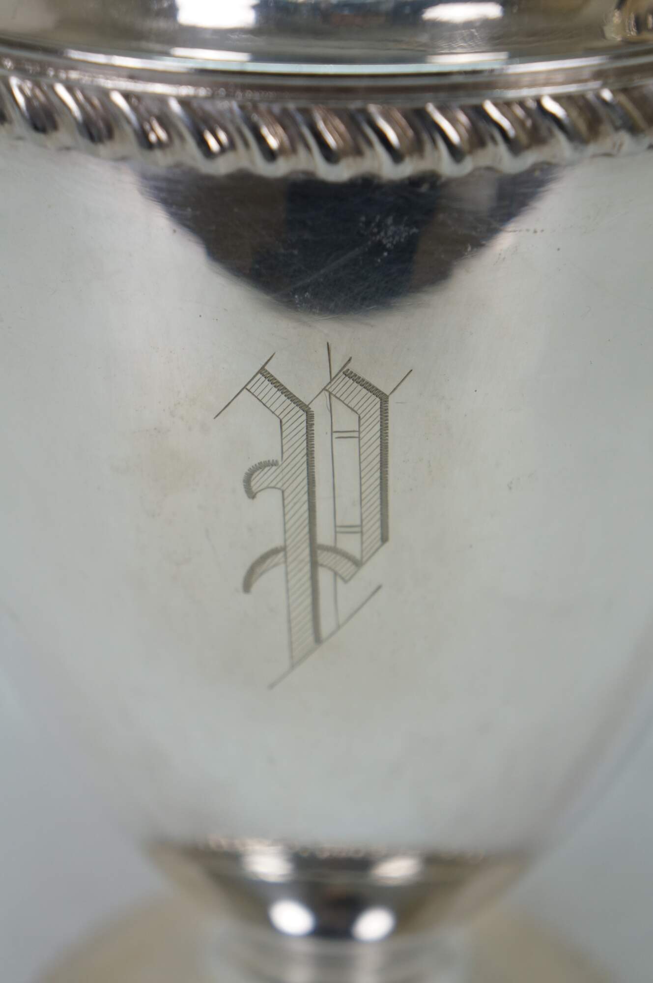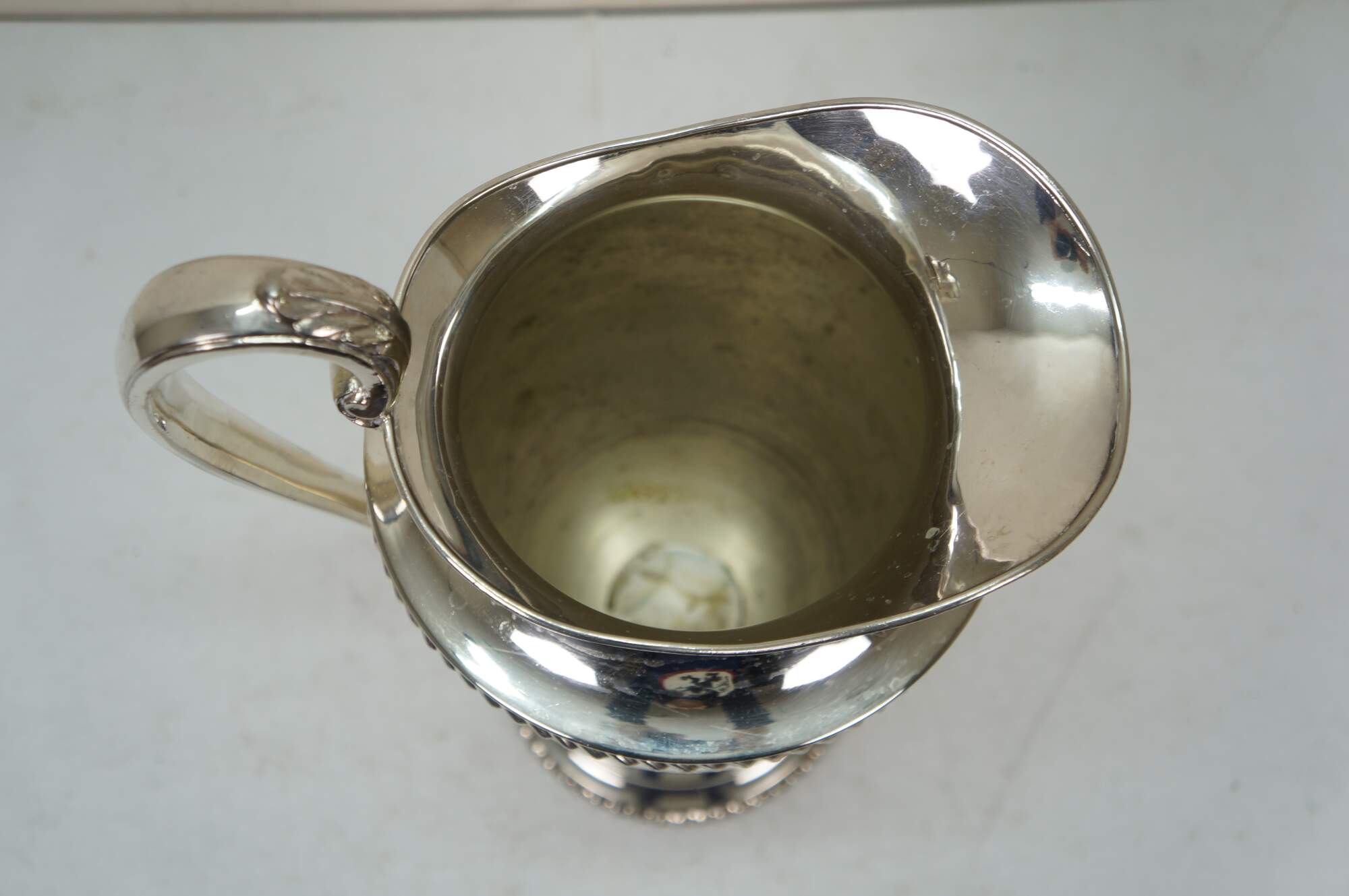 Mid 20th century Friedman Silver Company number 3153 silverplated water pitcher / jug. 5 Pint Capacity. Neoclassical trophy urn shape with rope twist accents and leaf on the handle. Monogrammed with the initial P.