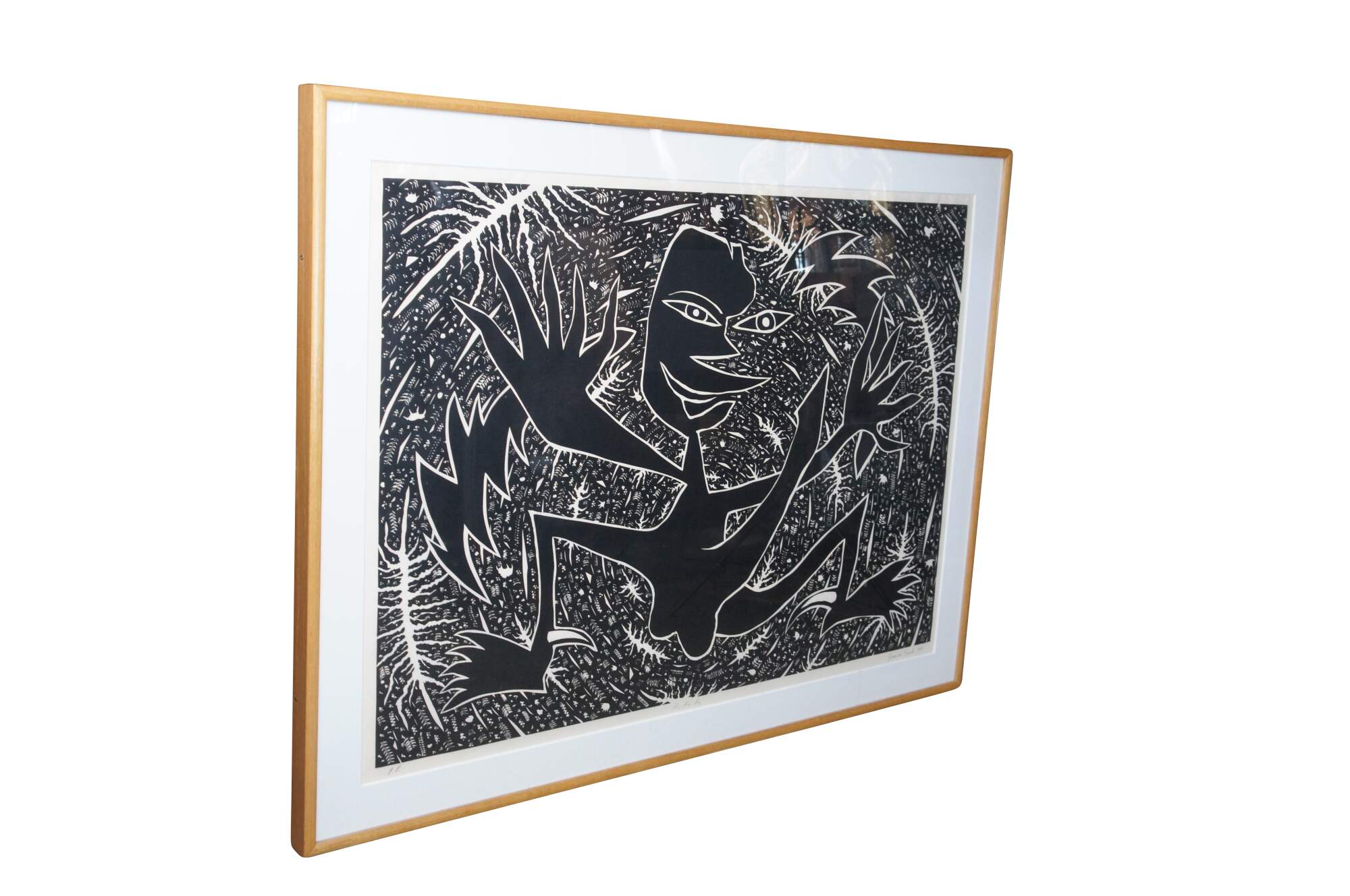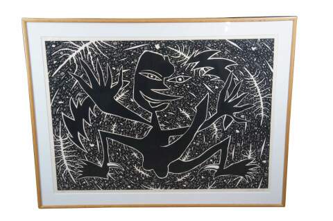 Lino cut print, Hand Signed Printers Proof in Black & White. Professionally framed.