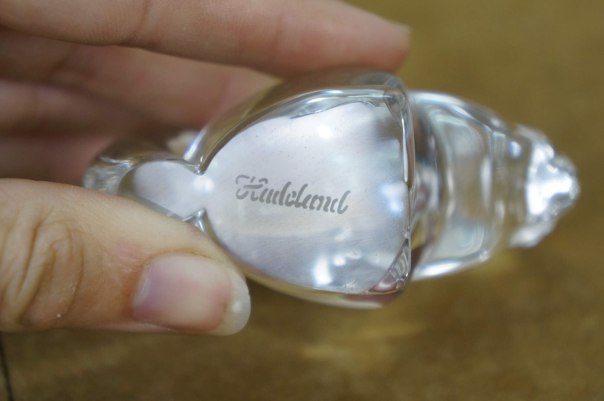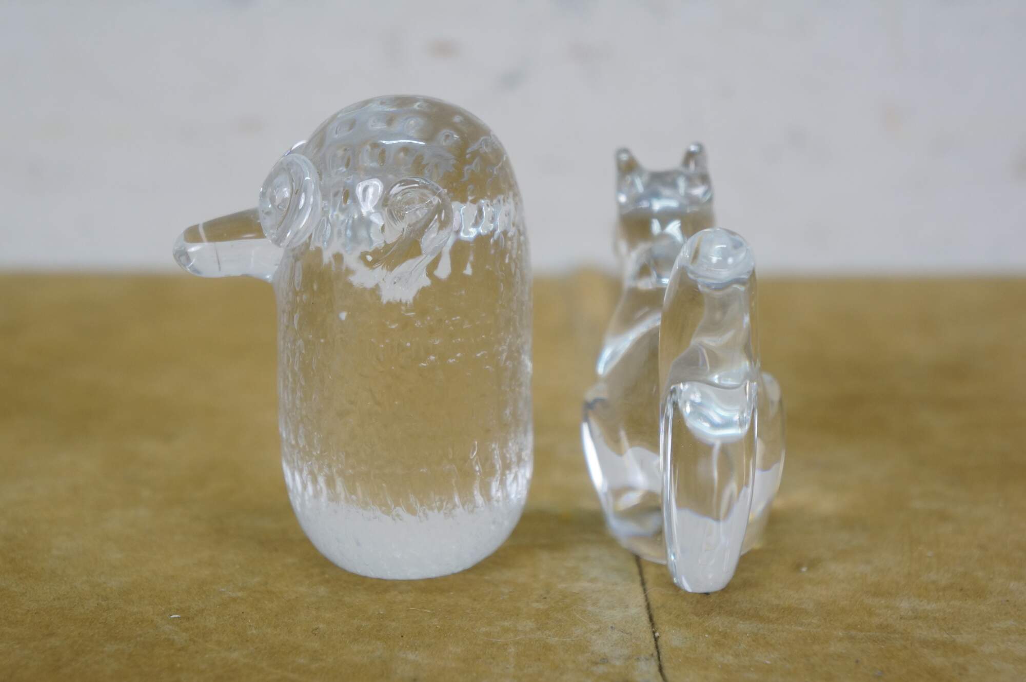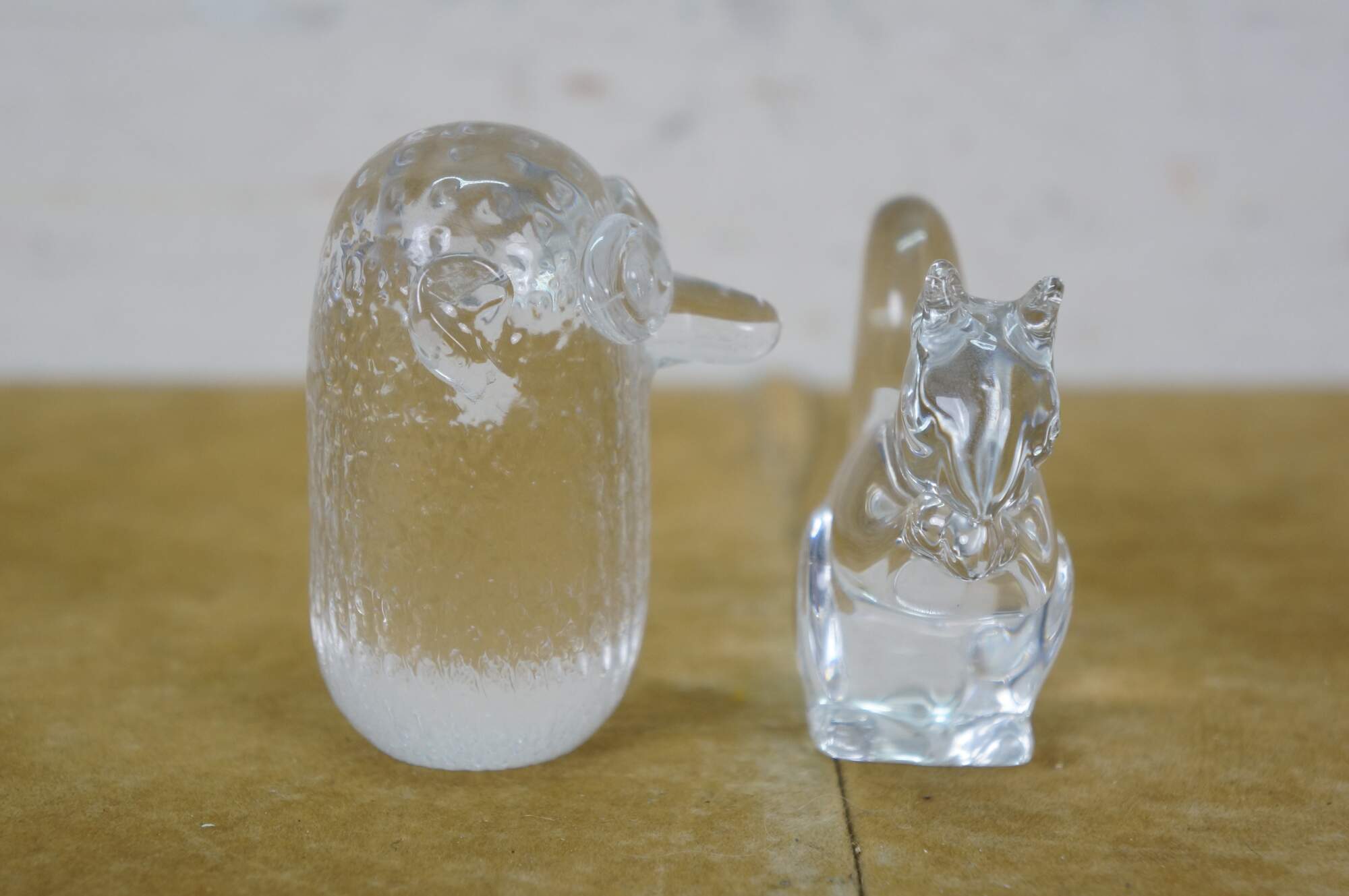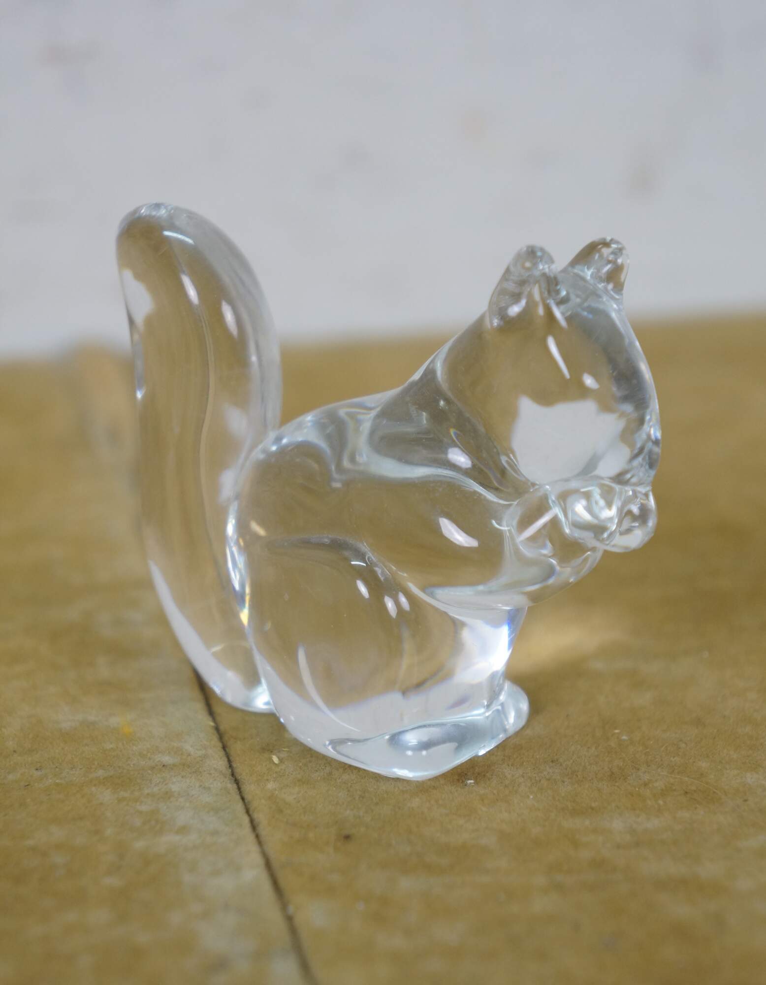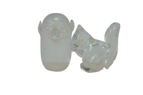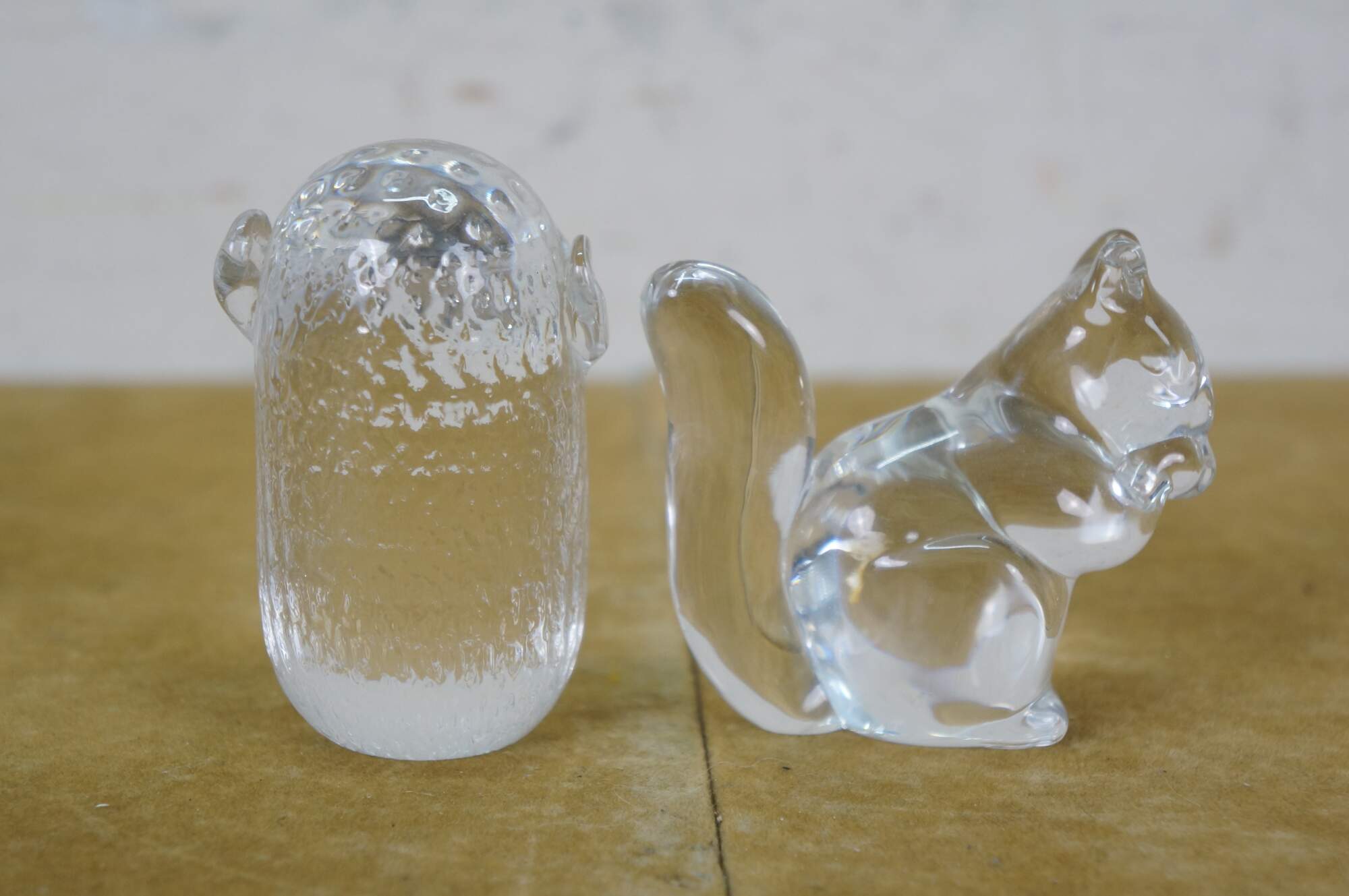 Pair of late 20th century glass figurines by Hadeland Glassverk - the Forgetful Troll and a squirrel with a nut.