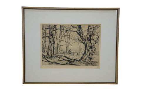 "Walter Ronald Locke (1883 - 1949) was an etcher best known for his landscapes. He resided in Florida and many of his surviving works are of Florida scenes, although he also made prints of places elsewhere in the United States. Locke was born in Winchester, Massachusetts, and studied art under Louis Kronberg and Alfred Hutty. During his lifetime, he exhibited at the Library of Congress and Society of American Etchers. He was also affiliated with Associated American Artists, an organization founded to produce and market fine art prints nationwide. The latter marketed his prints with a biography that noted "[h]is works are often the results of months of study, and of an almost impossible amount of long hard work, so that every least bit of foliage may be accurate and detailed." His works are in the collections of the Albright-Knox Art Gallery, Buffalo; Nelson-Atkins Museum of Art, Kansas City; Carnegie Museums, Pittsburgh; the Butler Institute of American Art, Youngstown; and the Yale University Art Gallery." (askART)