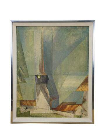 "LYONEL CHARLES ADRIAN FEININGER (1871–1956) An abstract modernist, Lyonel Charles Adrian Feininger was part of the German avant-garde of the early twentieth century and one of the early teachers at the Bauhaus in Weimar, Germany in 1919, founded by architect Walter Gropius. In 1921, he had a joint exhibition with Paul Klee at the Weimar Museum. With Cubist style and evocative color, he depicted modern life, especially factories, bridges, ships, harbors, and buildings. Feininger was born in New York City to German Jewish parents, son of violinist Karl Feininger and singer Elizabeth Cecilia (Lutz) Feininger. He moved to Germany in 1887 intending to study music but taking drawing lessons in Hamburg instead. He moved to Berlin in 1888, enrolling at the Royal Academy of Art. At the request of his father, he moved to Belgium in 1890, attending the Collège Saint Servais in Lüttich, but returned to Berlin the following year, continuing his studies at the academy. Besides painting, Feininger did become an accomplished pianist and composed fugues, which reflected his art that explored interrelationships, synchronization, overlapping in the building of an overall sense of order. He remained in Germany until 1936, where he had begun working as an illustrator of children's books and as a political cartoonist for several periodicals in 1889. From 1906 to 1908, he lived in Paris, and focused on his painting, studying at the Academie Colarossi. Upon his return to Berlin, Feininger joined the "Berliner Secession" group. In 1911 he exhibited eleven works at the "Salon des Indépendants" in Paris, and through his friendships with Jules Pascin and Robert Delaunay he became interested in Cubism and Orphism. Upon his return to Germany, the architecture of German towns with their Gothic cathedrals became subject of his painting, and in 1913, he left the "Berliner Secession". While Feininger had already befriended Kandinsky and Klee of the "Blaue Reiter" in 1912, he did not become a member of the group. In 1919, he was invited to join the faculty of the Bauhaus in Weimar, where he served as the first artistic director of the printing shop. His woodcut titled The Cathedral of Socialism served as a cover design for the Bauhaus manifesto by Gropius. Feininger remained at the school, which moved to Dessau in 1926. Hitler closed the school in 1933, and in 1936 Feininger followed an invitation to teach at Mills College in Oakland, California. Returning by the end of the year, he permanently moved his family to New York in 1937, teaching again at Mills College during the summer. Under the Nazi regime Feininger, whose work had been widely exhibited and collected, became one of the many modern German artists whose work was banned and removed from public view. After he permanently left Germany in 1937, several of his paintings that had been confiscated were shown in the Nazi government exhibition of "Degenerate Art" held in Munich in 1937. In 1939 Feininger was invited to create murals for the New York World's Fair, and he found his new subject matter in the urban landscape of New York. His work found much acclaim and is represented in museums in the U.S. and abroad. Lyonel Feininger died in New York January 15, 1956. Two sons, Andreas and Theodore Lux, became artists." (askART)pa