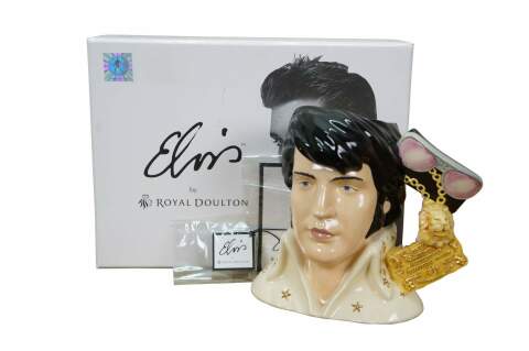 2006 Royal Doulton porcelain character jug number EP6, "Vegas" depicting Elvis Presley. World Wide Limited Edition number 628/2000. Made in Thailand. Includes original box and Certificate of Authenticity.