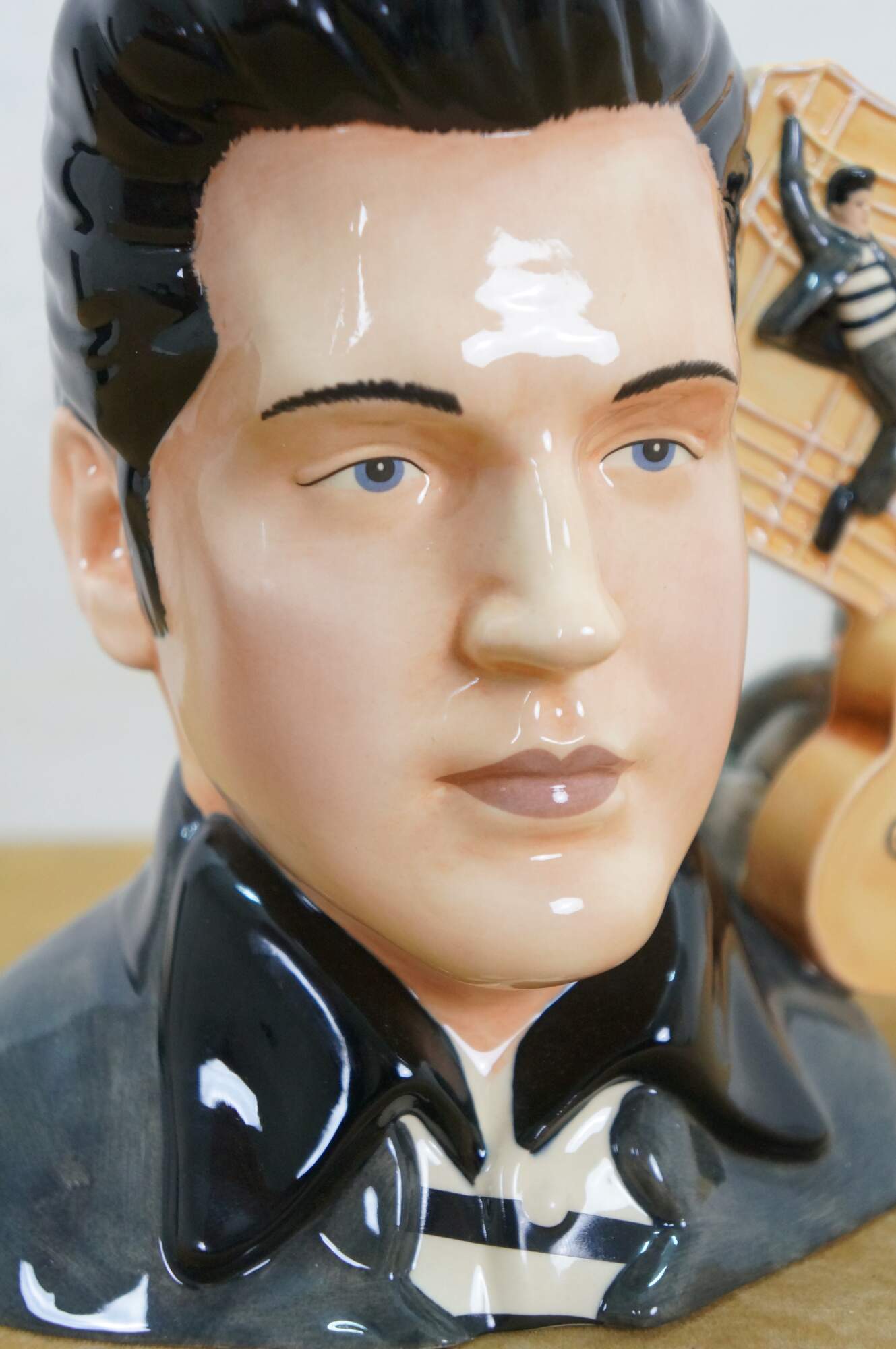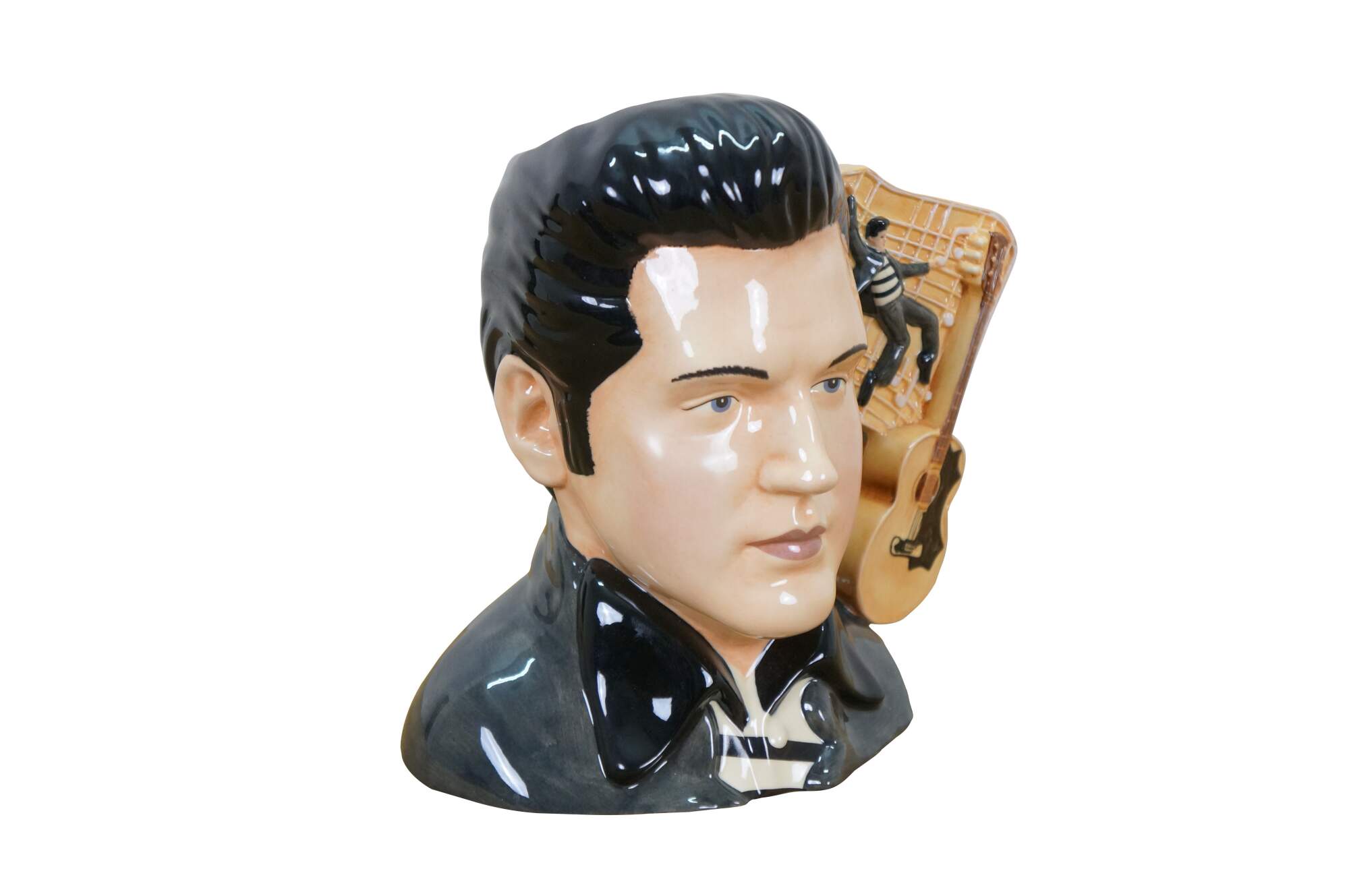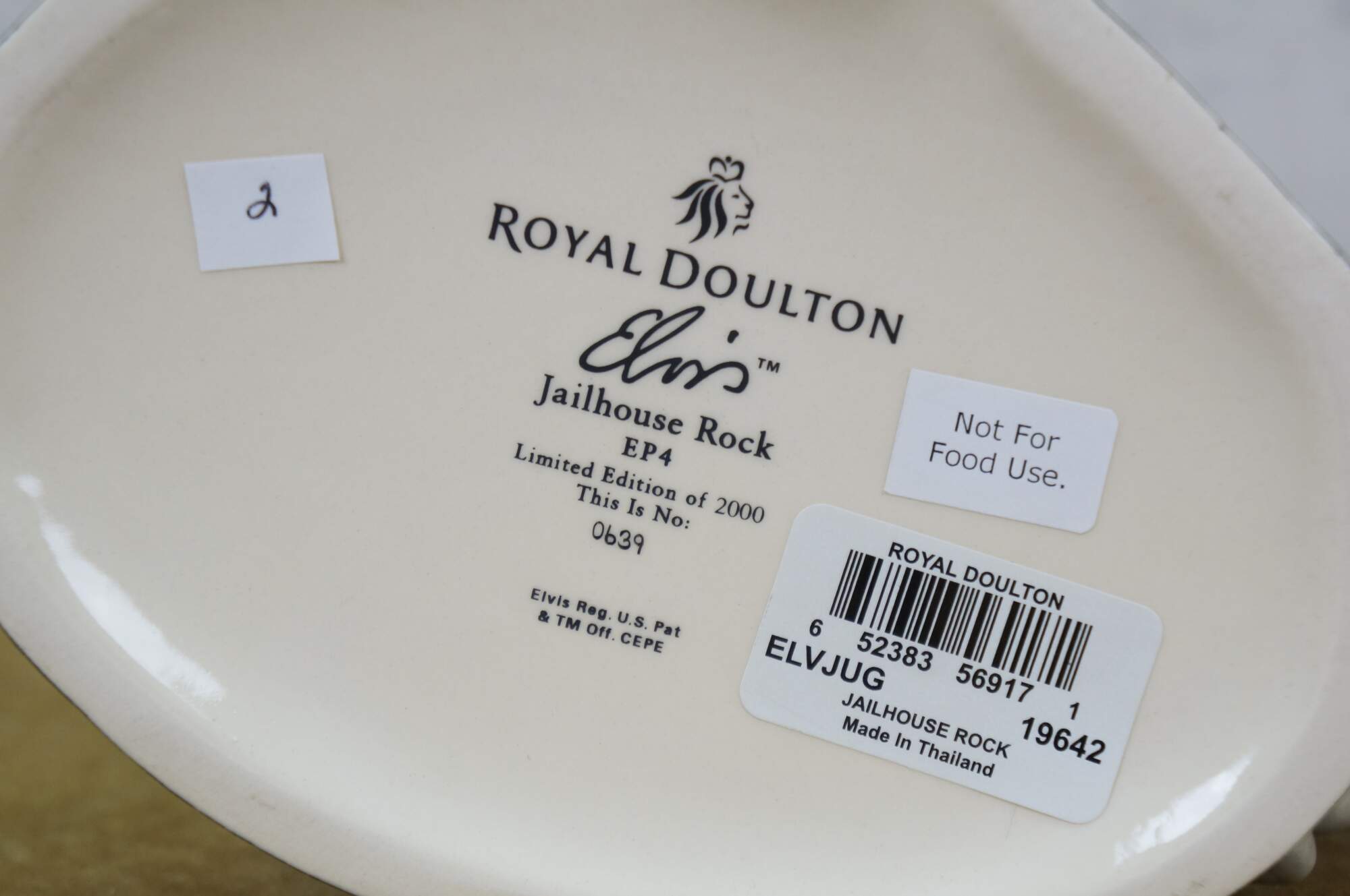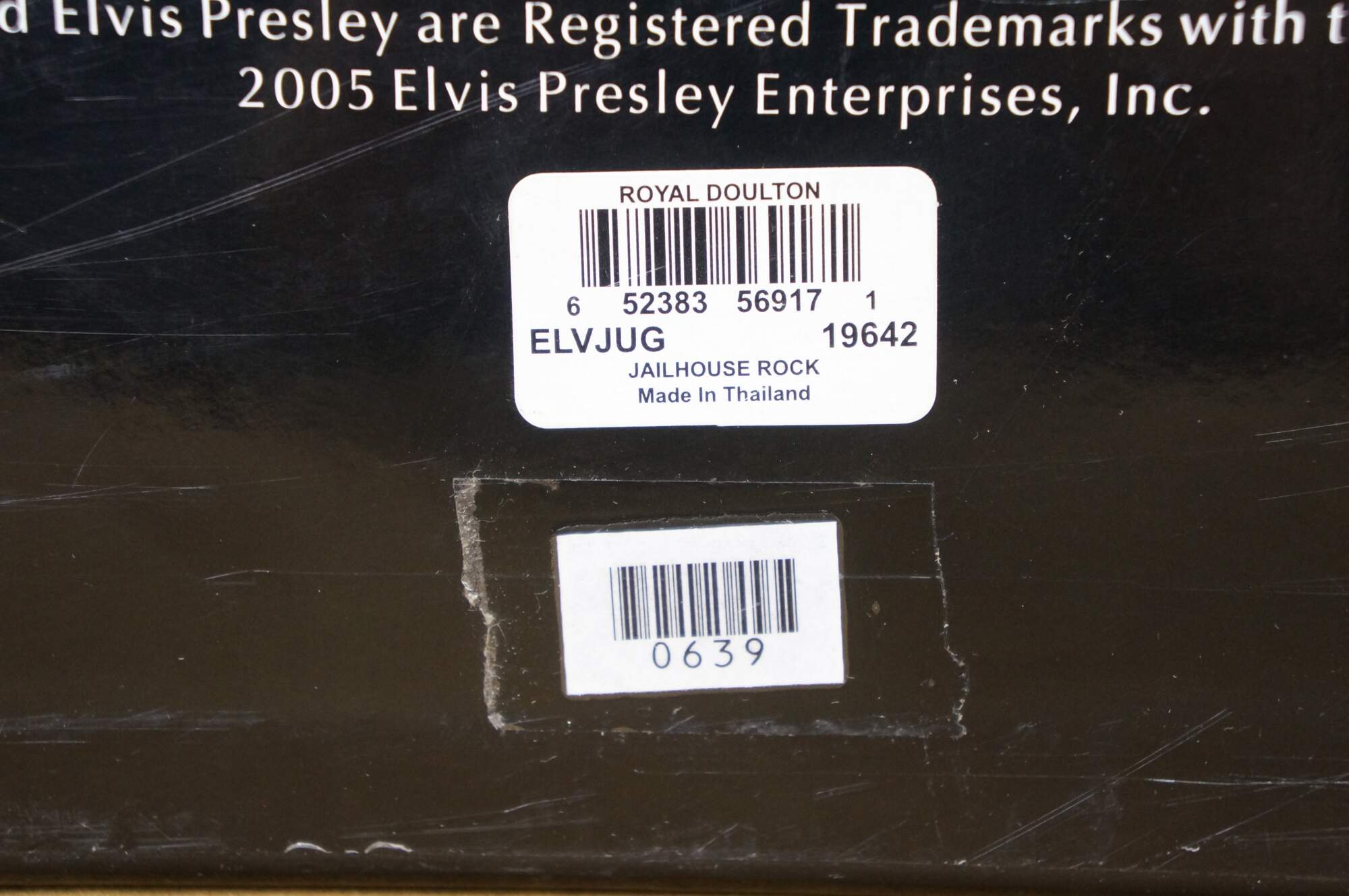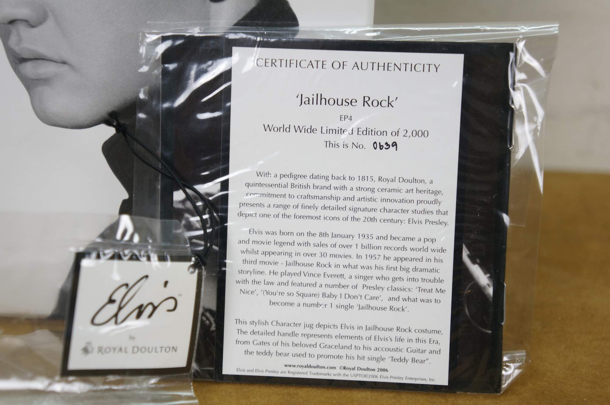 2006 Royal Doulton porcelain character jug number EP4, "Jailhouse Rock" depicting Elvis Presley. World Wide Limited Edition number 639/2000. Made in Thailand. Includes original box and Certificate of Authenticity.