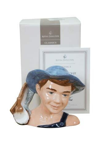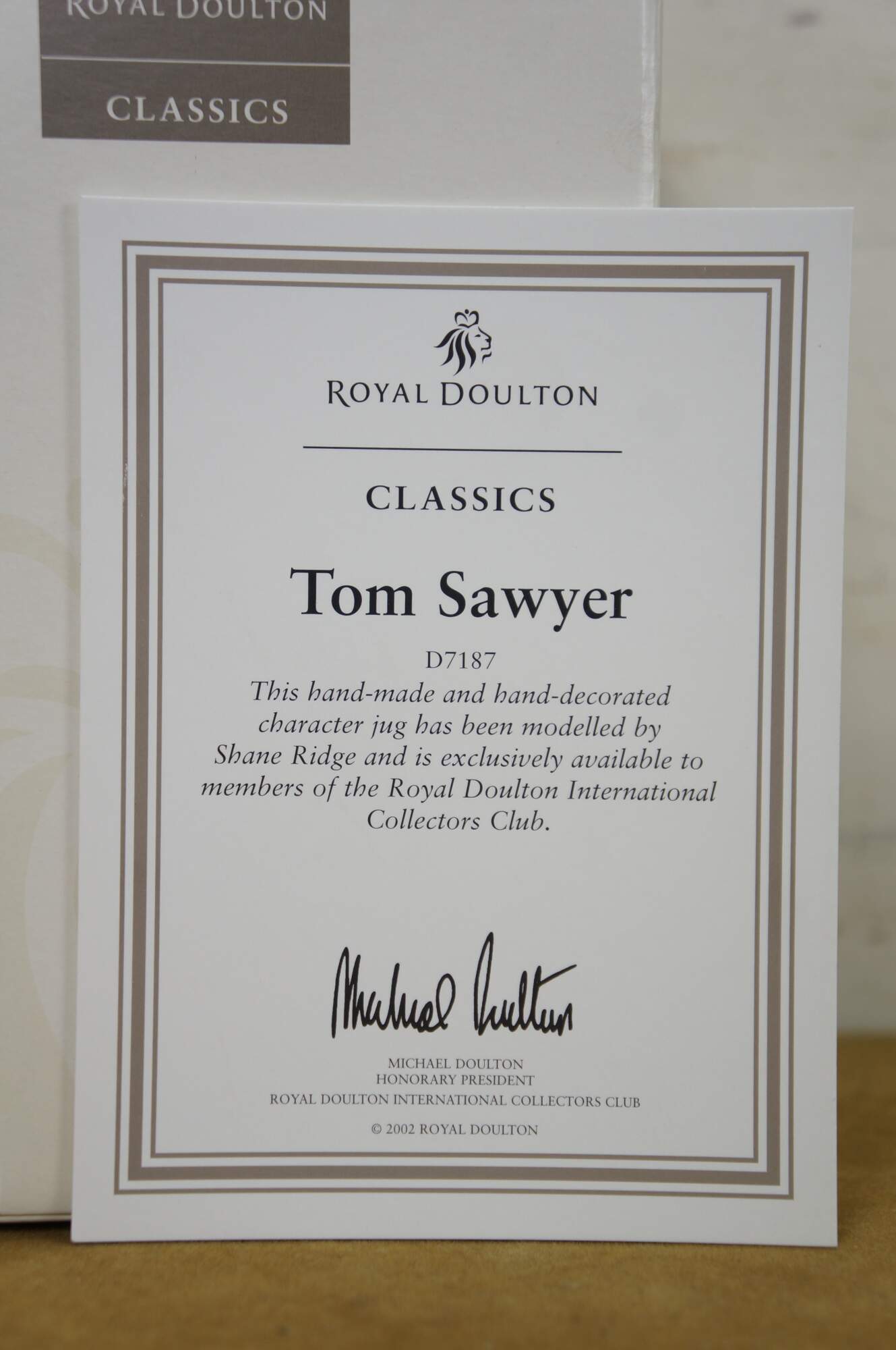 Vintage 2002 Royal Doulton Classics, International Collectors Club porcelain character jug number D7187, "Tom Sawyer." Modelled by Shane Ridge. Made in England. Includes original box and Certificate of Authenticity.