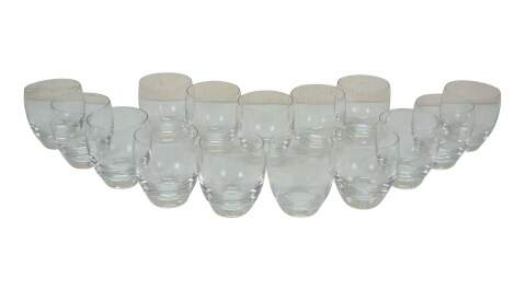 Set of 15 Baccarat Perfection clear crystal 8 oz barrel shaped flat tumblers / wine / old fashioned glasses. Made in France. Discontinued.