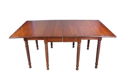 Vintage Willett Wildwood Cherry collection dropleaf dining table featuring rectangular form with barley twisted gatelegs.