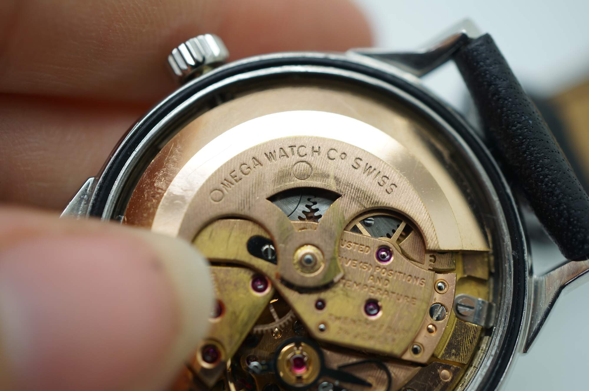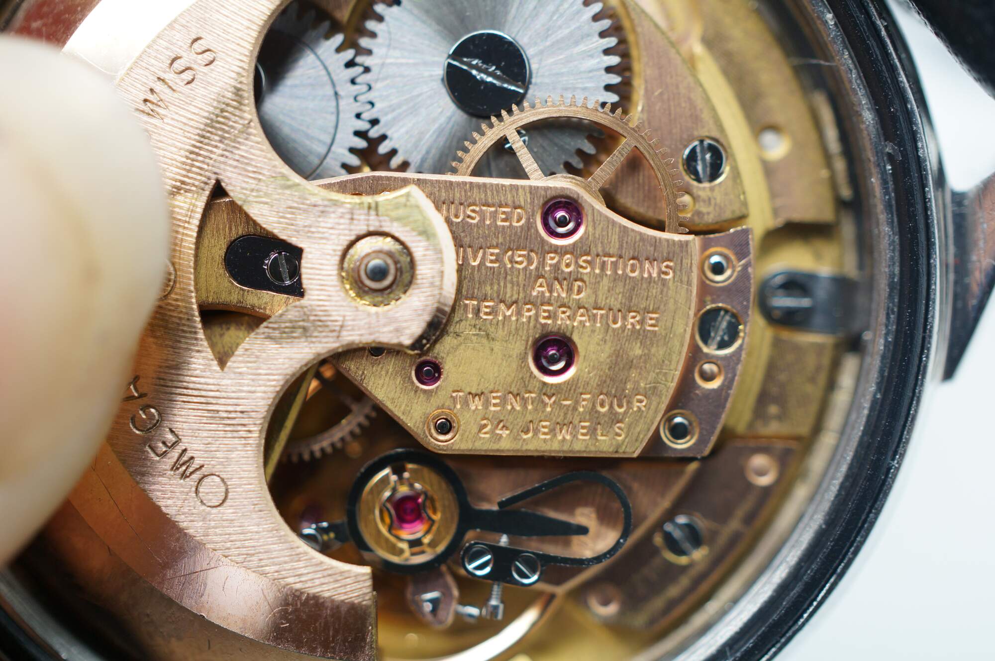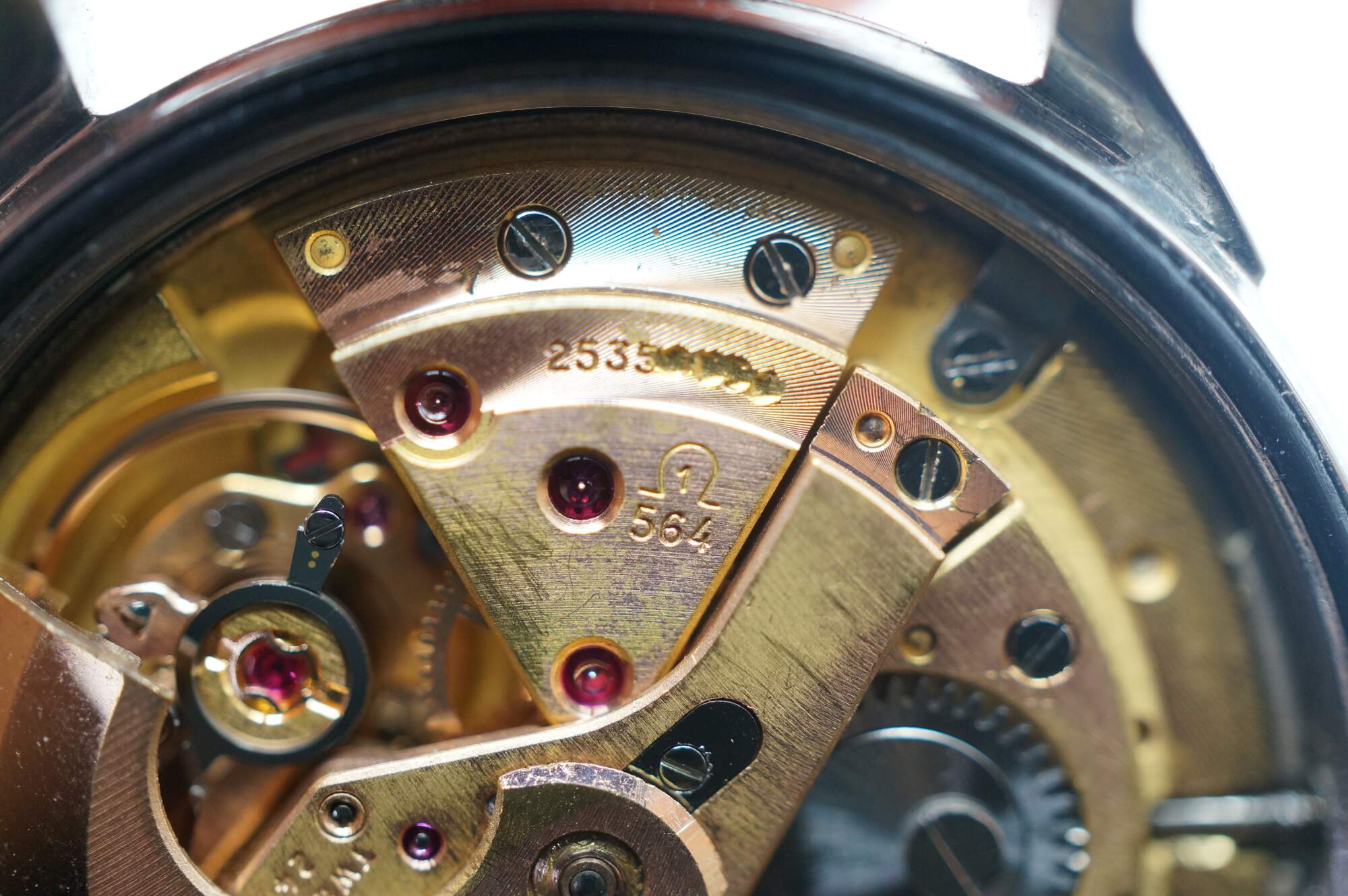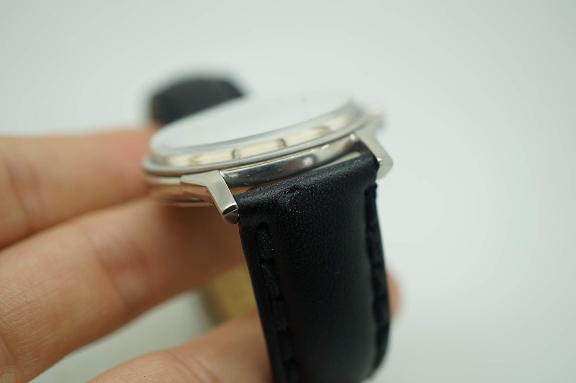 Vintage circa 1963-1967 Omega Constellation Automatic Chronometer Officially Certified wrist watch. Silver / chrome color stainless steel case; white dodecahedron shaped / pie pan dial with black and silver tick marks and hands; date number at right. Omega Watch Company - Swiss Made - 168.005 - SGR - Acier Inoxydable. Movement Unadjusted - Five (5) Positions and Temperature - Twenty Four 24 Jewels - 564 - 2535xxxx. New band by deBeer Watch Bands - Item Number 923-18 - Saddle Leather (hand stitching) - Black - 18mm - Weber Jewelers of Dayton, OH.