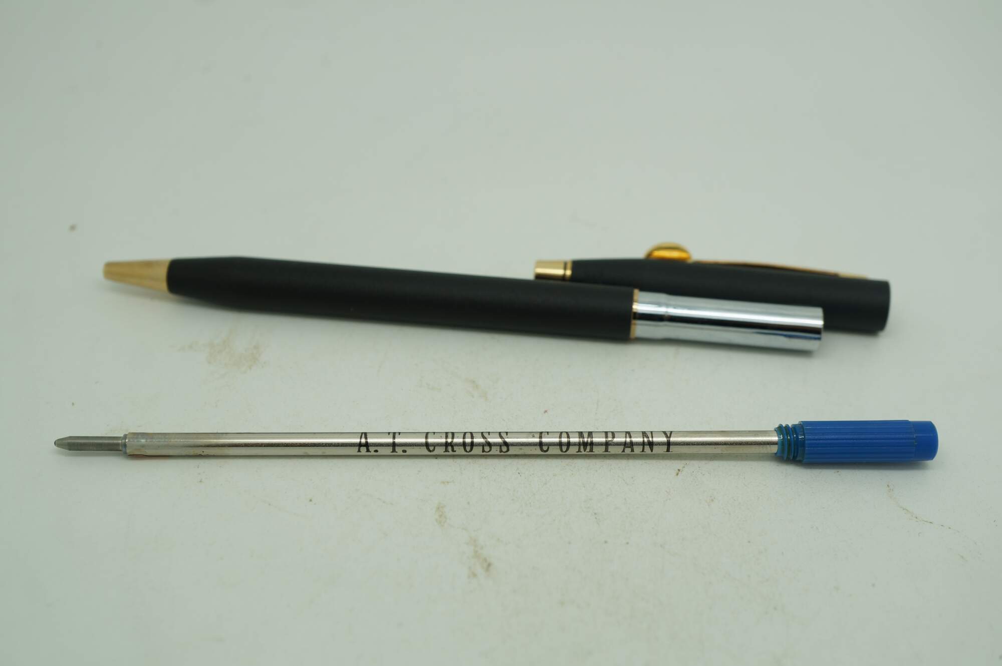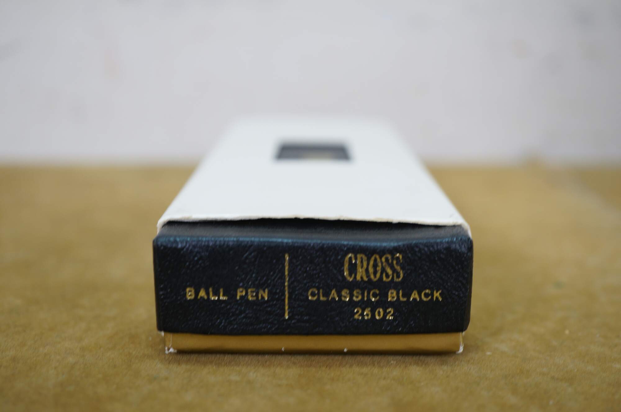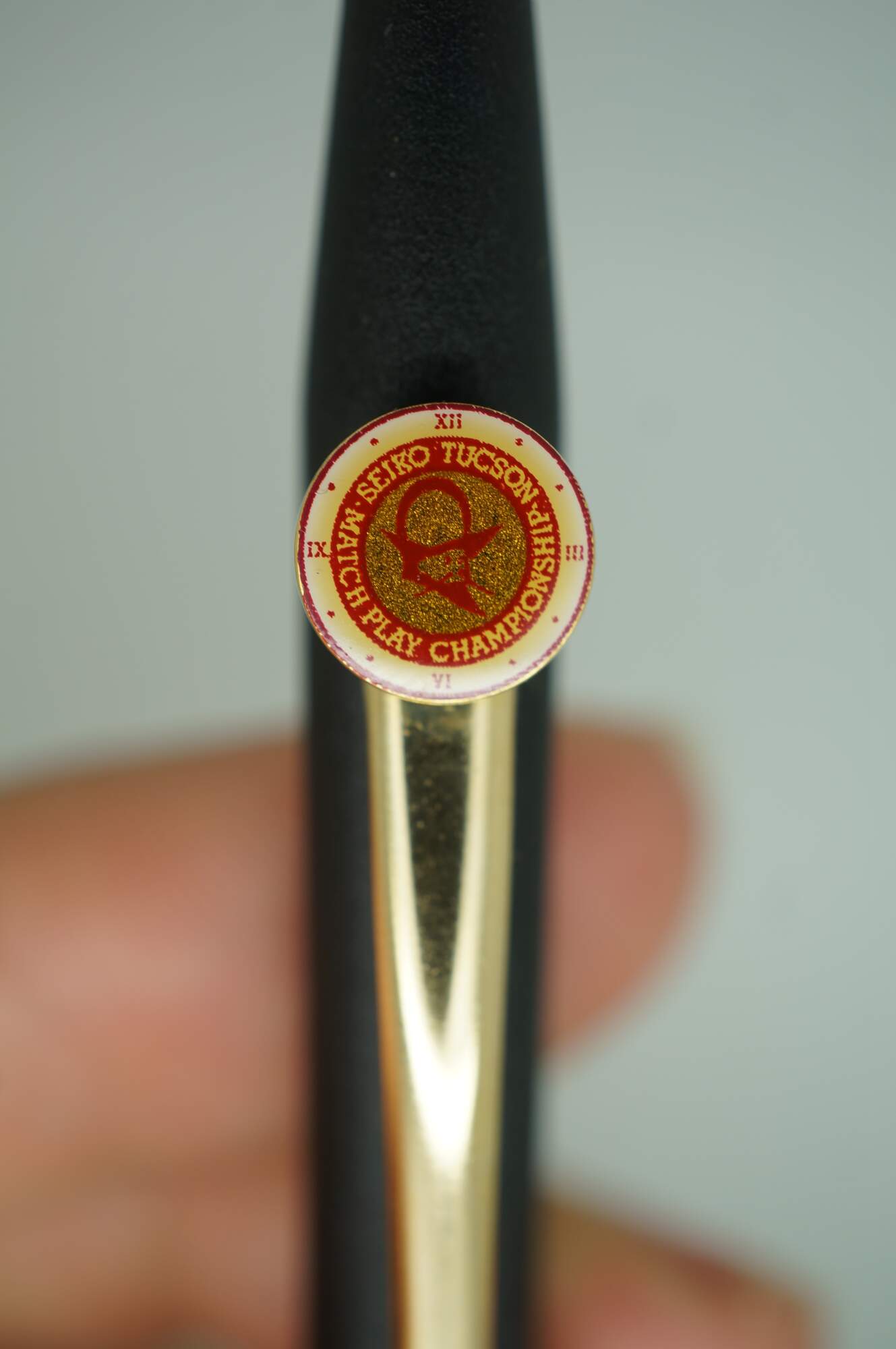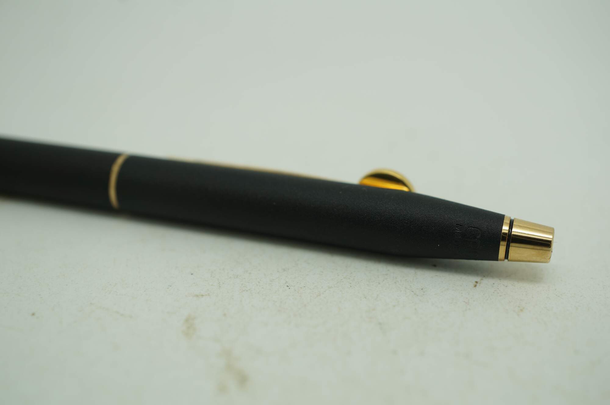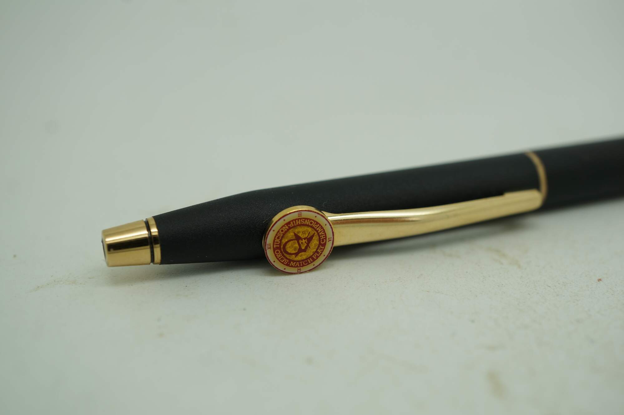 Vintage 1980's Cross Classic Black 2502 Ball Pen. Matte black body with gold tone endcaps and pocket clip, commemorating the Seiko Tucson Match Play Championship golf tournament held from 1984-1986. Includes original box.