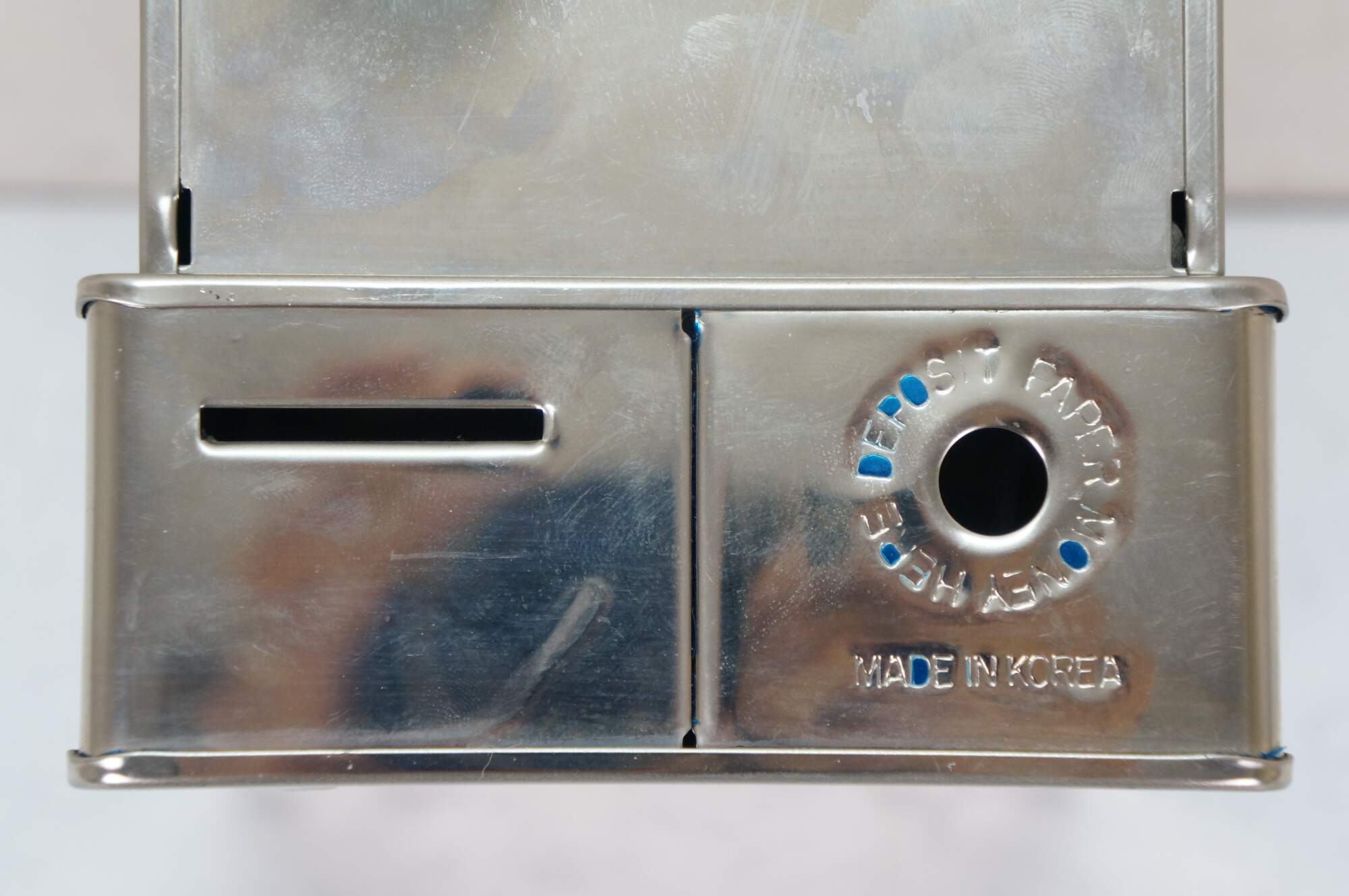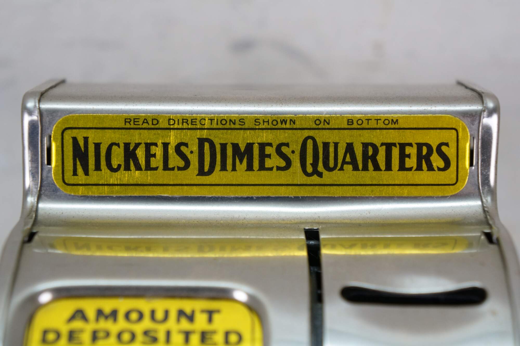"First made in 1907, this coin bank found its way to many kids and adults from the 1920s -1970s. Locks at first 25 cents, and ONLY OPENS in the front when reach $10 reads 00.00 It only opens when you put $10 dollars of coins in, numbers will turn over and reads 00.00 In looking at different models from different years I've determined by its features, about what years each model looked at was made. Made of cold rolled Steel in the U.S.A. till the 1960s, then made of heavy Tin in Japan from the 1960s 1970s then finally Korea and Hong Kong China early 1980s. The Durable Toy and Novelty Company in USA made the coin banks for over 50 years. In the early 1900s till 1923 the first design was different, the coins were deposited in a vertical slot, and the lever was to the very right of the bank, in a square paddle shape. The coin bank in the form of a cash register had in those early 1900s a pin stripe design outlining the sides of the coin bank. After 1923 the design of the coin bank change the way it looked and stayed that way, to the last year in production in the early 1980s. The only differences are few and slight in the metal casting. Also a couple of features changed through the years, and can be noticed when looked for. Other things that happened in its production is the company name and what country it was produced in the later years. The 1940s in the WW2 years (world war 2 1940-45 ) a figure pic of Uncle Sam was placed in right front under the coin slot. This was a patriotic war time coin bank those war years. In 1958 The Durable Toy and Novelty Co. was bought by Western Stamping Co. and from Late 57-60 The name painted in back read Durable Toy and Novelty Company a Division of Western Stamping Company. The 1960s Western Stamping Company changed is production from U.S.A. to Japan, and changed the metal casting, from Cold Rolled Steel, to Heavy Tin. Can tell by the hole for rolled paper money no longer has a raised circle edge, now having a flat thin circle edge, also the words made in Japan. The painted directions on back, no longer there, changed to a sticker on back and later placed under the bottom. The early 1980s was the last years of the Original Uncle Sam's 3 Coin Bank. A 75th Anniversary Limited Chrome edition was issued in the early 80s over 20 thousand made. It says made in Korea in back, and Company name changed to Wesco. Before that Ohio Art was the company name after Western Stamping Company. These Anniversary Banks were the last of the original coin banks." (Uncle Sam 3 Coin Bank Blogspot)